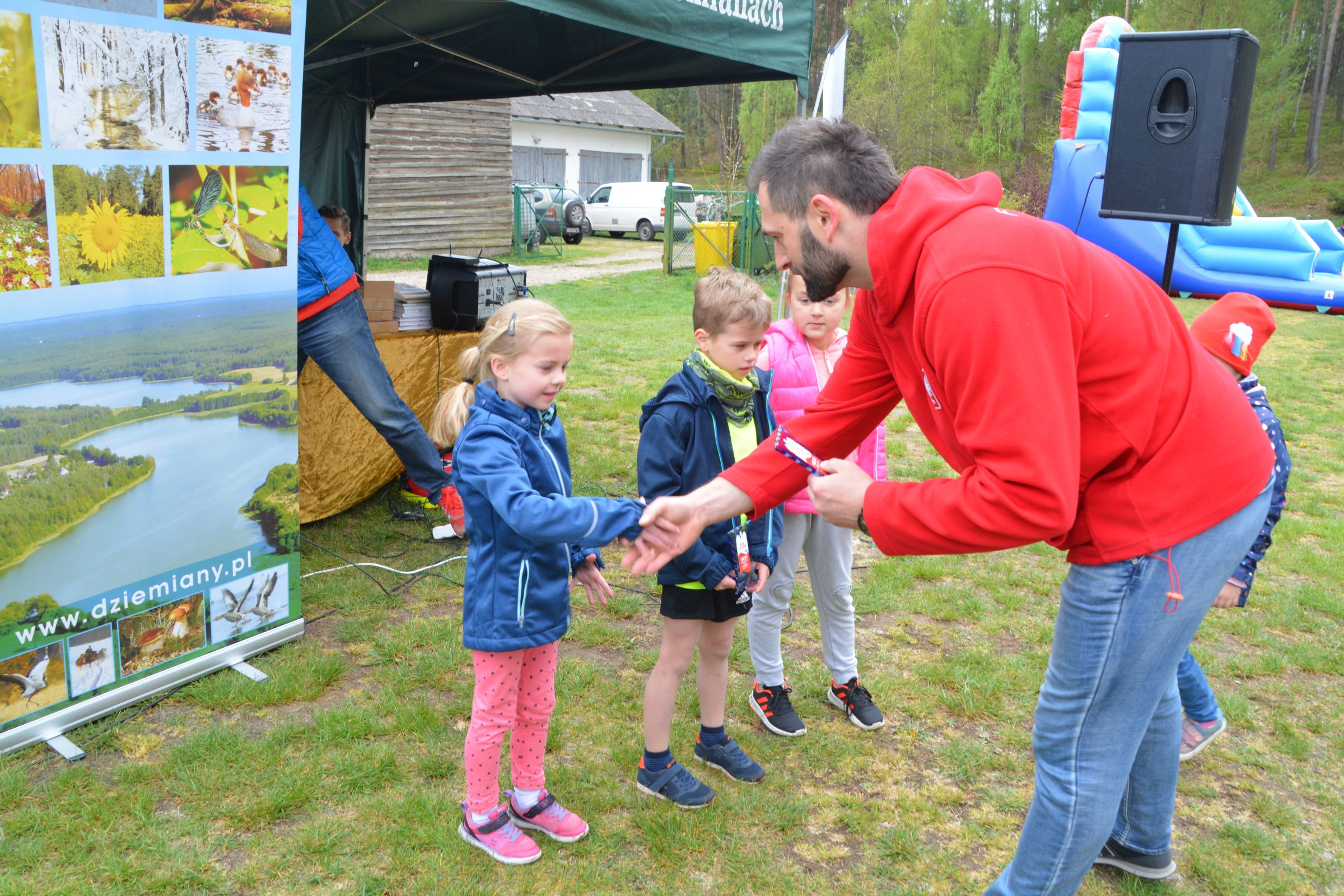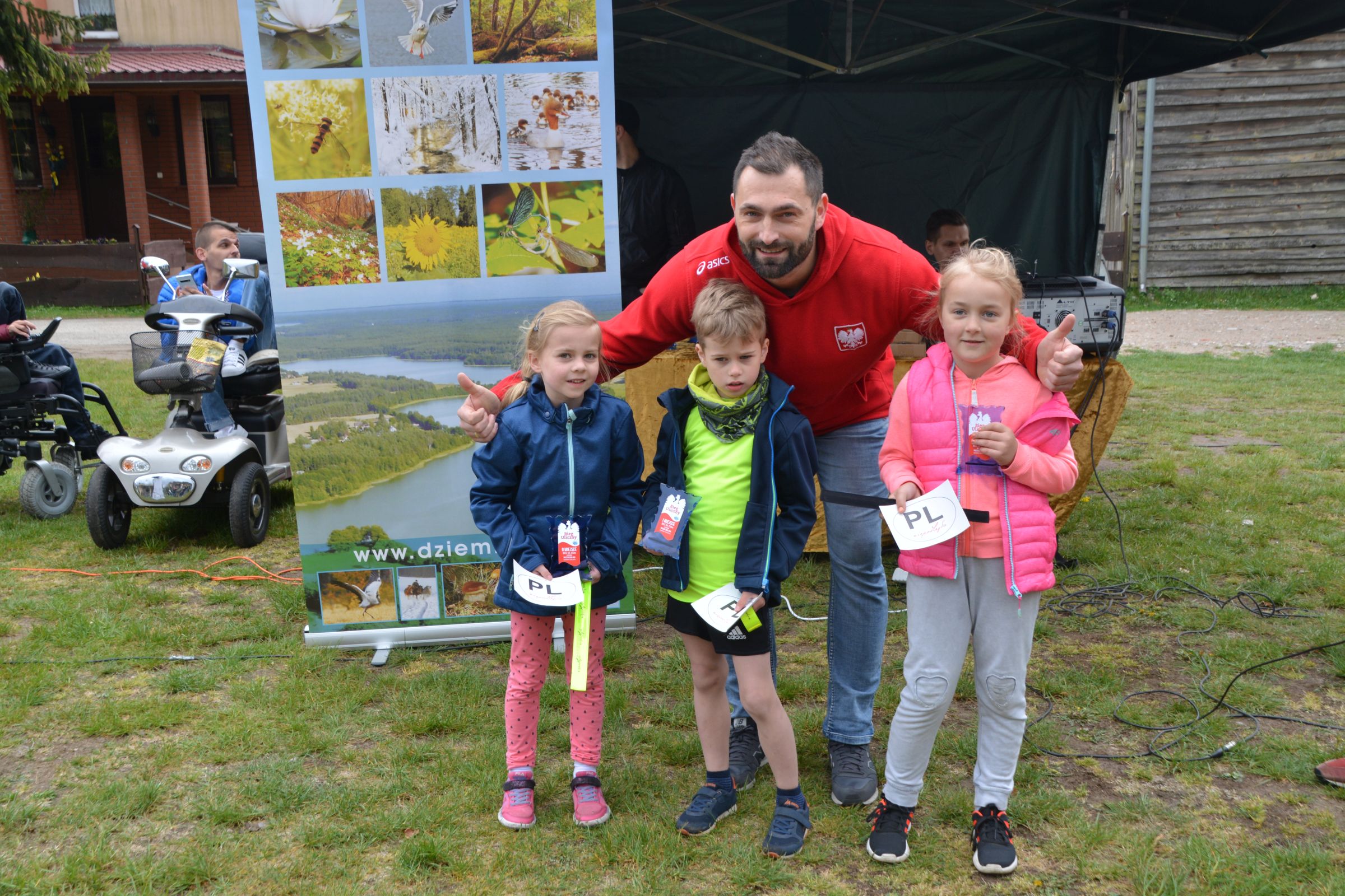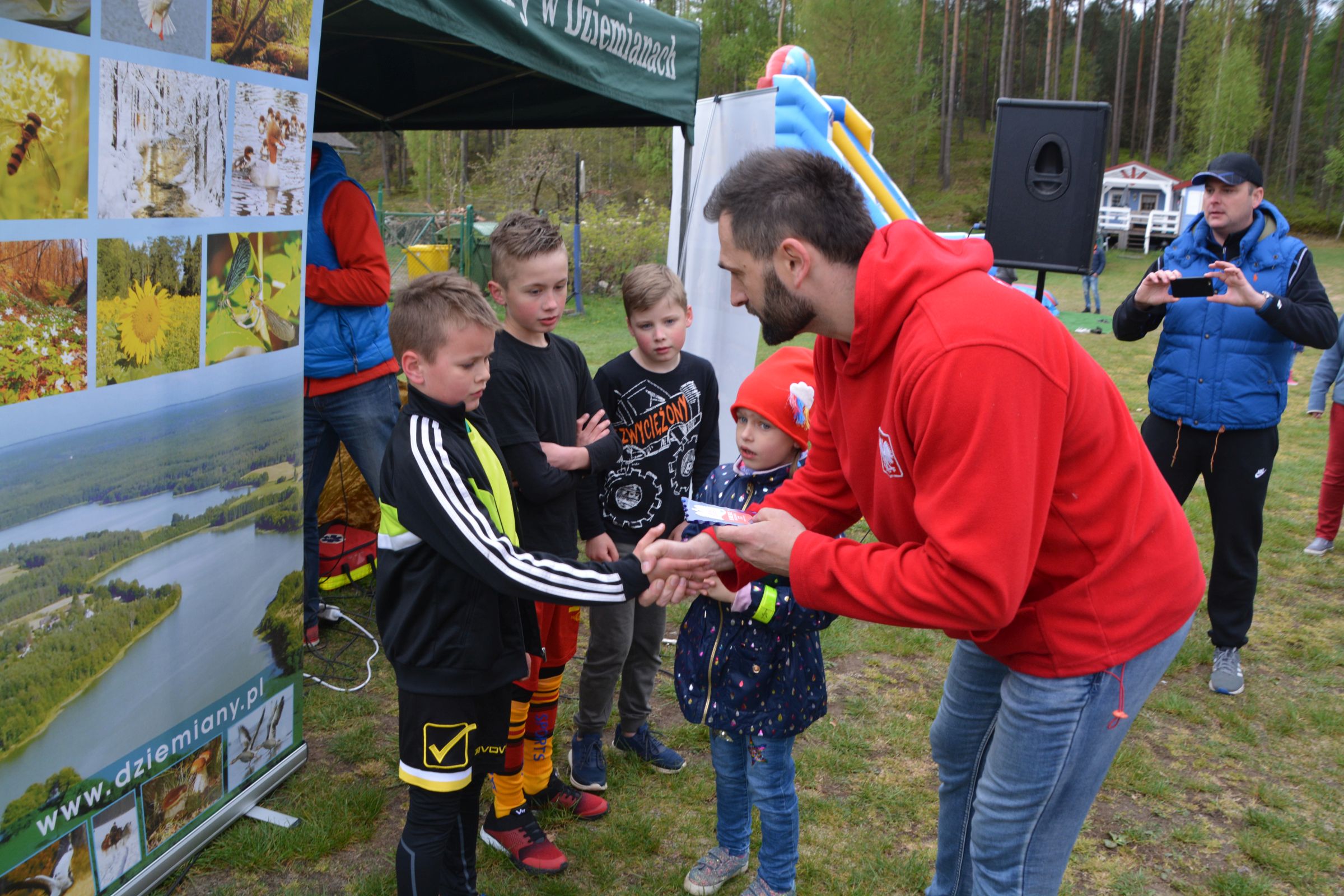 Około 100 osób stawiło się w piątek 3 maja w kompleksie domków letniskowych p. Violetty Cysewskiej, by uczestniczyć w Dziemiańskiej Dyszce. Biegi rozgrywane były w kategoriach: przedszkole, klasy I-III, IV-VI, VII-VIII i gimnazjum oraz główna kategoria 10 km Open. Biegom patronował wywodzący się z Dziemian, olimpijczyk, Łukasz Chyła. W słowach kierowanych do zebranych podziękował, obecnemu na zawodach, pierwszemu trenerowi Wojciechowi Pobłockiemu oraz wszystkim uczestnikom, którzy stawili się na starcie zorganizowanych zawodów. Jednocześnie zachęcał do codziennych treningów, by w przyszłym roku na kolejnej edycji było nas jeszcze więcej. Uczestnicy rozgrzewani do rywalizacji przez reprezentanta Polski, stoczyli równy bój o Laur zwycięstwa. Najszybsi okazali się: