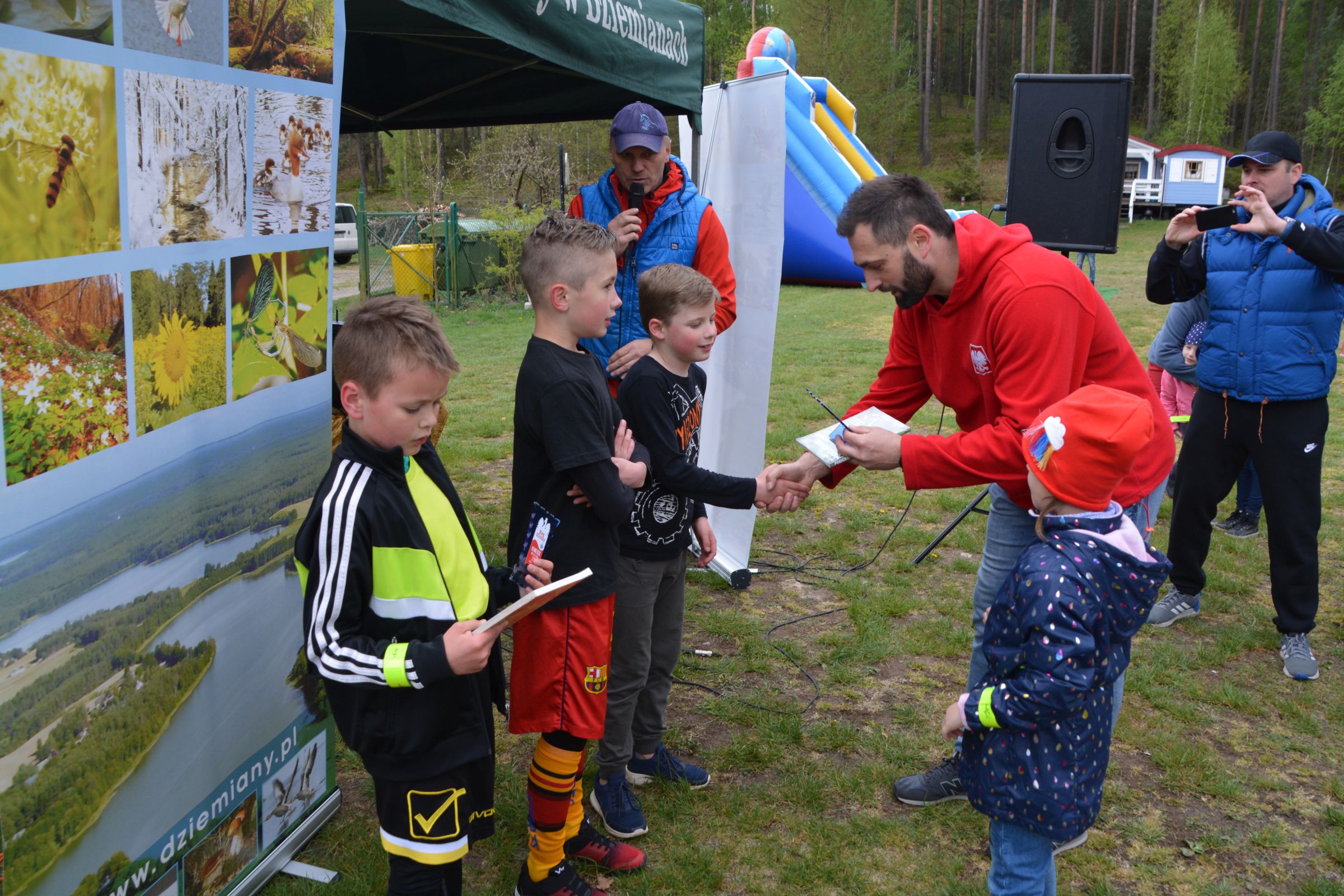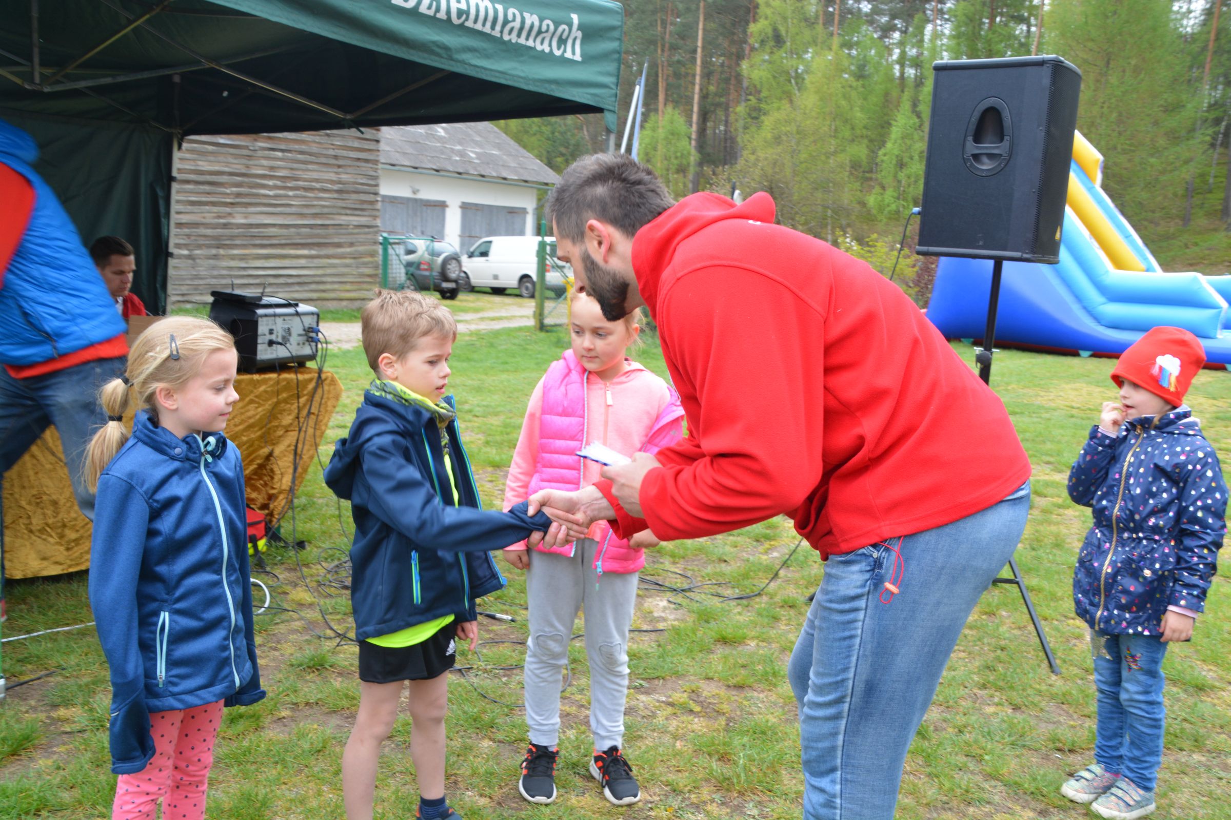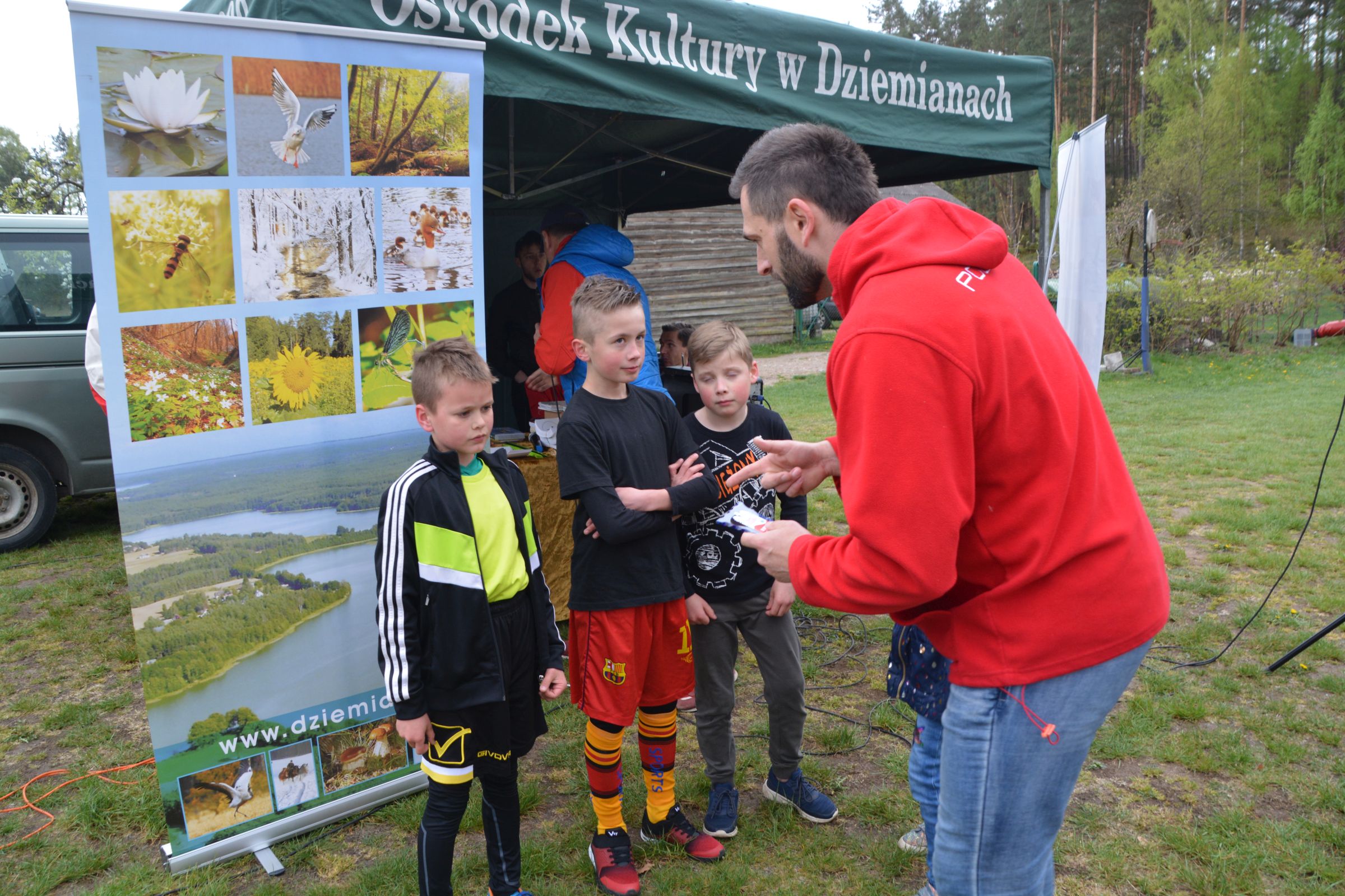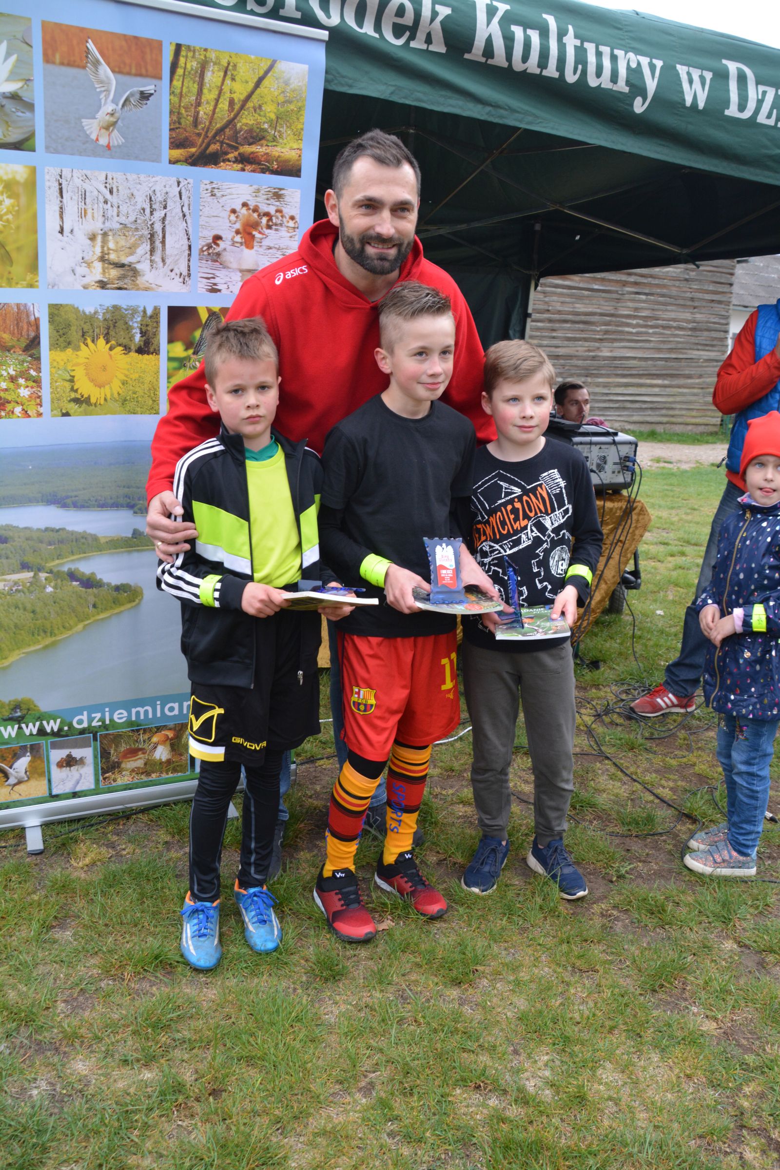 Około 100 osób stawiło się w piątek 3 maja w kompleksie domków letniskowych p. Violetty Cysewskiej, by uczestniczyć w Dziemiańskiej Dyszce. Biegi rozgrywane były w kategoriach: przedszkole, klasy I-III, IV-VI, VII-VIII i gimnazjum oraz główna kategoria 10 km Open. Biegom patronował wywodzący się z Dziemian, olimpijczyk, Łukasz Chyła. W słowach kierowanych do zebranych podziękował, obecnemu na zawodach, pierwszemu trenerowi Wojciechowi Pobłockiemu oraz wszystkim uczestnikom, którzy stawili się na starcie zorganizowanych zawodów. Jednocześnie zachęcał do codziennych treningów, by w przyszłym roku na kolejnej edycji było nas jeszcze więcej. Uczestnicy rozgrzewani do rywalizacji przez reprezentanta Polski, stoczyli równy bój o Laur zwycięstwa. Najszybsi okazali się: