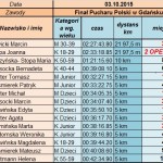 Dnia 3 października 2015 roku Błękitna drużyna Nordic Walking z Dziemian rywalizowała w Finale Pucharu Polski w Gdańsku. W silnym 15- osobowym składzie wystartowali na dystansach 5 km, 10 km oraz półmaratonu mierzącego 21 km 97,5 m. Pogoda dopisała jak i frekwencja przybyłych sympatyków Nordic Walking z całej Polski. W zawodach wzięło udział ponad pół tysiąca osób. Trasa przebiegała na terenie Trójmiejskiego Parku Krajobrazowego, gdzie nie brakowało wymagających wzniesień. Błękitny Klub Nordic Walking w cyklu Pucharu Polski brał udział już trzeci raz. Tym razem zdobyli szczęśliwe 13 zwycięstw. W tym jedni z najlepszych zawodników stanęli dwu jak i trzy-krotnie na podium prezentując flagę dziemiańską. Osiem wygranych to wyniki zawodników w danych kategoriach wiekowych. Cztery miejsca to sukces potrójnego udziału w Pucharze Polski i zdobytych razem punktów. W klasyfikacji generalnej trofeum uzyskali: