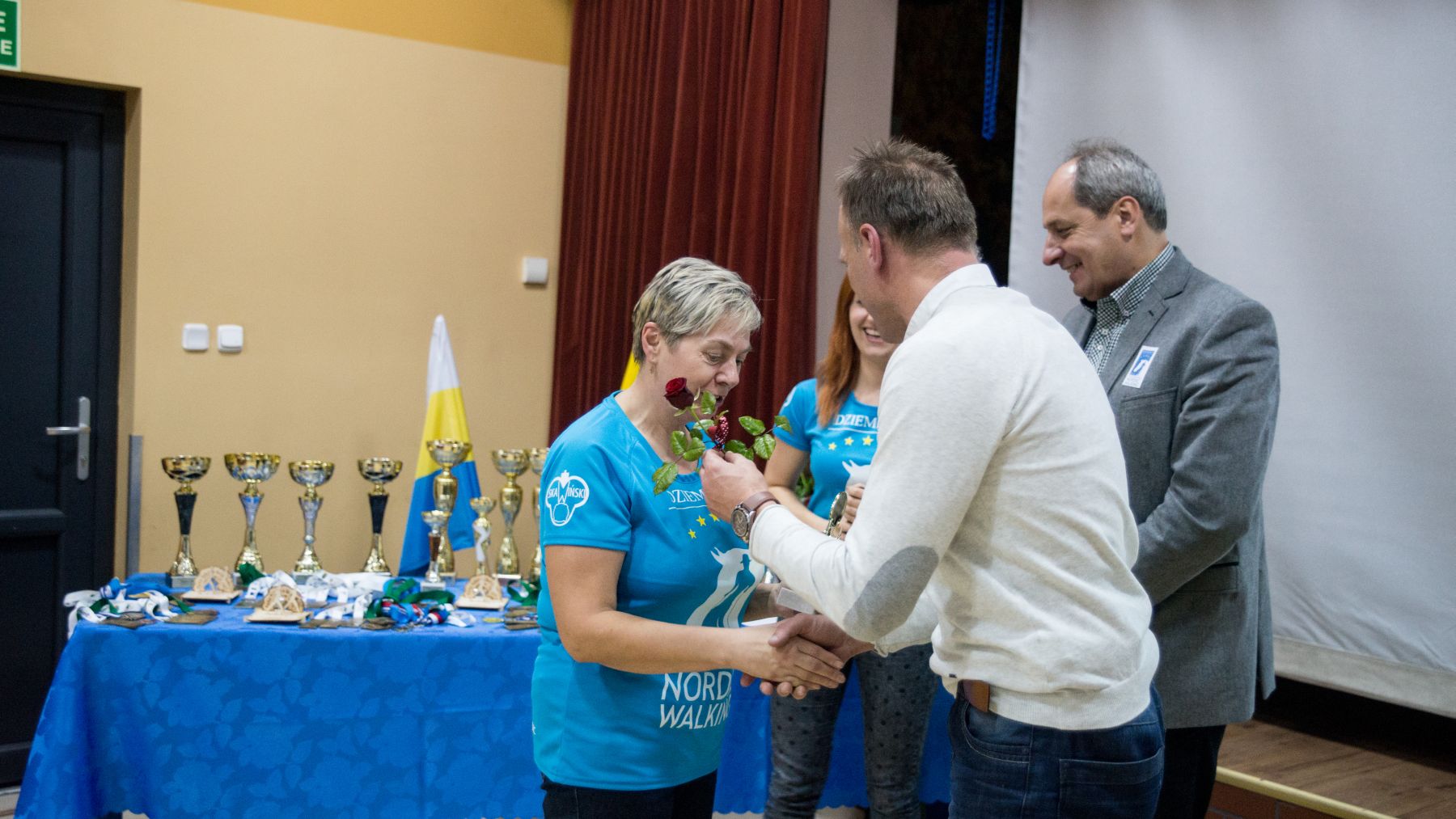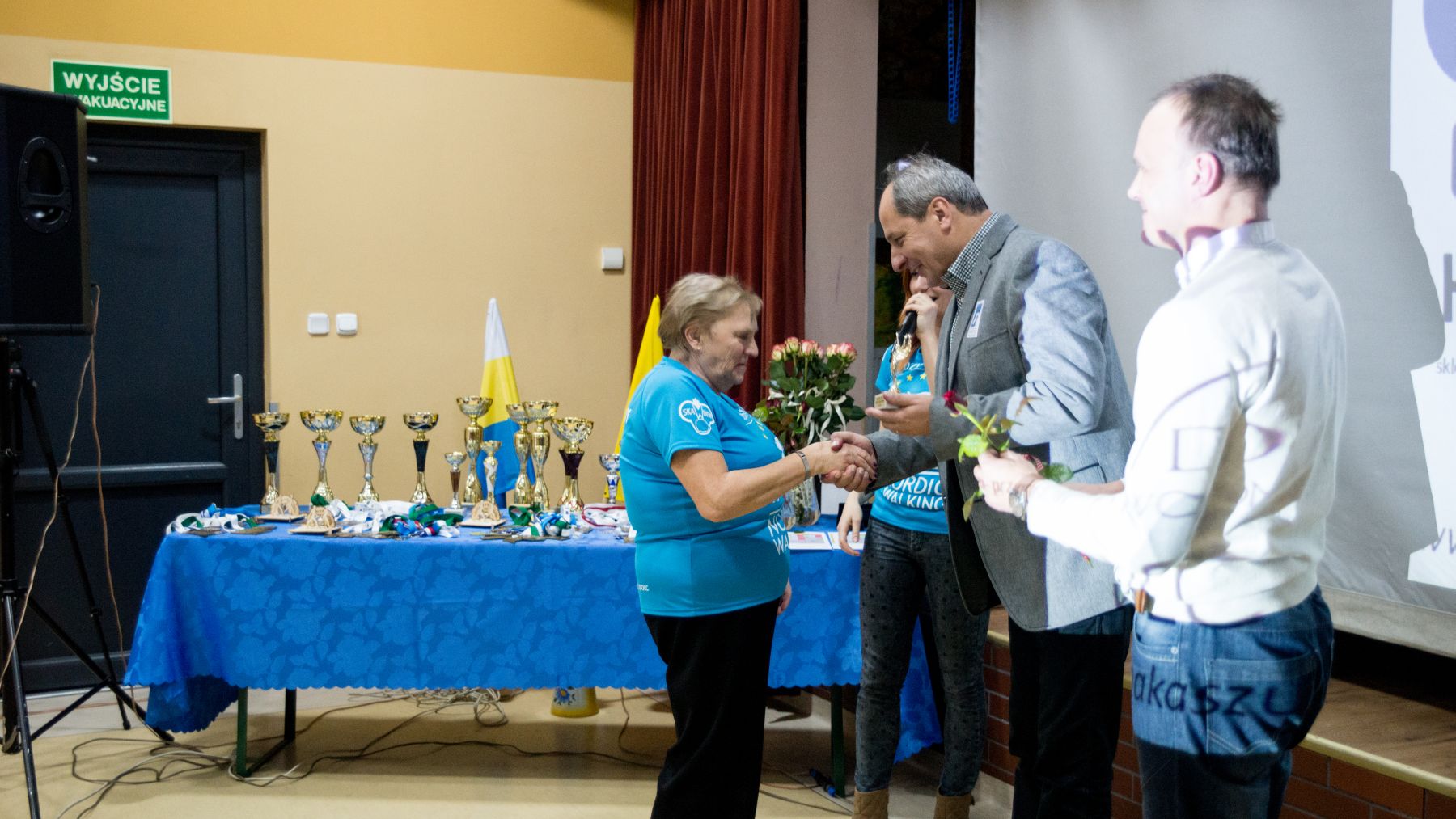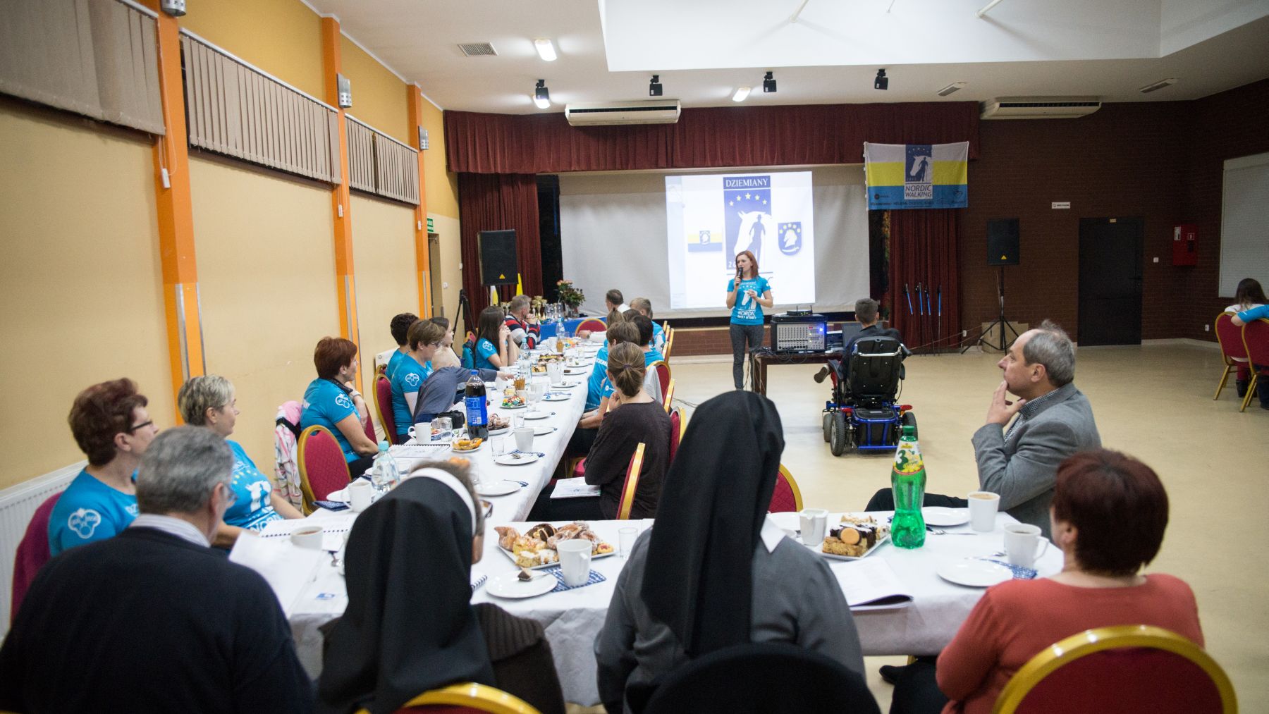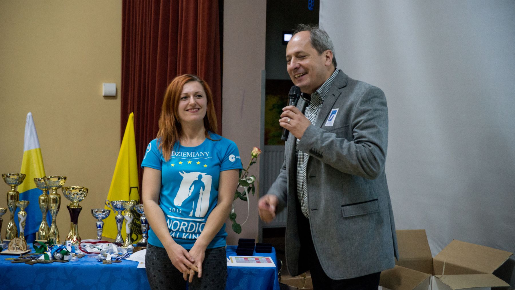 Spotkanie prowadziła Instruktorka drużyny Joanna Stopa. Przybliżyła zagadnienie Nordic Walking jak i przedstawiła poprawną technikę chodzenia o kijkach. Zaprezentowane zostały również statystyki udziału w zajęciach Nordic Walking w roku 2014. Następnie nadszedł czas prezentacji wizualnej, która zobrazowała wspomnienia drużyny z rywalizacji na trasie etapów Pucharu Polski jak i Pucharu Bałtyku. Podczas finalnej części spotkania Instruktorka wyróżniła najlepszych zawodników drużyny Nordic Walking w roku 2014. Statuetki oraz kwiaty wręczali zasłużonym Wójt Gminy Dziemiany oraz Dyrektor Ośrodka Kultury Dariusz Turzyński. Podziękowania złożone zostały również na ręce sponsorów, którzy wsparli drużynę pod koniec tegorocznych zmagań w zawodach. To dzięki nim drużyna ujednoliciła swój wizerunek błękitnymi koszulkami oraz flagą z własnym logotypem.