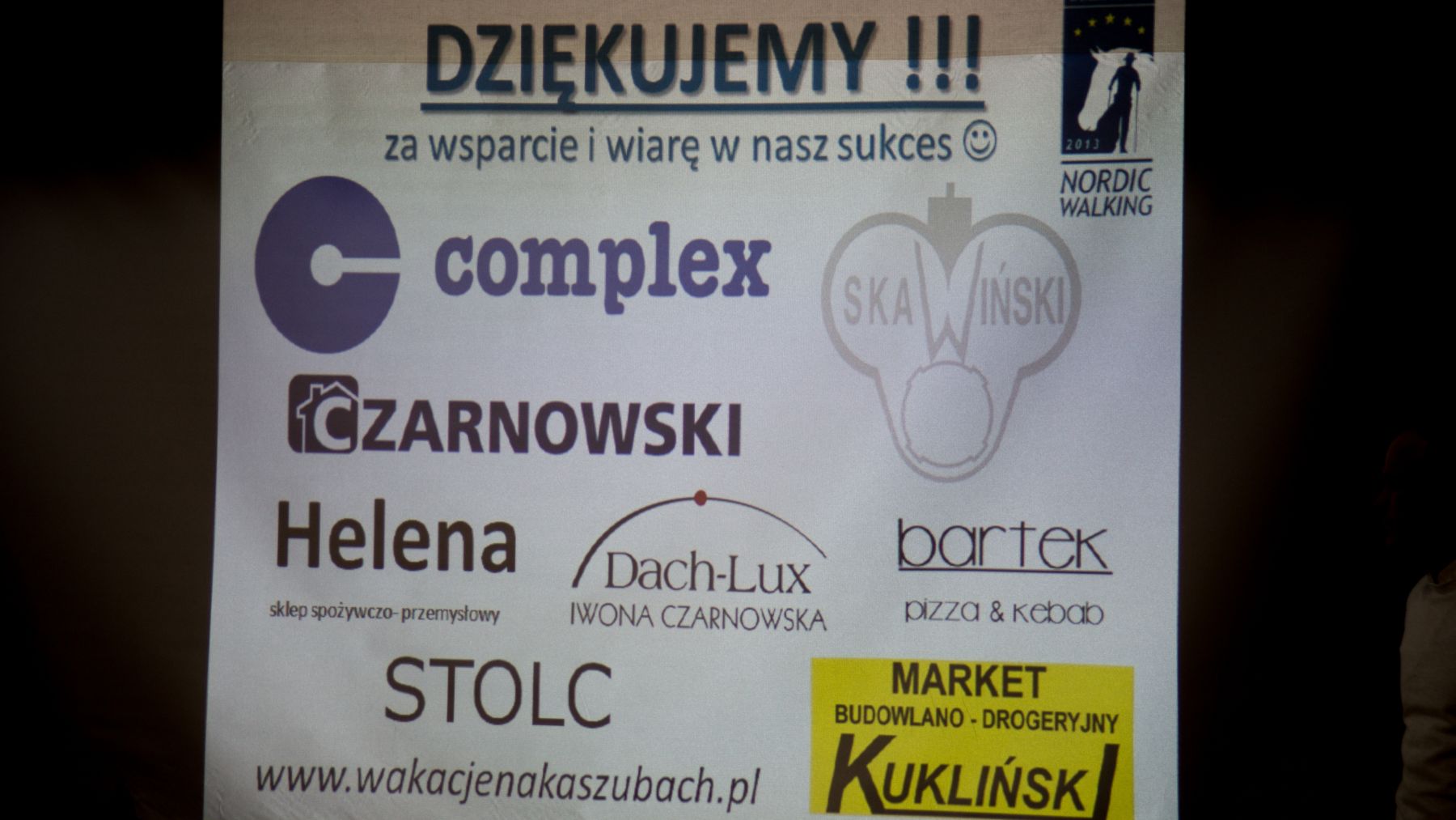 Wyrazy podziękowania kierowane są do: firmy Complex, Skawiński, Czarnowski, sklepu Helena, firmy Dachlux, baru Bartek, sklepu Stolc, marketu Kukliński oraz ośrodkowi wypoczynkowemu wakacjenakaszubach.pl.