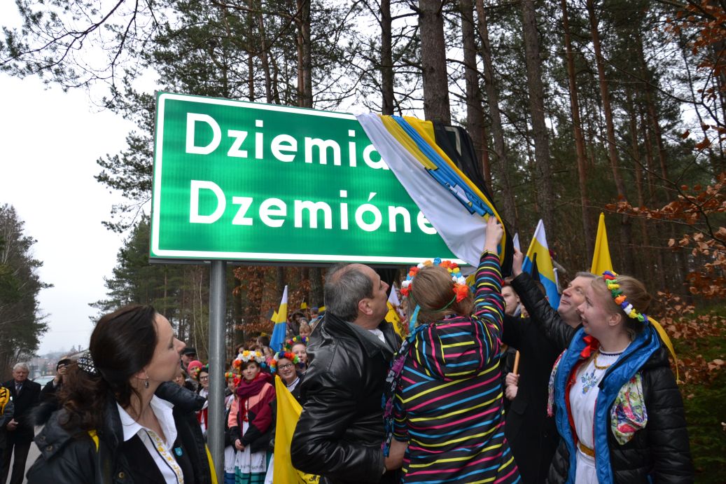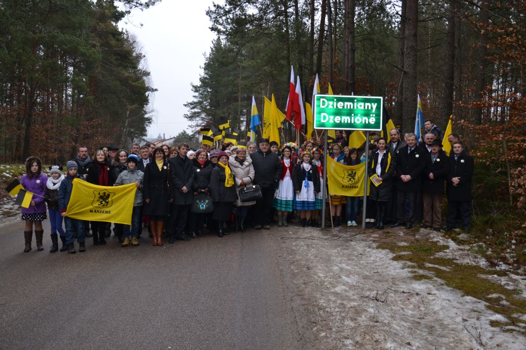 Dёbeltné tôfle:Symboliczne odsłonięcie dwujęzycznych tablic miejscowości oraz drogowskazów w Gminie Dziemiany
