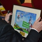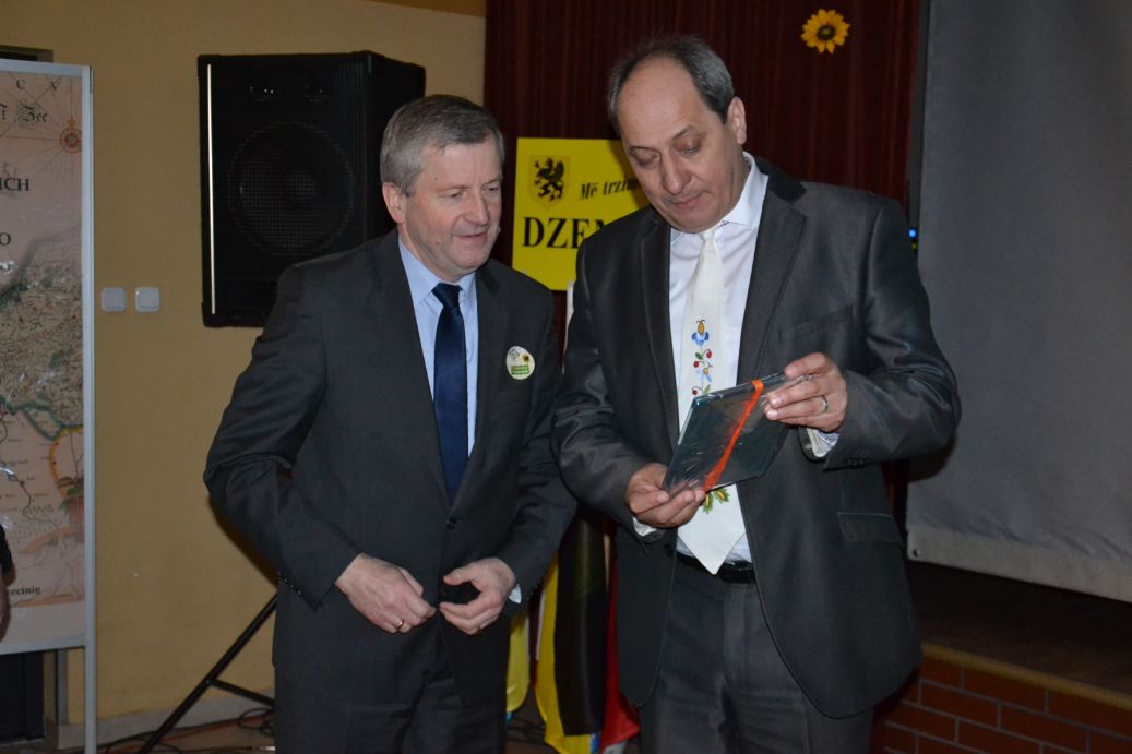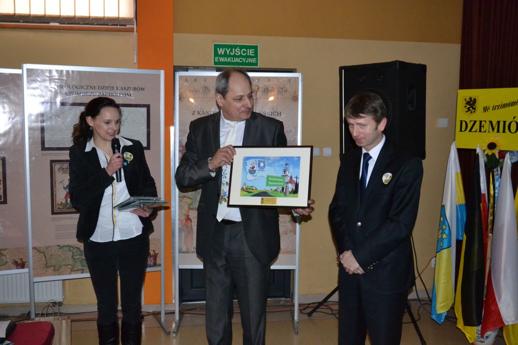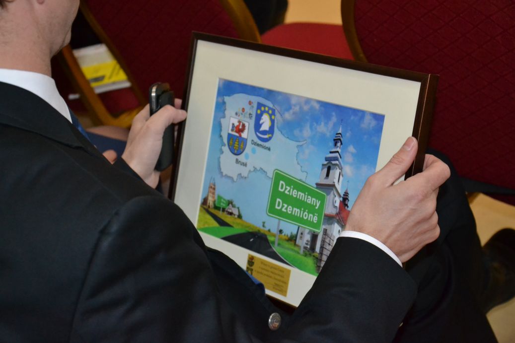 Obecny na spotkaniu Burmistrz Miasta Brusy p. Witold Ossowski przekazał na ręce dziemiańskiego Wójta p. Leszka Pobłockiego pamiątkową grafikę nawiązującą do sąsiedztwa obu gmin i wspólne przyświecających im celom jako gminom kaszubskim.