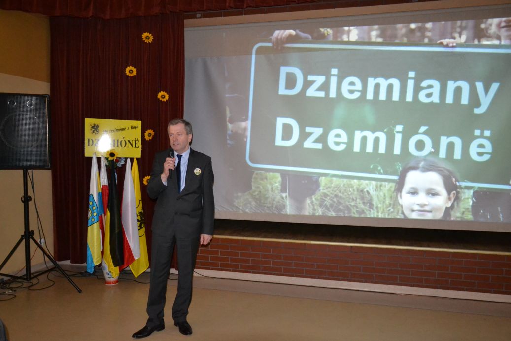 Dalsza część spotkania odbyła się już w sali dziemiańskiego Ośrodka Kultury. Zebrani wysłuchali przemówień Wójta Gminy Dziemiany, zaproszonych gości, obejrzeli prezentację multimedialną przedstawiającą drogę Kaszubów do zagwarantowania ich praw i przywilejów torowaną w ostatnich latach w prawodawstwie polskim i unijnym, działania Zrzeszenia-Kaszubsko Pomorskiego jako ich reprezentanta oraz dwuletnią realizację samego projektu wymiany tablic w Dziemianach.