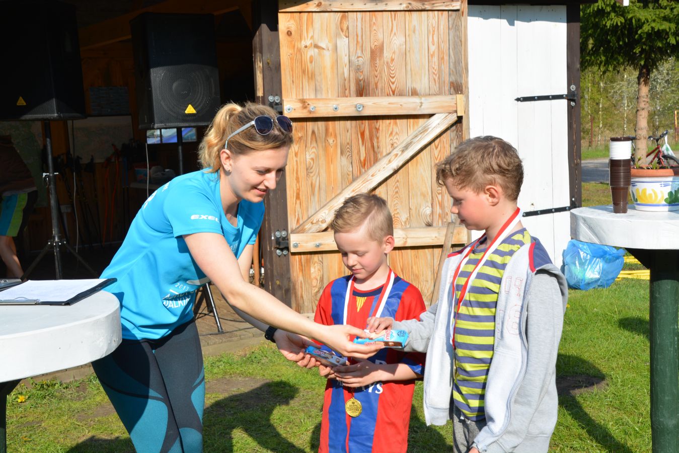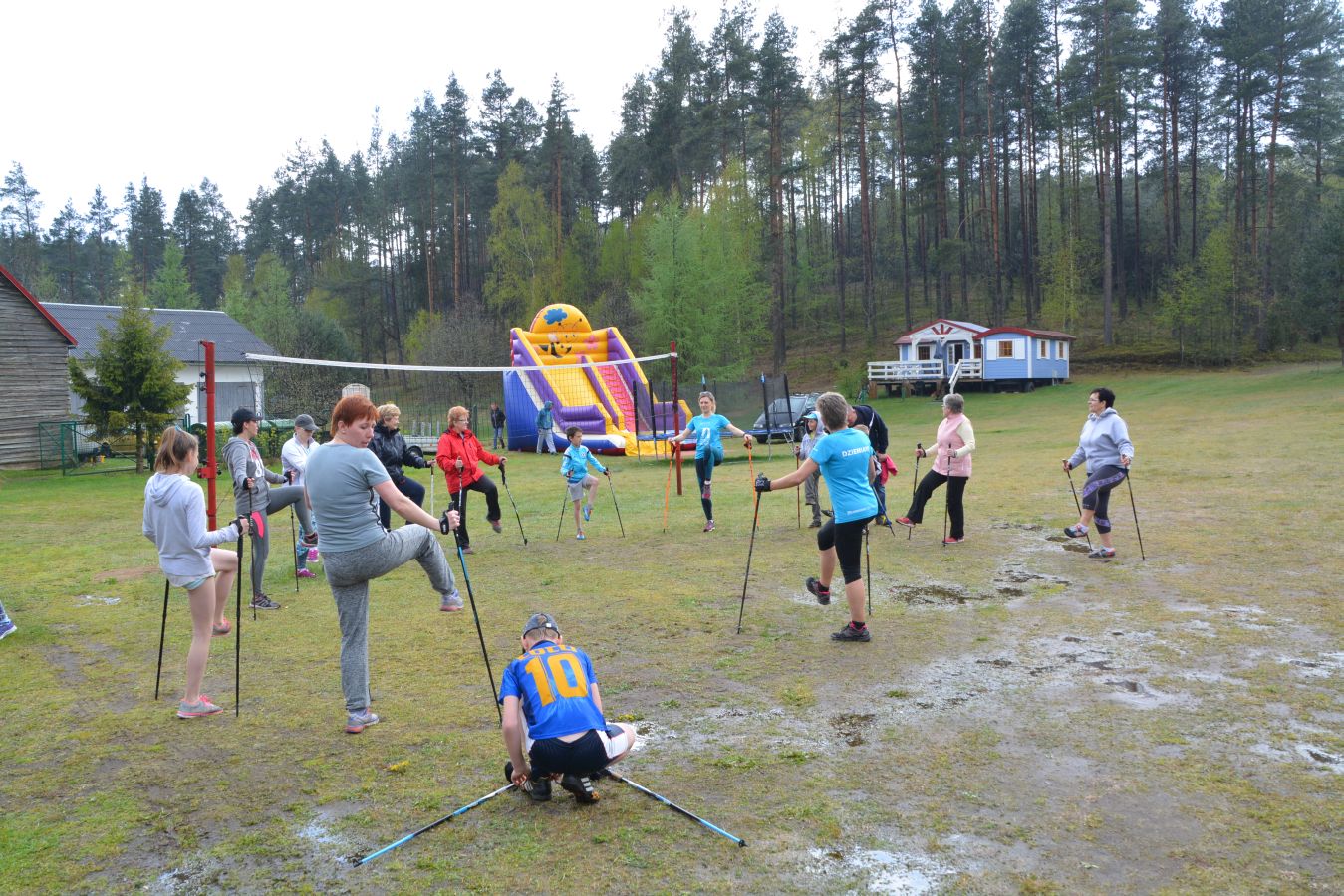 We wtorkowe popołudnie od godz. 14:00 rozpoczął się Majówkowy Blok Sportowy przy Kompleksie Domków Letniskowych w Dziemianach. Każdy sympatyk aktywności fizycznej miał możliwość wzięcia udziału w Marszu na Orientację, Biegach Przełajowych oraz w Rajdzie Nordic Walking. Cały poranek do południa przyświecało słońce, podczas biegów przełajowych zaskoczył zawodników deszcz, który na szczęście trwał jedynie chwilę. Zaraz potem wystartował Rajd z kijami. Powietrze po małej ulewie było rześkie.