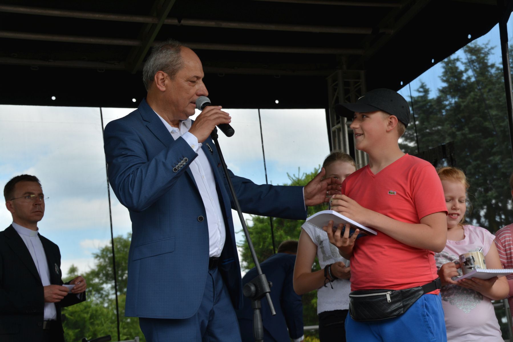 Dnia 11 czerwca br., w niedzielę, naszym corocznym zwyczajem przeżywaliśmy jako wspólnota festyn gminno-parafialny ku czci św. Antoniego. Jak co roku było to wielkie wydarzenie i wielka nasza radość. Każdy mógł znaleźć coś dla siebie. Nie zabrakło słodkości (tortu, ciast, drożdżówki, dla dzieci waty cukrowej i lodów). Nie zabrakło również czegoś bardziej konkretnego (grochówki, kiełbasek, bigosu, baraniny, pieczystego, tradycyjnego kaszubskiego chleba ze smalcem), ani niczego, czym te wszystkie specjały można by popić. Ale festyn to nie tylko uczta dla ciała, lecz również, albo i przede wszystkim, rozrywka dla duszy, tak więc tradycyjnie potężnym śpiewem przywitała nas orkiestra “Przyjaźń”, zaprezentowało się na scenie nasze KGW, duet instrumentalny z Kalisza, schola parafialna i debiutujący w tym roku zespół “Cantate Deo”, miały swój występ także przedszkolaki. Gwiazdą wieczoru z prawie 90 minutowym występem był kabaret OT-TO oraz… nasz Ksiądz Proboszcz z niesamowitym występem. Wszystko to w cudownej aurze pogodowej i wielkiej ludzkiej radości.