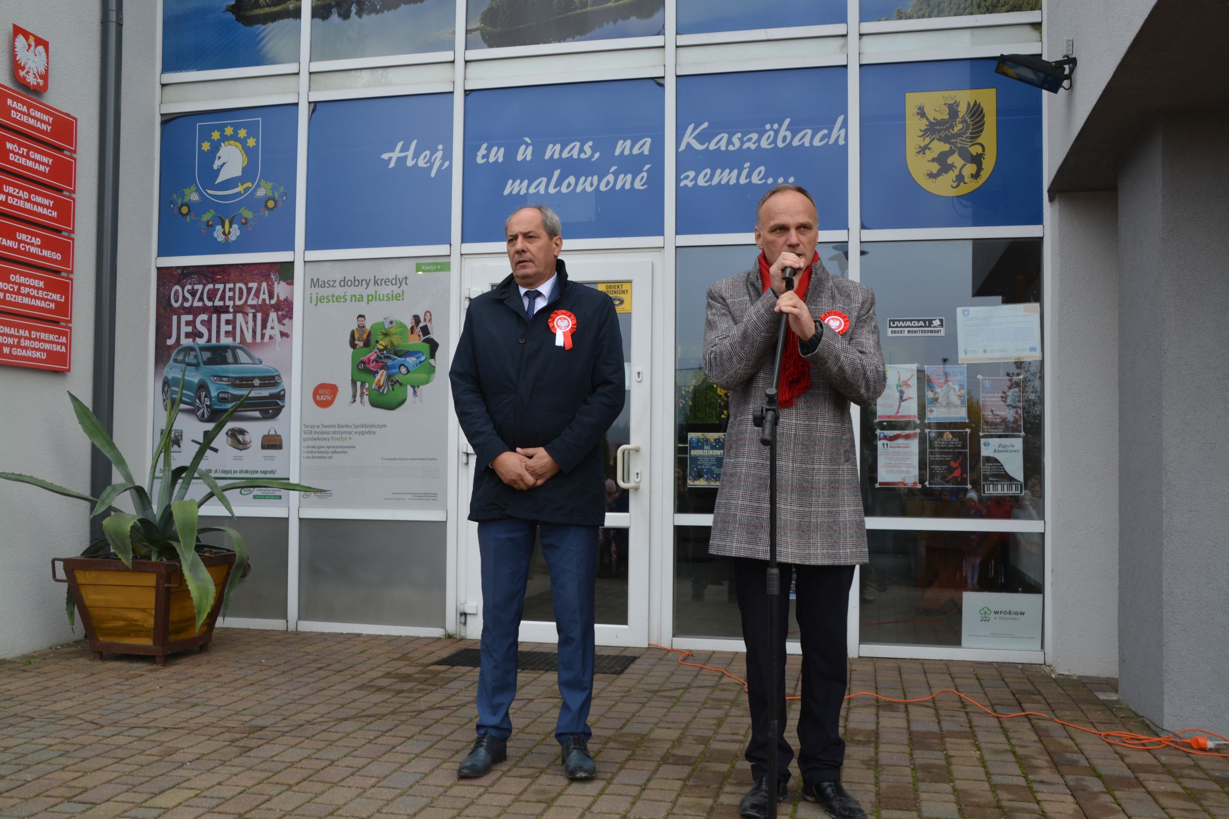 Świętowanie dla wszystkich mieszkańców rozpoczęło się o godz. 12.00 przed budynkiem Urzędu Gminy w Dziemianach. Po odśpiewaniu wszystkich zwrotek hymnu Polski, głos zabrał prowadzący i osoby przemawiające w osobach Dyrektora Ośrodka Kultury, Wójta Gminy oraz Przewodniczącego Rady Gminy w Dziemianach.