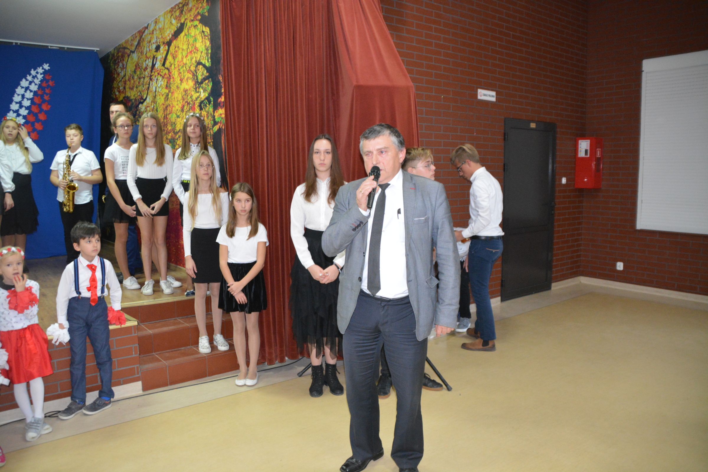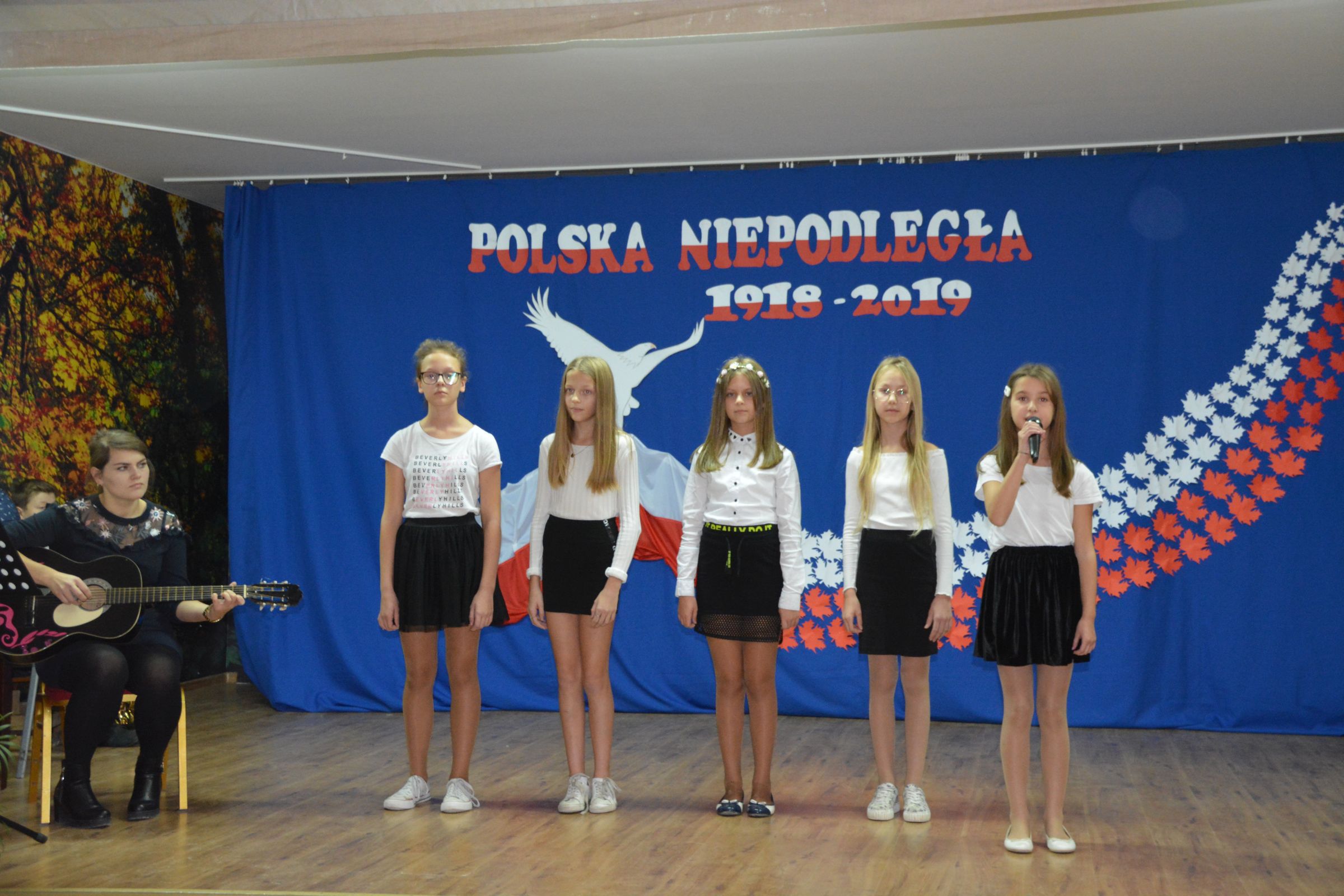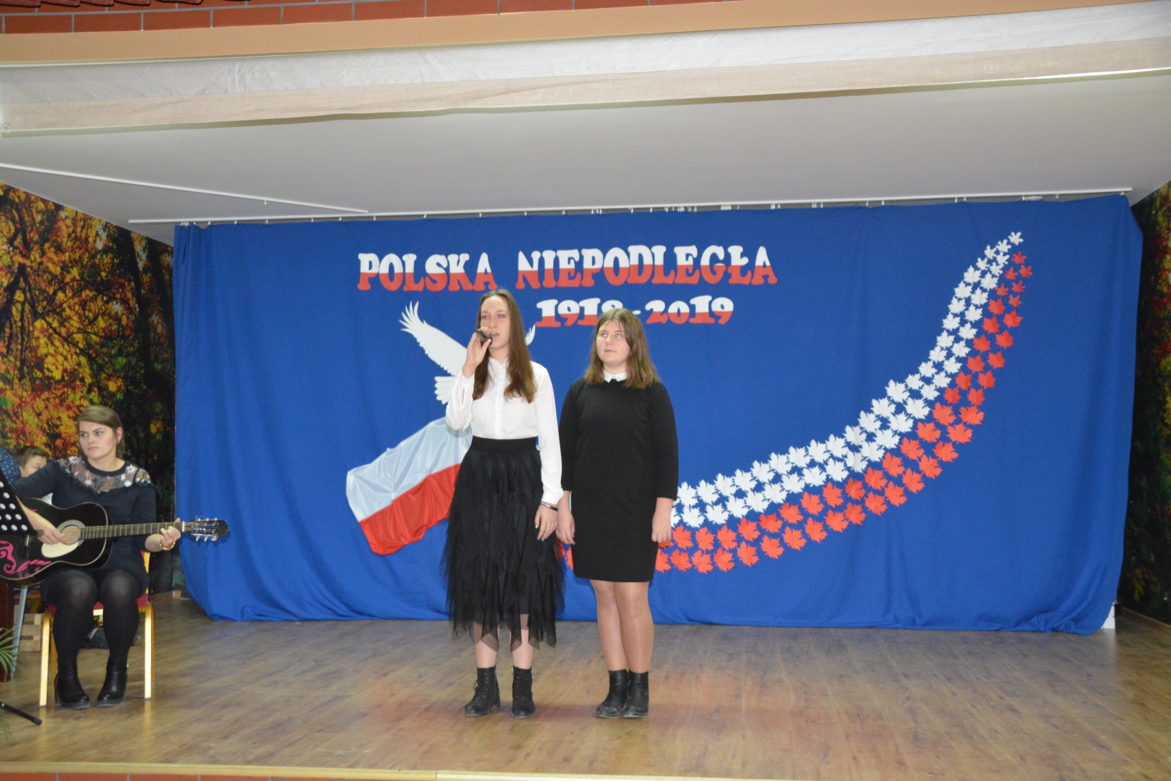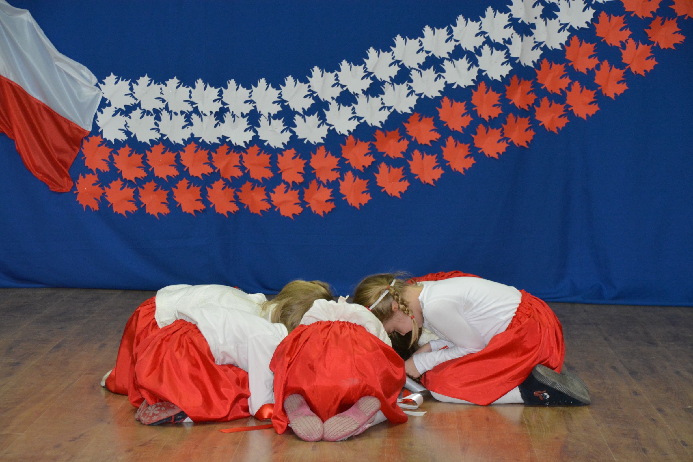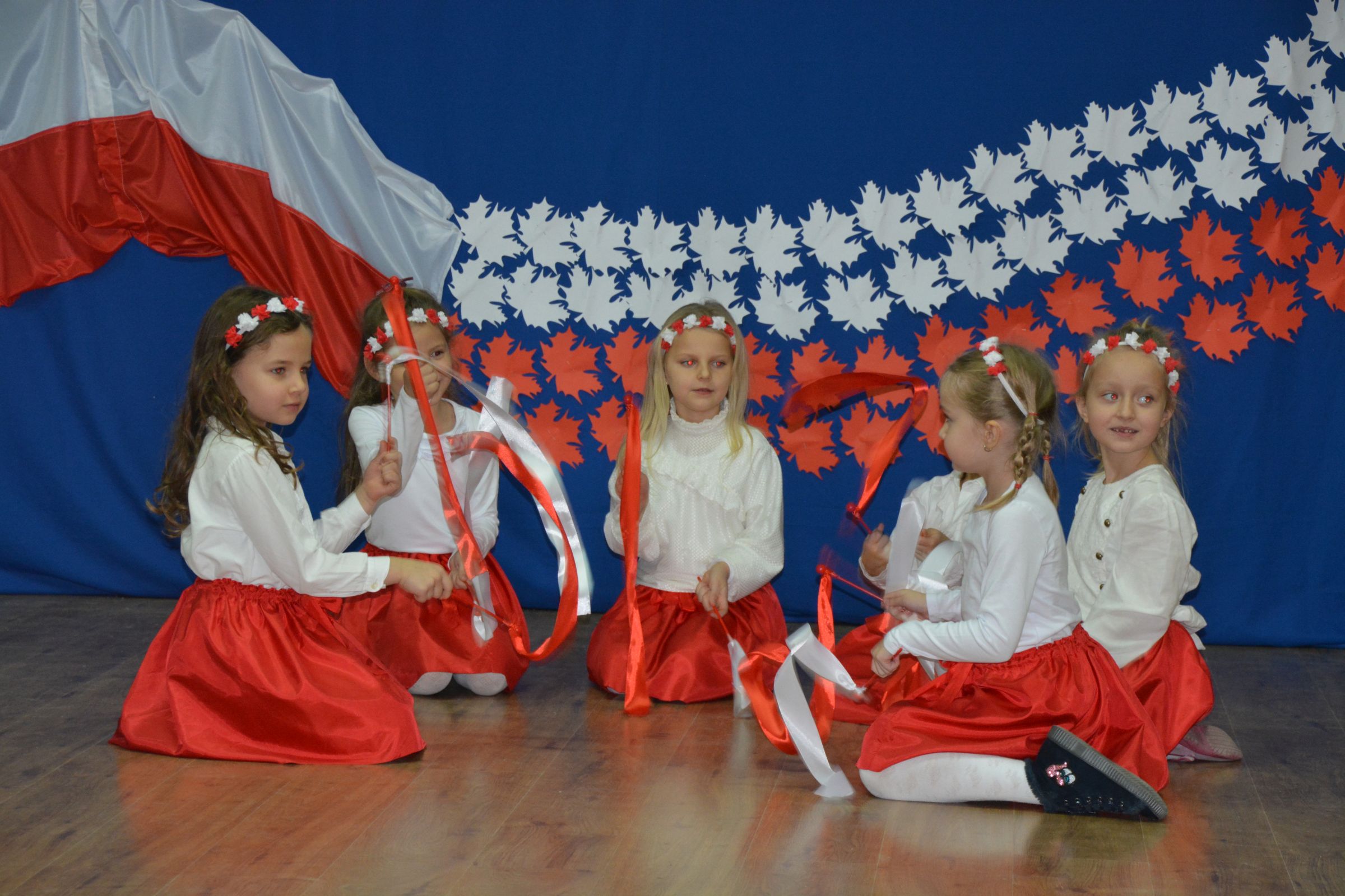 Finałową częścią uroczystości był udział w występie artystycznym przygotowanym przez uczniów SP w Dziemianach. Uwagę przyciągała dekoracja, na której środku wznosił się biały orzeł. Całość wyrażała szacunek do naszych symboli narodowych. Poczucie patriotyzmu i chęć jego wzmocnienia wyrazili uczniowie w takich utworach jak: “Taki kraj”, “Pola”, Polskie kwiaty”, “Jak długo w sercach naszych”. Radosnym uzupełnieniem był występ klasy zerowej, która strojami w barwach flagi Polski, piosenką i tańcem podkreśliła wartość tego święta. Jako Kaszubi, znani z pielgrzymek do Kalwarii Wielewskiej, co jest w naszej tradycji, lubimy muzykę płynącą z instrumentów dętych, dlatego trąbka i saksofon brzmiące melodią “Jak długo w sercach naszych” wniosły ekscytujące przeżycie.