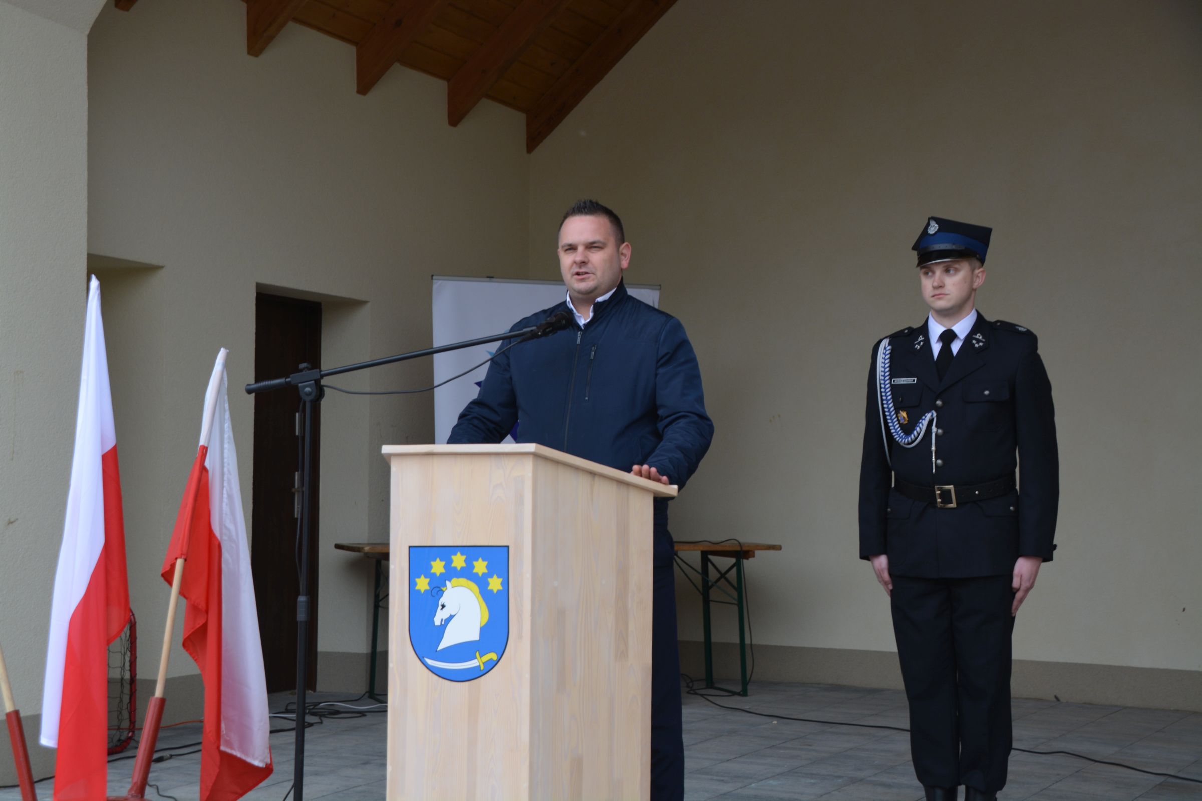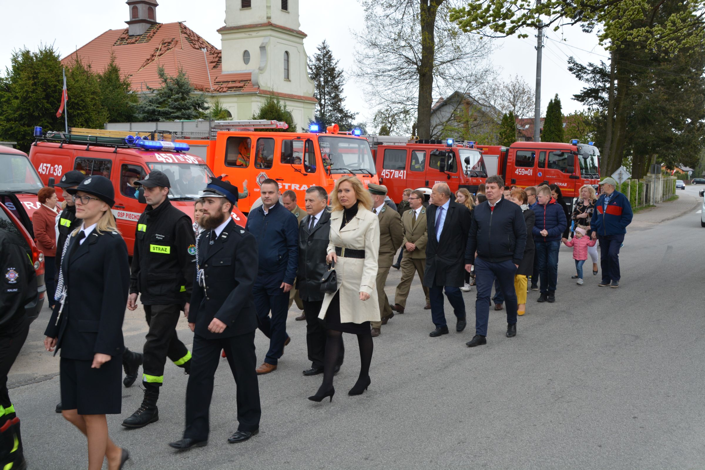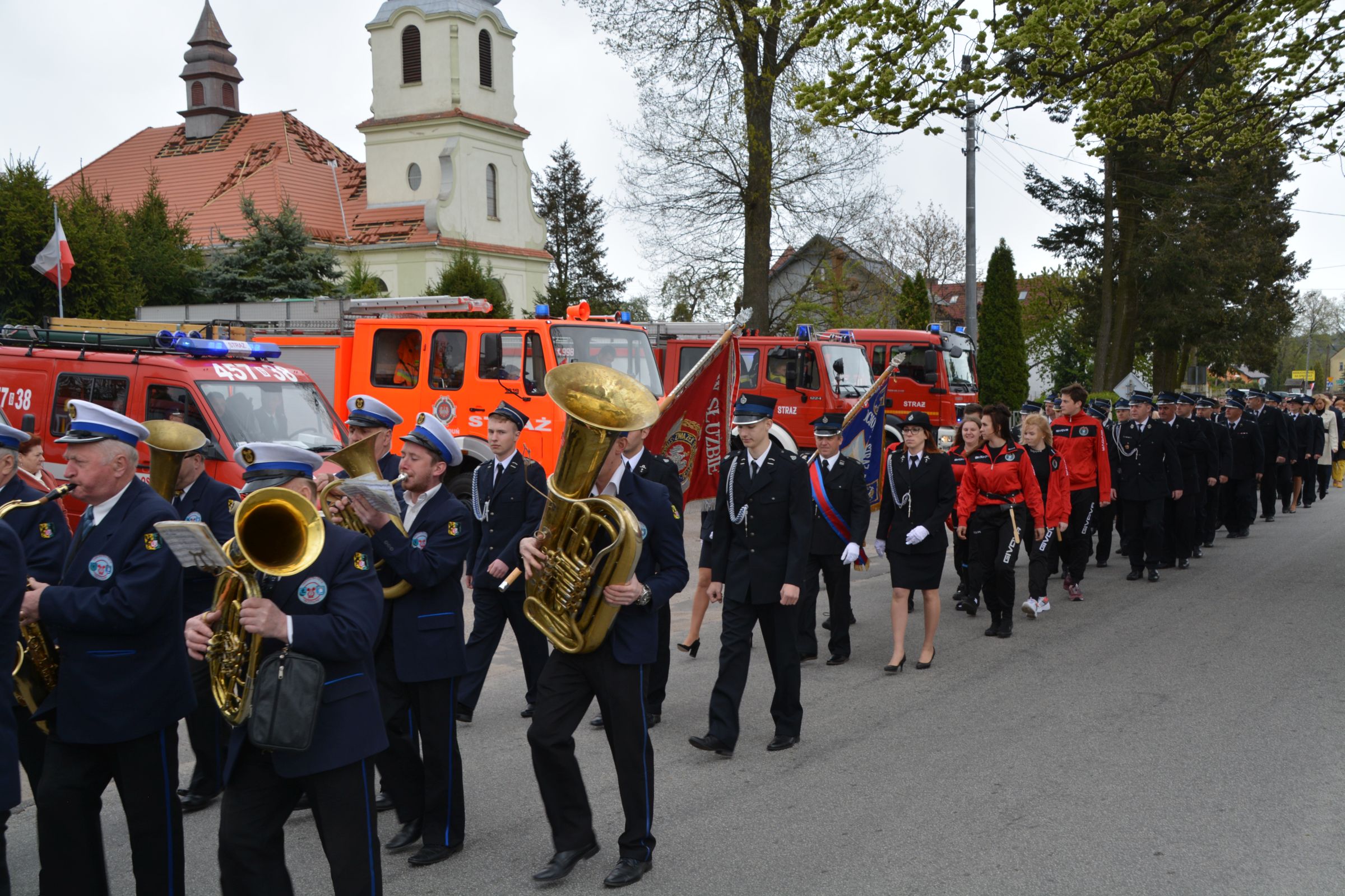 Dnia 4 maja 2019 – we wspomnienie św. Floriana odbył się Gminny Dzień Strażaka. Uroczyste obchody rozpoczęły się od wspólnej Mszy Świętej Dziękczynnej. Następnie wspólnym korowodem strażacy wraz z rodzinami oraz mieszkańcami naszej gminy przeszli do amfiteatru. Druga część świętowania została zainaugurowana przemówieniem Prezesa Gminnego Zarządu OSP dh Piotra Laski. Podziękował on za ofiarna służbę i pomoc w zagrożeniu. Po nawiązaniu do ostatniej dużej akcji gaśniczej z terenu naszej gminy głos zabrał właściciel zakładu COMPLEX. Także on podziękował za szybką gotowość i sprawne przeprowadzenie akcji ratunkowo-gaśniczej. Podkreślił ofiarność i zaangażowanie szczególnie pań zrzeszonych w OSP, a także podziękował za profesjonalizm kpt. Dariuszowi Radomskiemu.