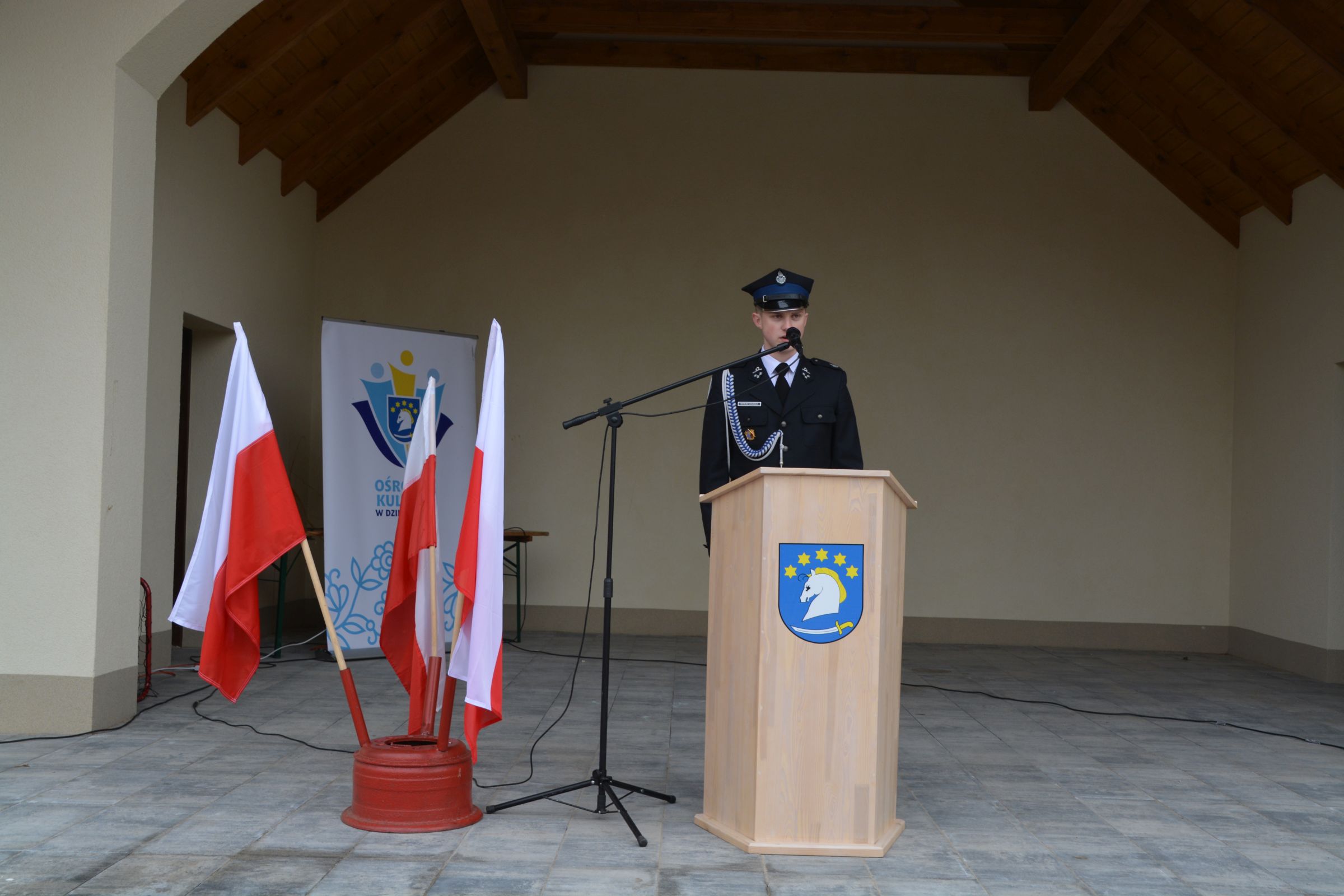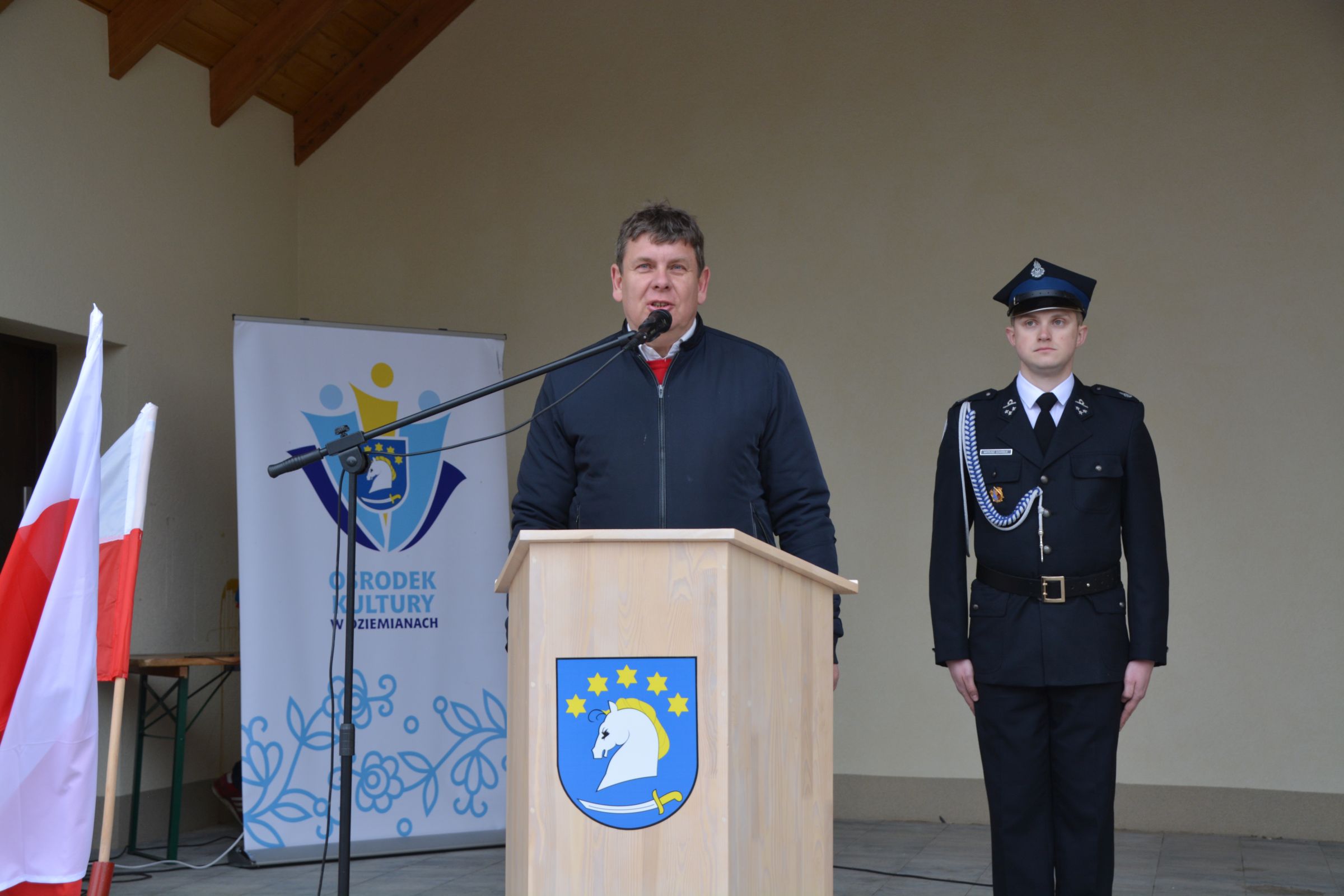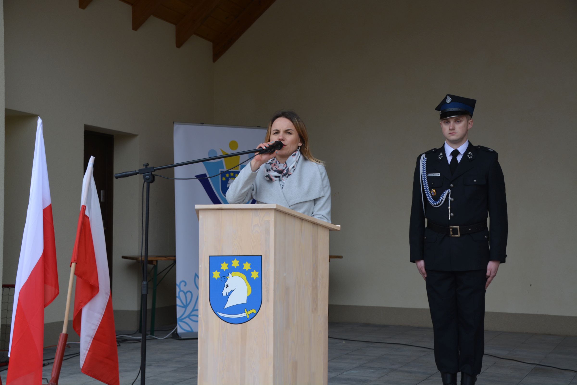 Dnia 4 maja 2019 – we wspomnienie św. Floriana odbył się Gminny Dzień Strażaka. Uroczyste obchody rozpoczęły się od wspólnej Mszy Świętej Dziękczynnej. Następnie wspólnym korowodem strażacy wraz z rodzinami oraz mieszkańcami naszej gminy przeszli do amfiteatru. Druga część świętowania została zainaugurowana przemówieniem Prezesa Gminnego Zarządu OSP dh Piotra Laski. Podziękował on za ofiarna służbę i pomoc w zagrożeniu. Po nawiązaniu do ostatniej dużej akcji gaśniczej z terenu naszej gminy głos zabrał właściciel zakładu COMPLEX. Także on podziękował za szybką gotowość i sprawne przeprowadzenie akcji ratunkowo-gaśniczej. Podkreślił ofiarność i zaangażowanie szczególnie pań zrzeszonych w OSP, a także podziękował za profesjonalizm kpt. Dariuszowi Radomskiemu.