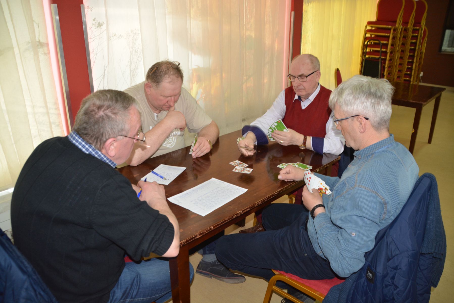 Pan Leszek Pobłocki przywitał wszystkich zawodników, życzył dobrej karty oraz zaprosił skatową brać na kolejne rozgrywki skatowe do naszej gminy.