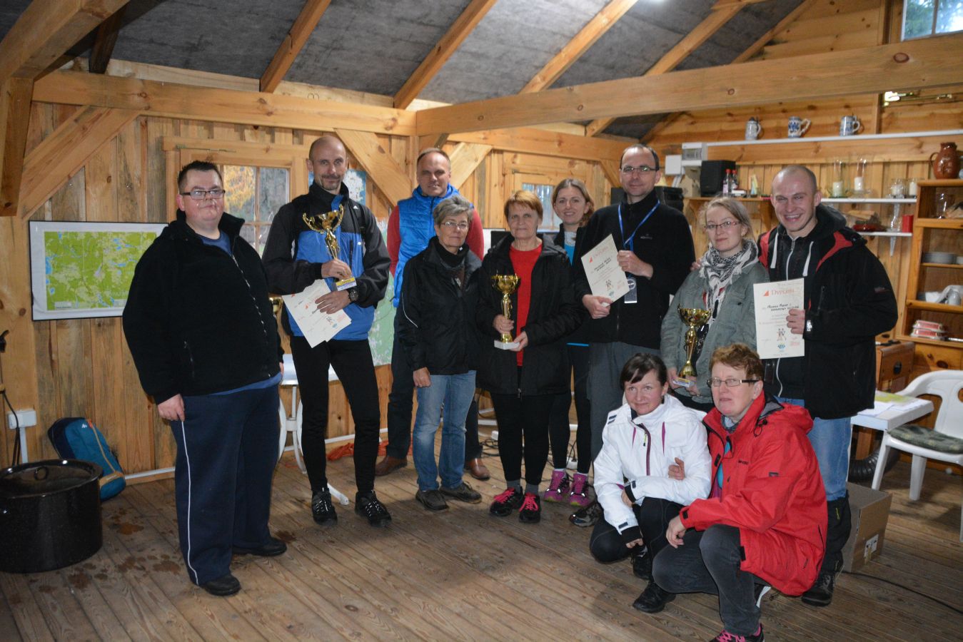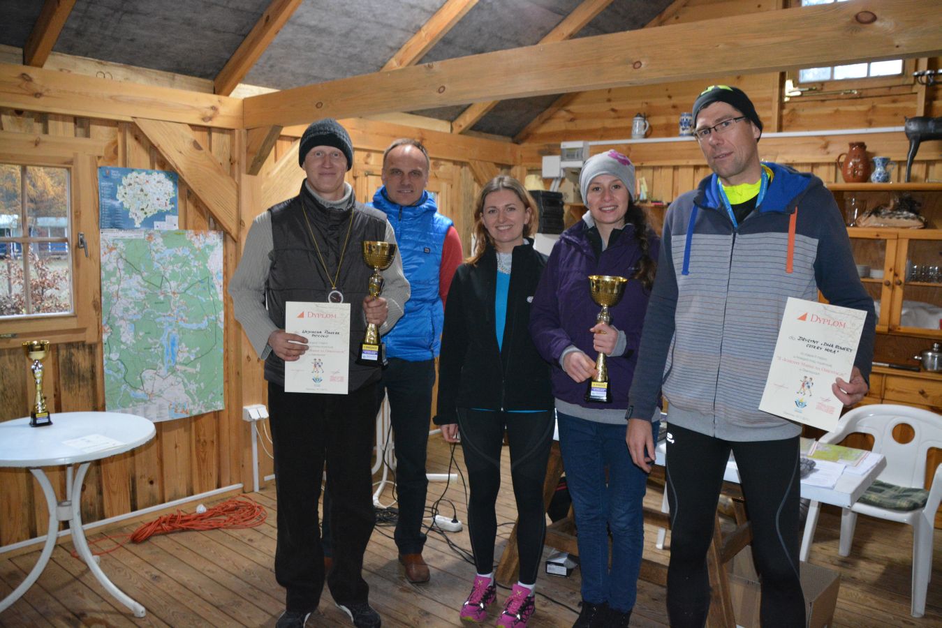 Po powrocie z trasy można było zregenerować siły posilając się smaczną grochówką. Każdy uczestnik imprezy otrzymał pamiątkowy dyplom oraz mapy. W bazie zawodów można było również skorzystać z gorących napojów.