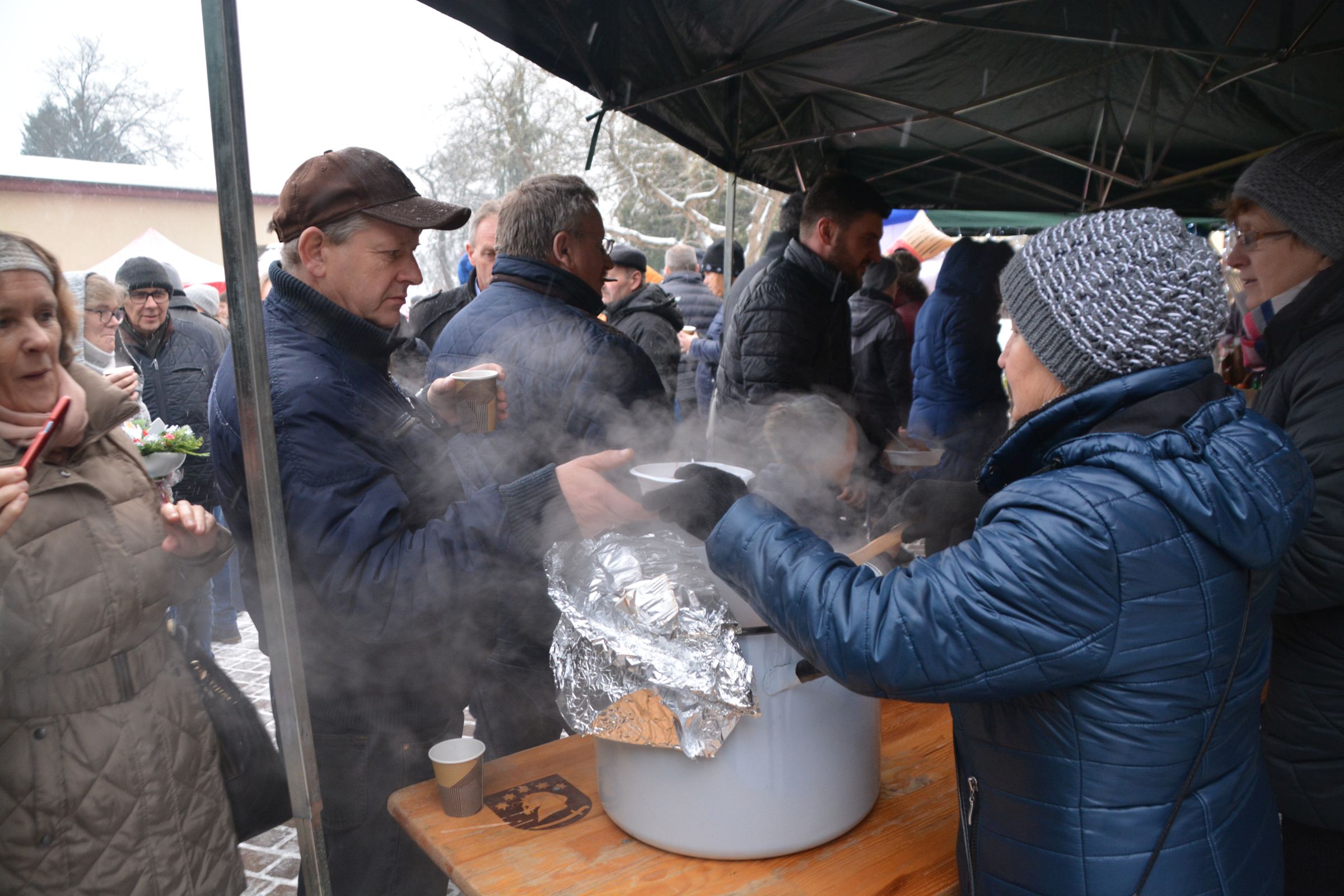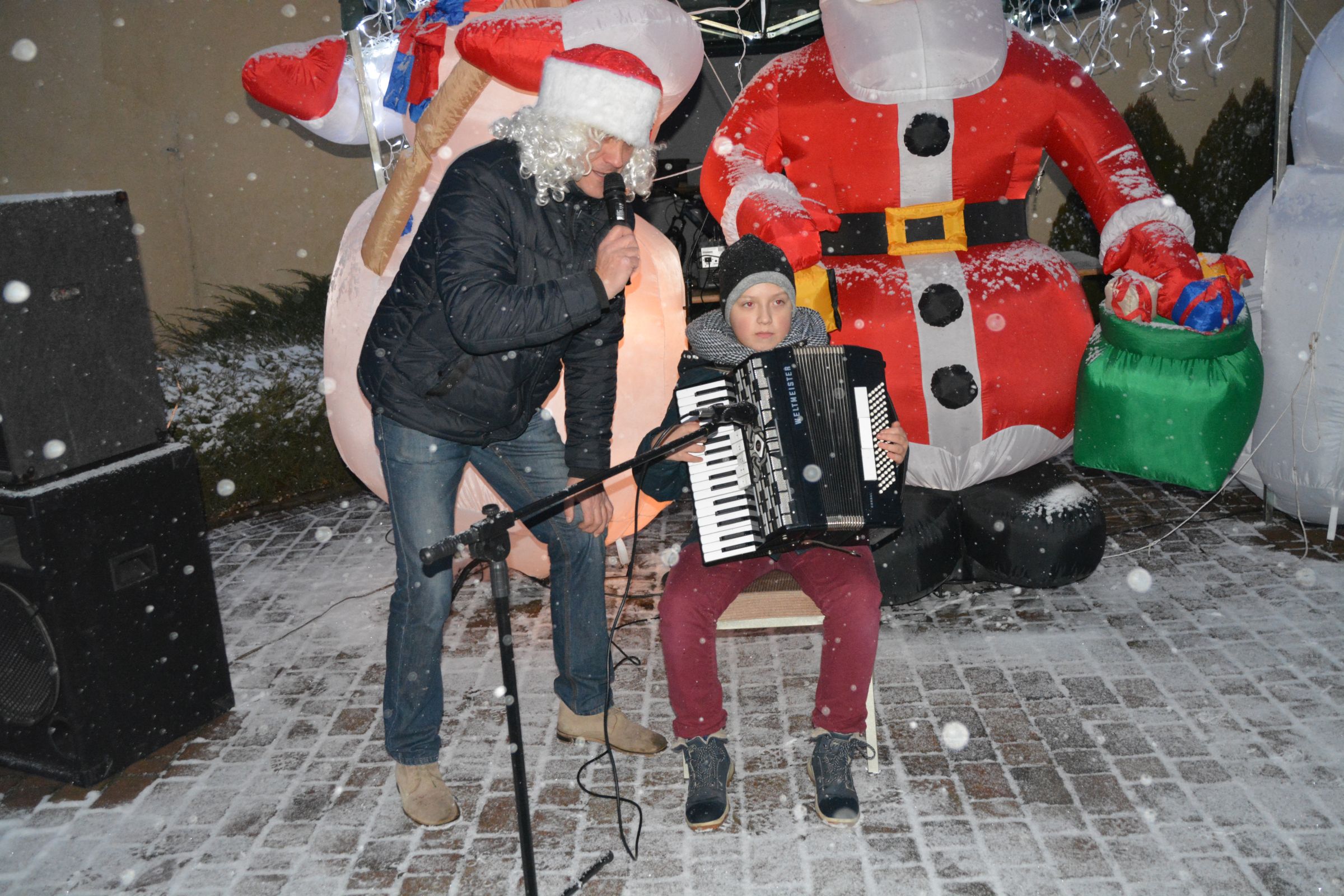 Już po raz kolejny odbył się Świąteczny Kiermasz w naszej miejscowości. 16 grudnia o godzinie 14.30 rozpoczęło się wspólne biesiadowanie na parkingu przy kościele. W świąteczny nastrój wprowadziły nas bożonarodzeniowe utwory w wykonaniu scholi parafialnej oraz Orkiestry Dętej Przyjaźń. Na stoiskach można było zapoznać się z działalnością Szkolnego Koła Wolontariatu, a także z rękodziełem Koła Gospodyń Wiejskich oraz Środowiskowego Domu Samopomocy z Trzebunia. Ksiądz Proboszcz częstował rozgrzewającymi napojami, a niezwykły gość – Święty Mikołaj wraz ze Śnieżynkami rozdawali upominki w postaci świątecznych pierników.