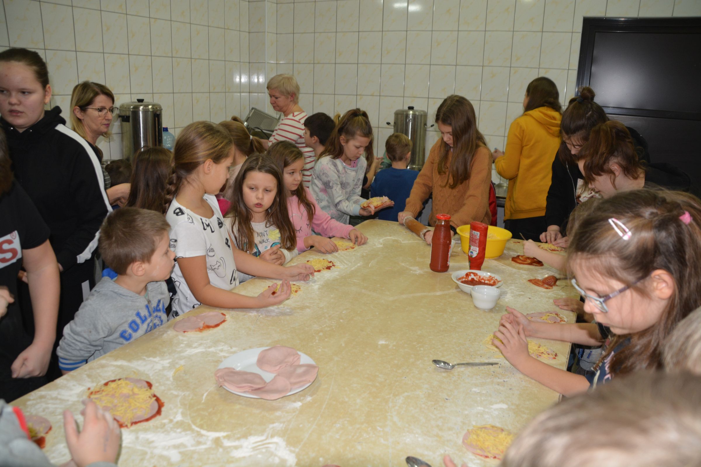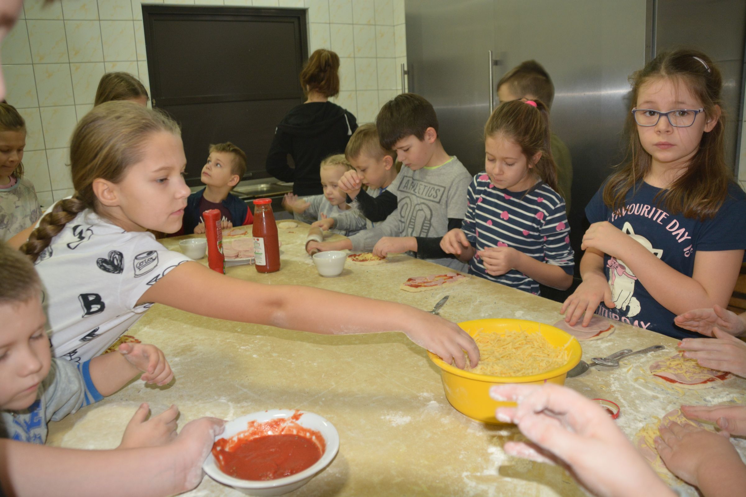 W planie tegorocznych ferii organizowanych przez Ośrodek Kultury w Dziemianach nie mgło zabraknąć znanych i lubianych przez najmłodszych mieszkańców naszej gminy spotkań z cyklu “Mały Artysta”. Mali kucharze, podczas 2 tygodniowego odpoczynku, zebrali się w kuchni OK dnia 14.01.2020 r. Na spotkanie pieczenia pizzerek przybyło ponad 50 dzieci. Każde dziecko otrzymało „kulkę” ciasta drożdżowego, po czym każdy uczestnik we własnym zakresie wałkował ciasto i nakładał swoje ulubione składniki. Następnie wszystkie pizzerki zostały wstawione do pieca na 15 minut. Po wyciągnięciu z piekarnika każde dziecko rozsmakowywało się w swojej pizzerce. Zapraszamy na kolejne spotkania z cyklu „Mały Artysta”.