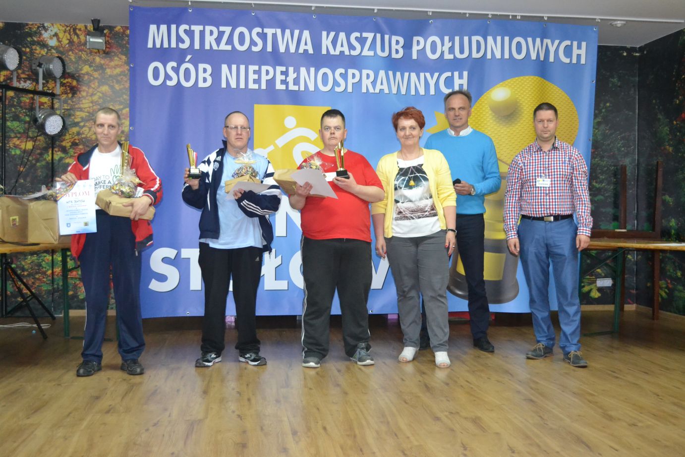 Środowiskowy Dom Samopomocy w Trzebuniu oraz Stowarzyszenie na Rzecz Rozwoju Gminy Dziemiany przy współpracy z Ośrodkiem Kultury w Dziemianach w dniu 14. 05. 2015 r. zorganizowali Mistrzostwa Kaszub Południowych Osób Niepełnosprawnych w Tenisie Stołowym w Ośrodku Kultury w Dziemianach. W turnieju udział wzięło 8 drużyn ze Środowiskowych Domów Samopomocy, Warsztatów Terapii Zajęciowej oraz Domów Pomocy Społecznej z województwa pomorskiego wraz z opiekunami. Wszyscy wspaniale się bawili, zwycięzcy indywidualni i drużynowi, którzy zajęli I, II, III miejsce otrzymali dyplomy, puchary oraz nagrody a pozostałe drużyny podziękowania i upominki za udział w turnieju. Organizatorzy dziękują sponsorom, którzy przyczynili się do zorganizowania tej imprezy, m.in. Przedsiębiorstwu Handlowo – Usługowemu „COMPLEX” Sp. z o. o., Marketowi Budowlano – Drogeryjnemu KUKLIŃSKI, Instalatorstwu Elektrycznemu – Józef Kukliński, Zakładowi Rusznikarskiemu, Obrót Bronią i Amunicją Piotr Skawiński, Zakładowi Usługowo – Remontowo – Budowlanemu Sławomir Wiecki, Sklepowi Spożywczo – Przemysłowemu HELENA Helena Kloskowska, Firmie DACH – TRAK Zbigniew Wiecki oraz wolontariuszom z Gimnazjum im. Stefana Wyszyńskiego w Dziemianach. Mistrzostwa Kaszub Południowych Osób Niepełnosprawnych w Tenisie Stołowym zostały dofinansowane ze środków Państwowego Funduszu Rehabilitacji Osób Niepełnosprawnych.