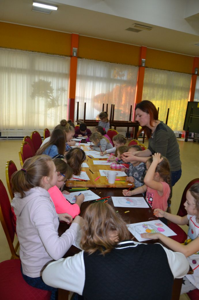 31 marca 2015 w Ośrodku Kultury w Dziemianach odbyło się pierwsze spotkanie z cyklu “Mały Artysta”. Zajęcia o tematyce “Wielkanocne mazurzenie” miały charakter kulinarny. Dzieci z wcześniej przygotowanego ciasta kruchego wycinały podstawę mazurków. W czasie, gdy ciastka piekły się w piekarniku, dzieci brały udział w ruchowych zabawach wielkanocnych oraz kolorowały świąteczne obrazki. Następnie, gdy ciastka już się upiekły, dzieci przystąpiły do najbardziej wyczekiwanej części spotkania – dekoracji. Pomysłowość uczestników nie miała granic. Dzięki temu mazurki wyglądają bardzo kolorowo i z pewnością są słodkie.
