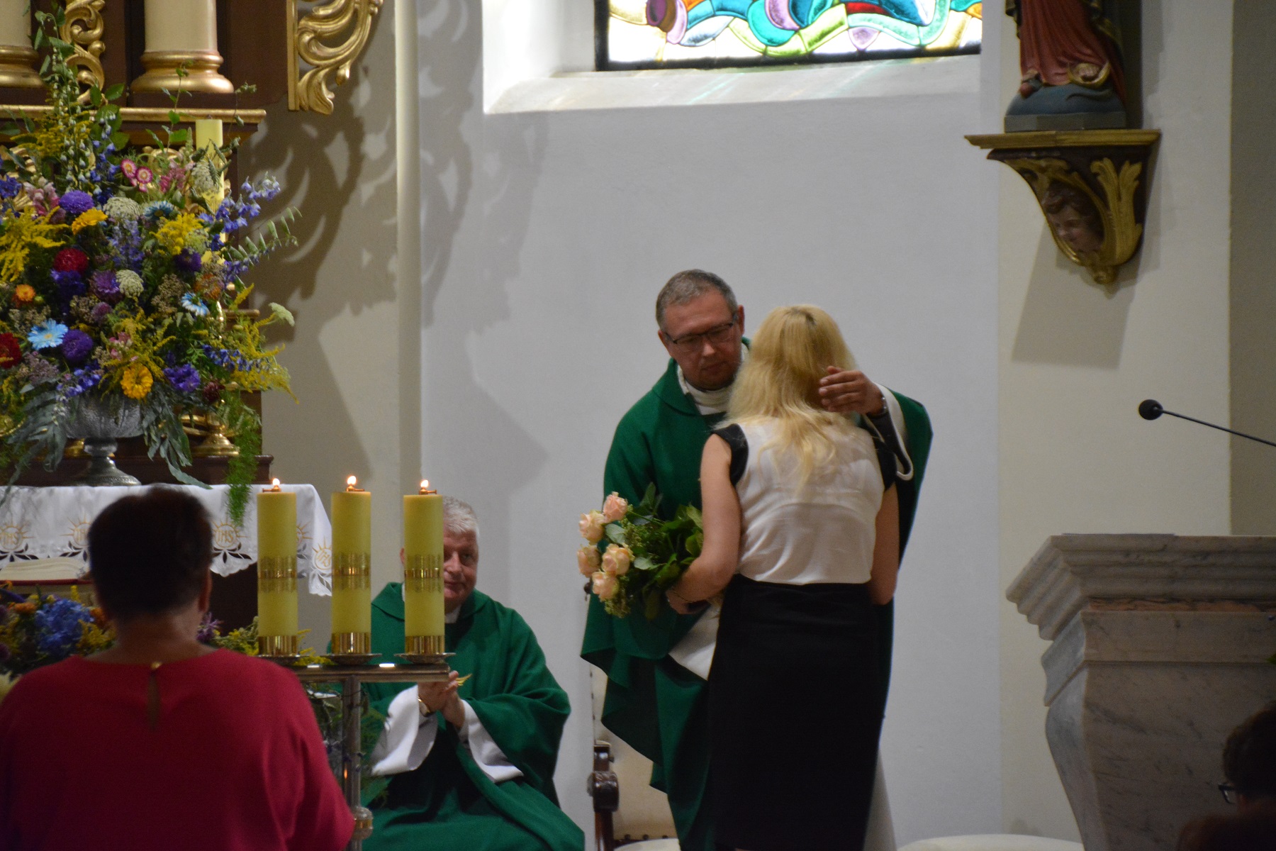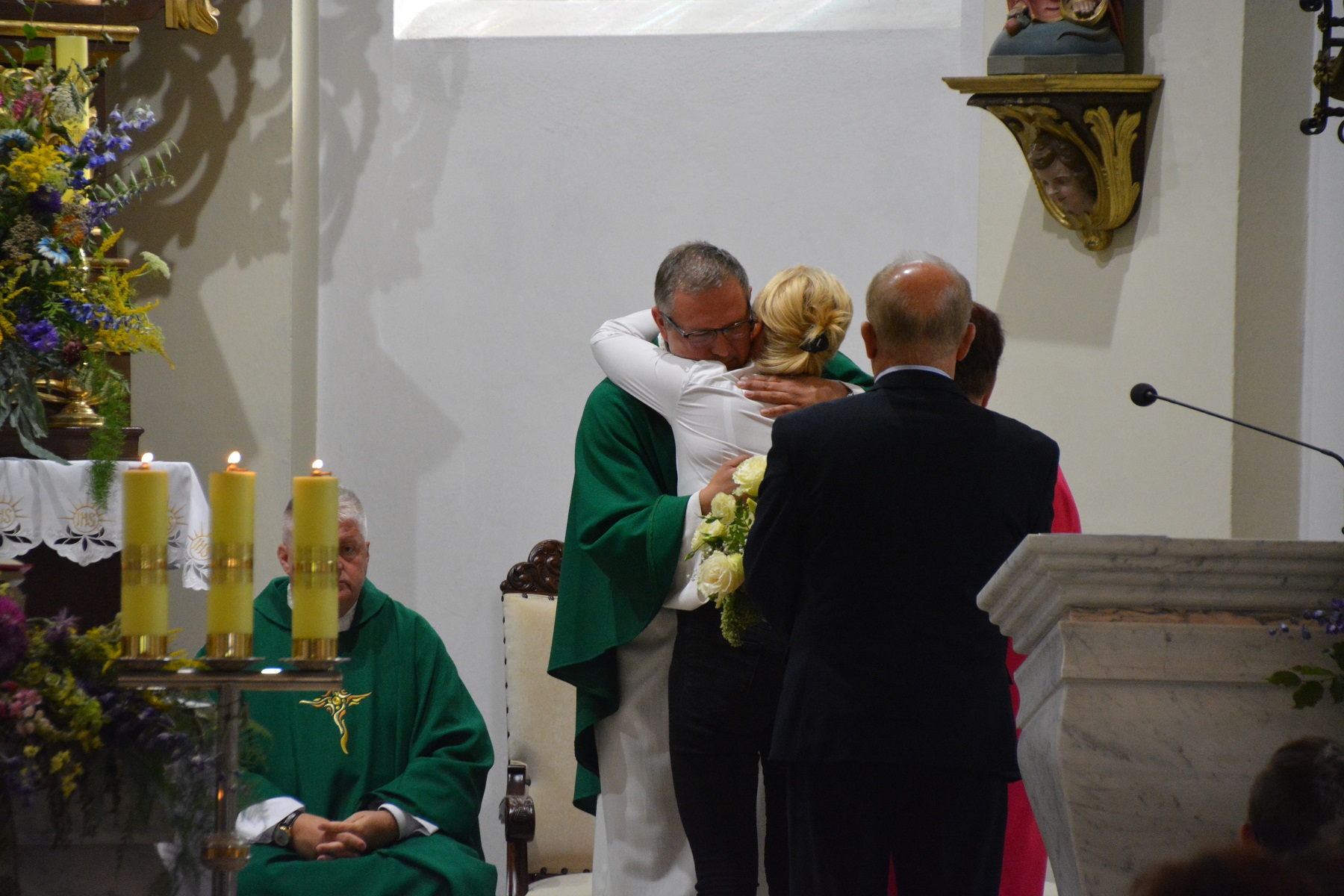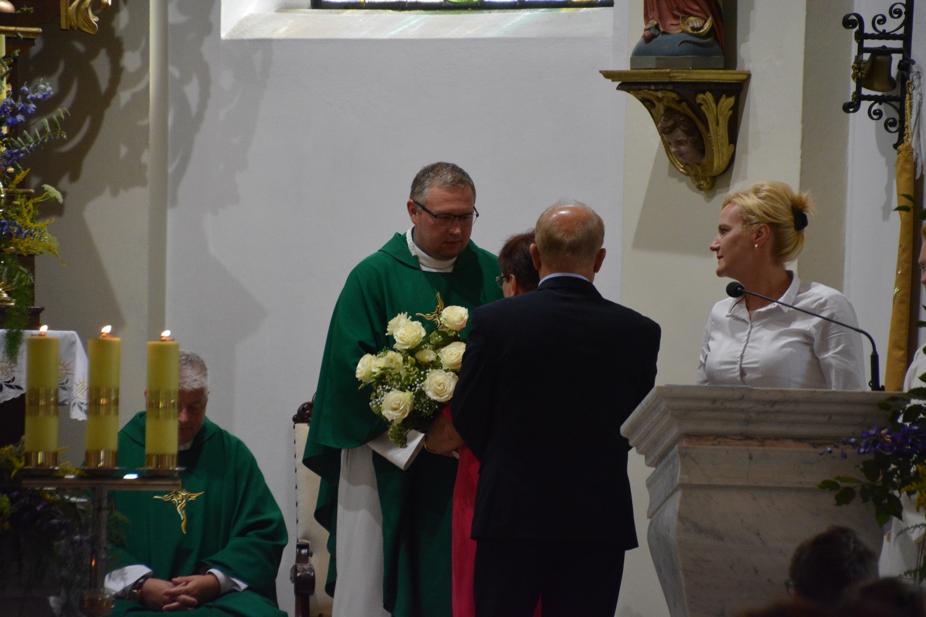 Ksiądz wikariusz również podziękował księdzu proboszczowi za przyjazną współpracę oraz stworzenie mu możliwości spełniania się w posłudze kapłańskiej. Dziękował także parafianom za życzliwość, przywiązanie, dobro i serce, dzięki czemu, jak stwierdził, czuł się tu w ciągu minionych 5 lat jak w rodzinie. Zwrócił uwagę na jedność naszej parafii, nie zauważył tu bowiem rozłamu, za co szczególnie dziękował.