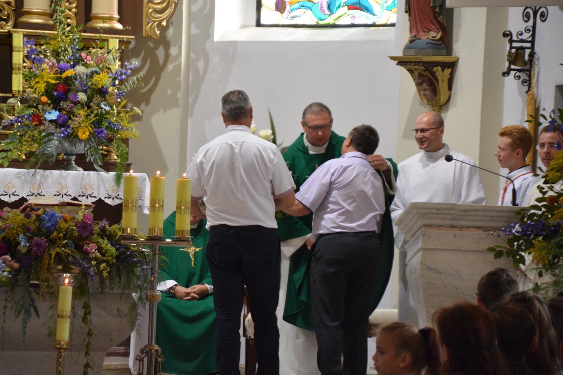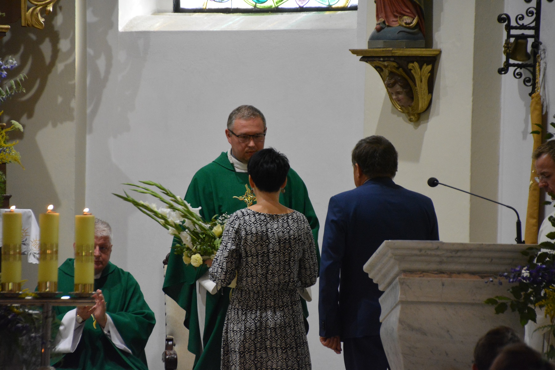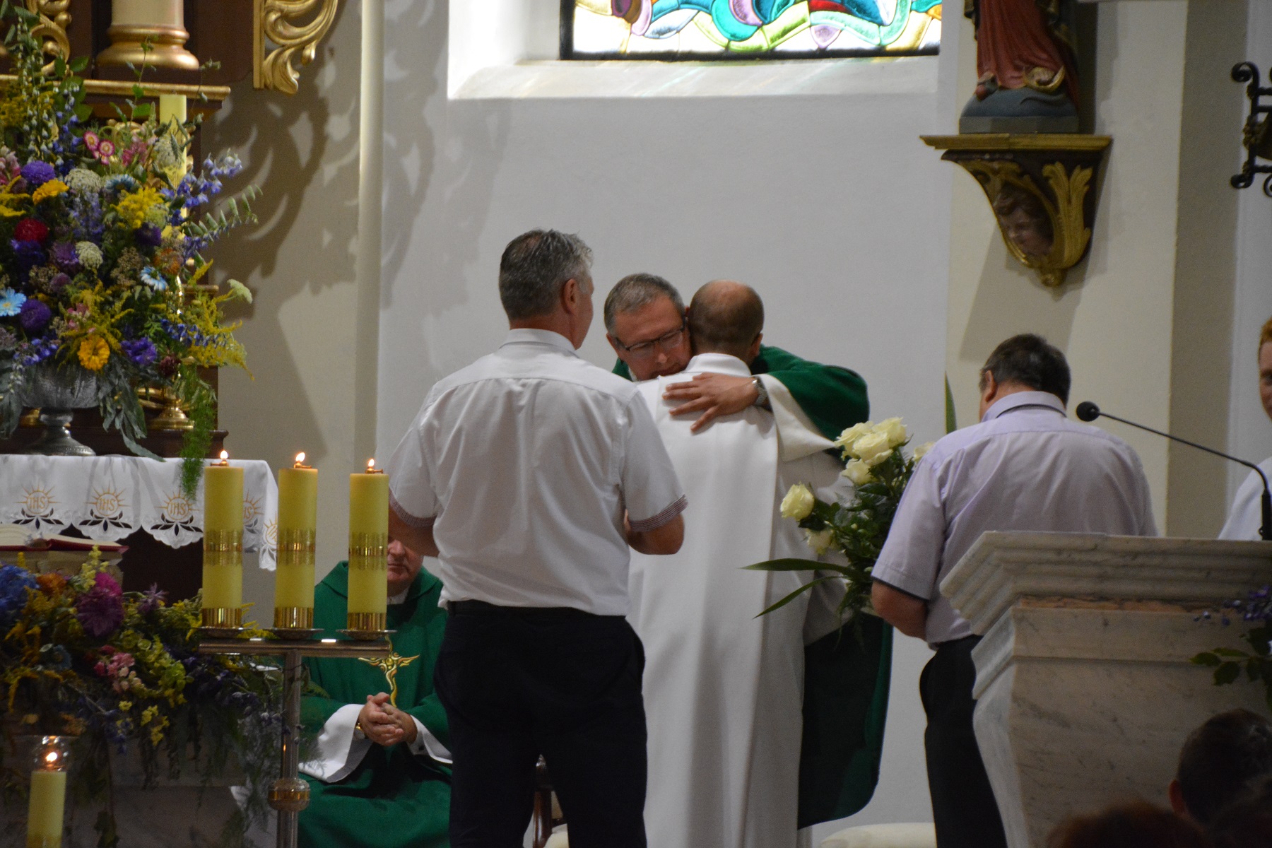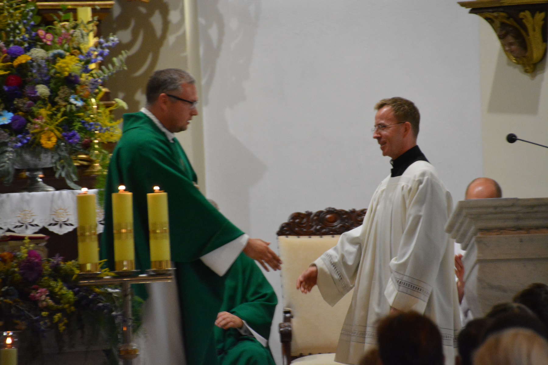 Ksiądz wikariusz również podziękował księdzu proboszczowi za przyjazną współpracę oraz stworzenie mu możliwości spełniania się w posłudze kapłańskiej. Dziękował także parafianom za życzliwość, przywiązanie, dobro i serce, dzięki czemu, jak stwierdził, czuł się tu w ciągu minionych 5 lat jak w rodzinie. Zwrócił uwagę na jedność naszej parafii, nie zauważył tu bowiem rozłamu, za co szczególnie dziękował.