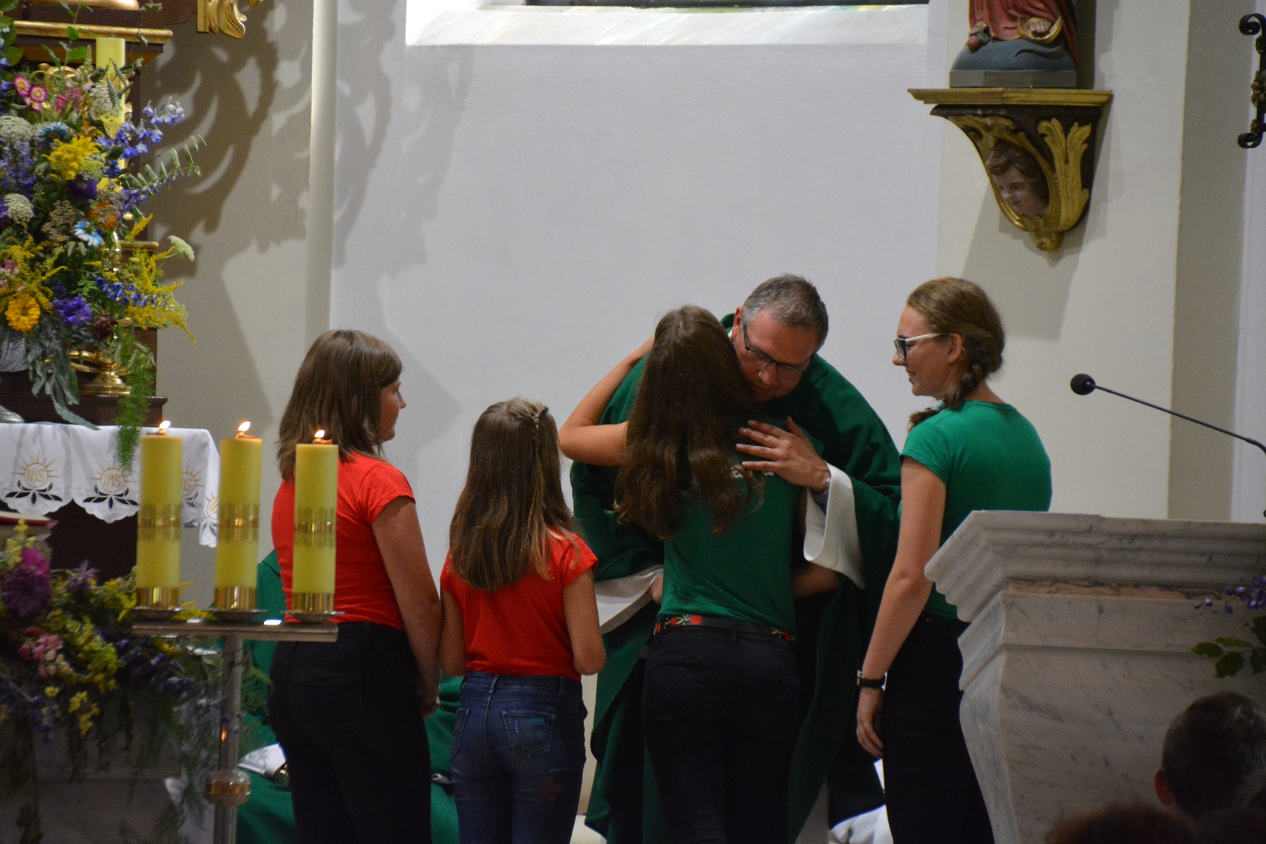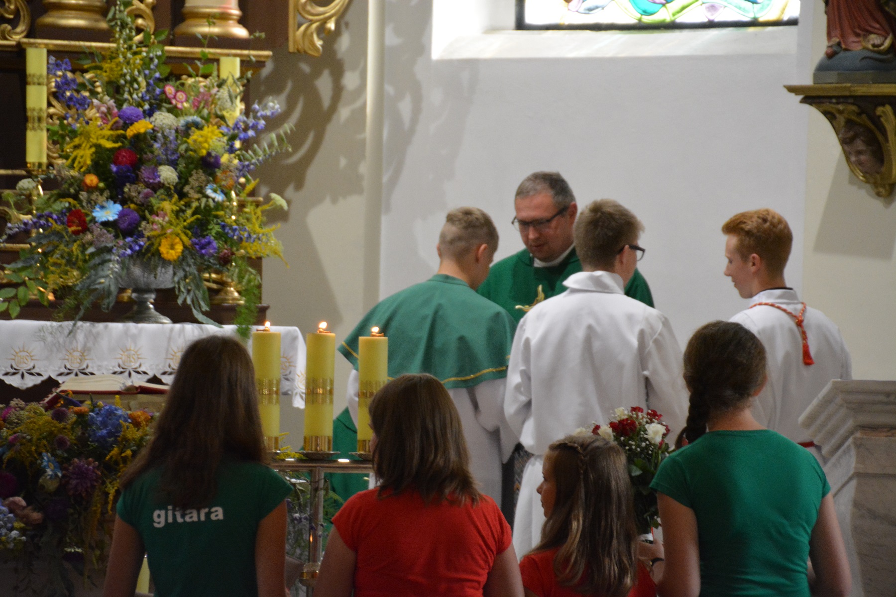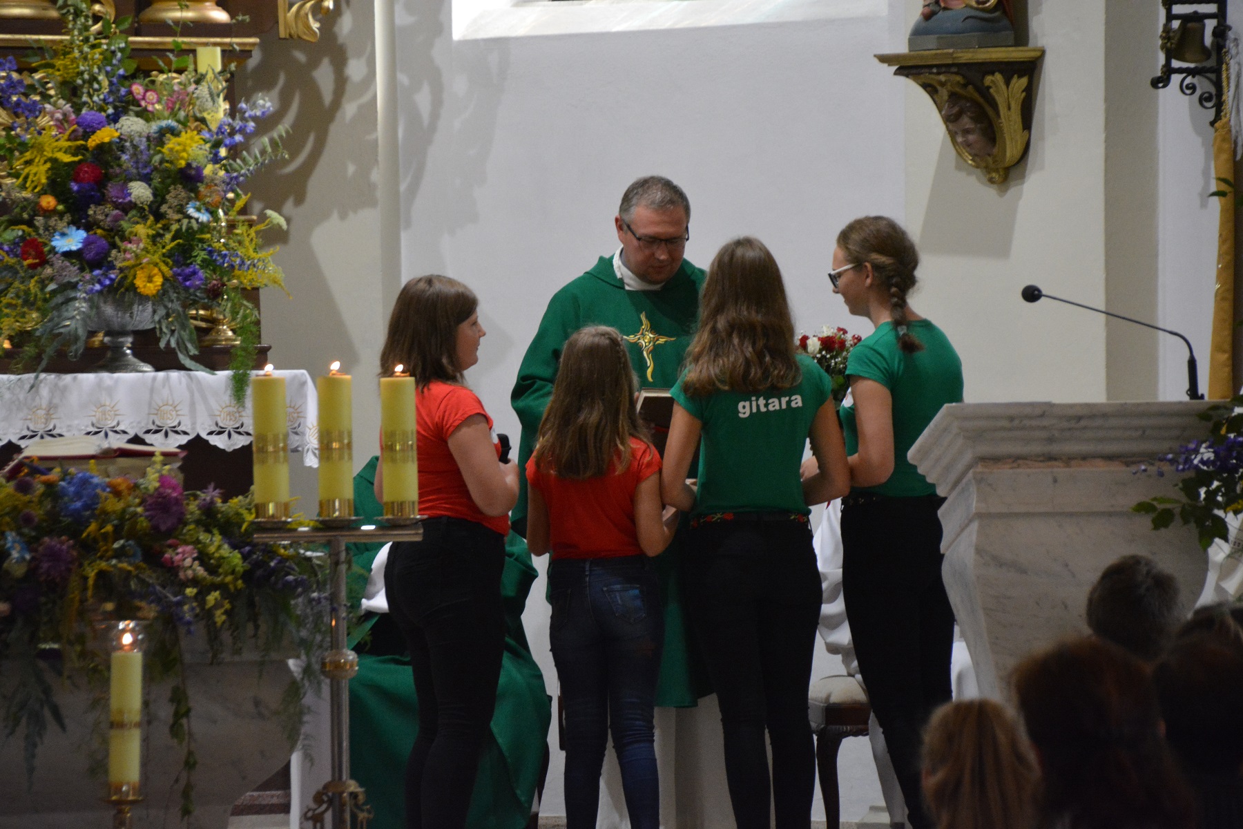 Z kolei z podziękowaniami i kwiatami wystąpiły delegacje z Radunia, Trzebunia, Piechowic oraz Rada Parafialna, ministranci, KSM i Schola, która pożegnała księdza pieśnią własnego autorstwa.
