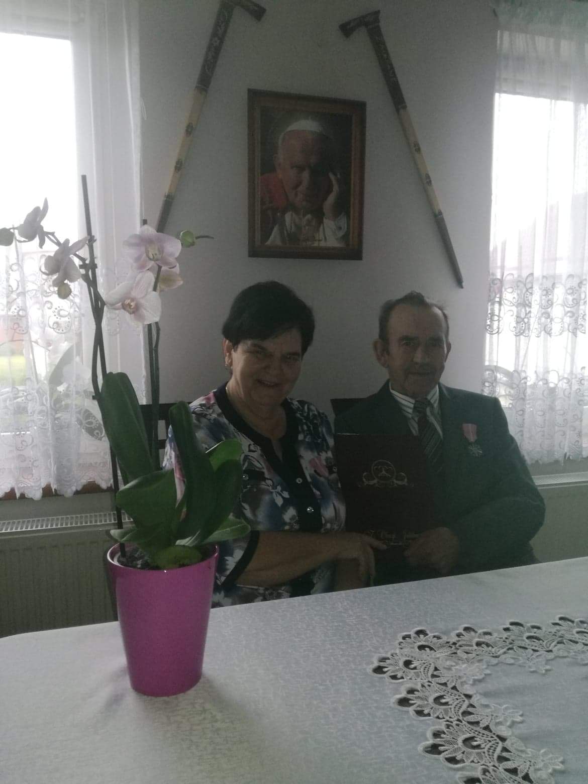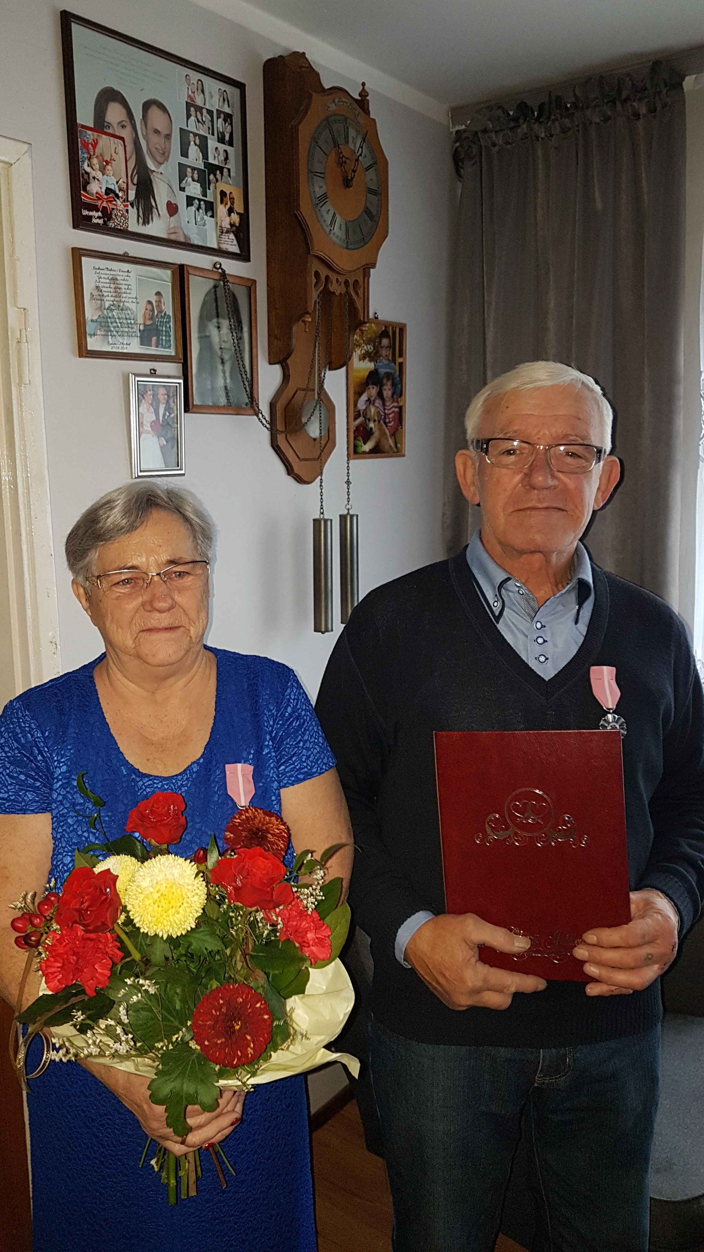 Małżonkowie zostali odznaczeni medalami za “długoletnie pożycie małżeńskie” nadanymi przez Prezydenta RP Andrzeja Dudę, które w imieniu Prezydenta wręczył Wójt Gminy, Leszek Pobłocki.