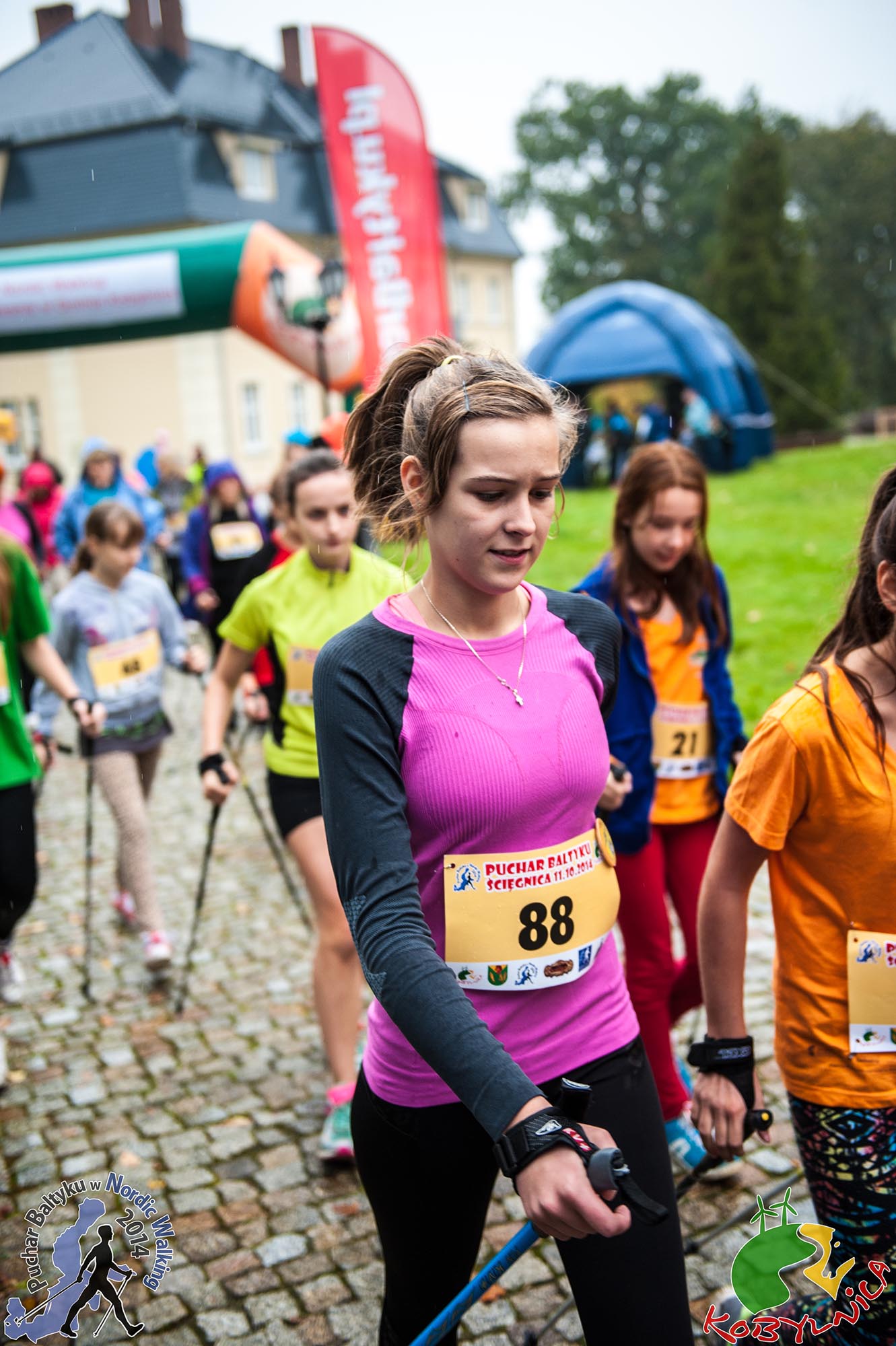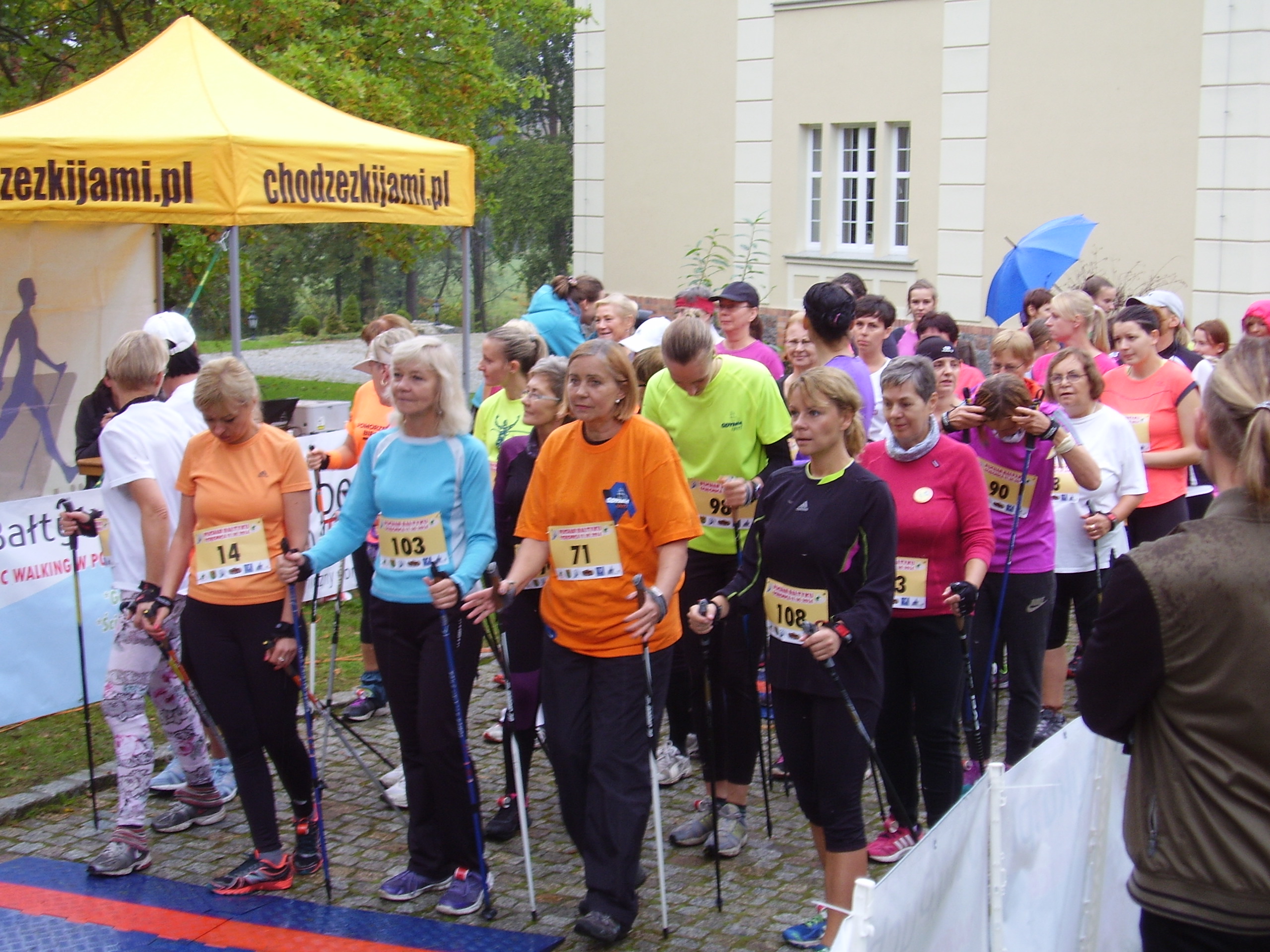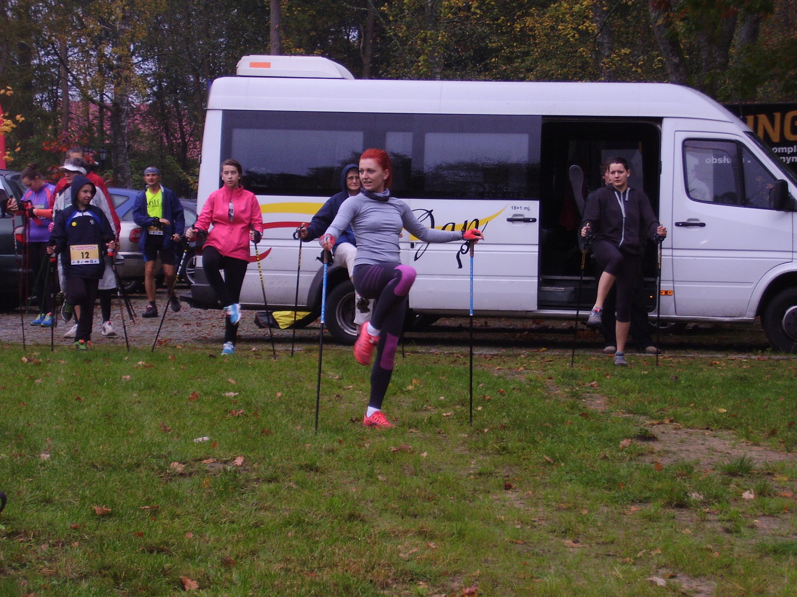 W sobotni poranek skład reprezentacji drużyny z Dziemian punktualnie zebrał się przy chacie kaszubskiej. Mimo niezachęcającej pogody, drużyna była jak zawsze uśmiechnięta i zdeterminowana do współzawodnictwa w wyścigach. Na miejscu w biurze zawodów, każdy z uczestników odebrał numery startowe oraz chipy. Dzięki tym małym gadżetom organizatorzy zawodów Nordic Walking są w stanie co do sekundy ocenić czas przebycia przez zawodnika trasy wyścigu. Tradycyjna wspólna rozgrzewka grupy z Dziemian przyciągnęła prawie wszystkich zawodników spotkania. Był to miły akcent wyróżnienia dla naszej Instruktorki Joanny Stopa.