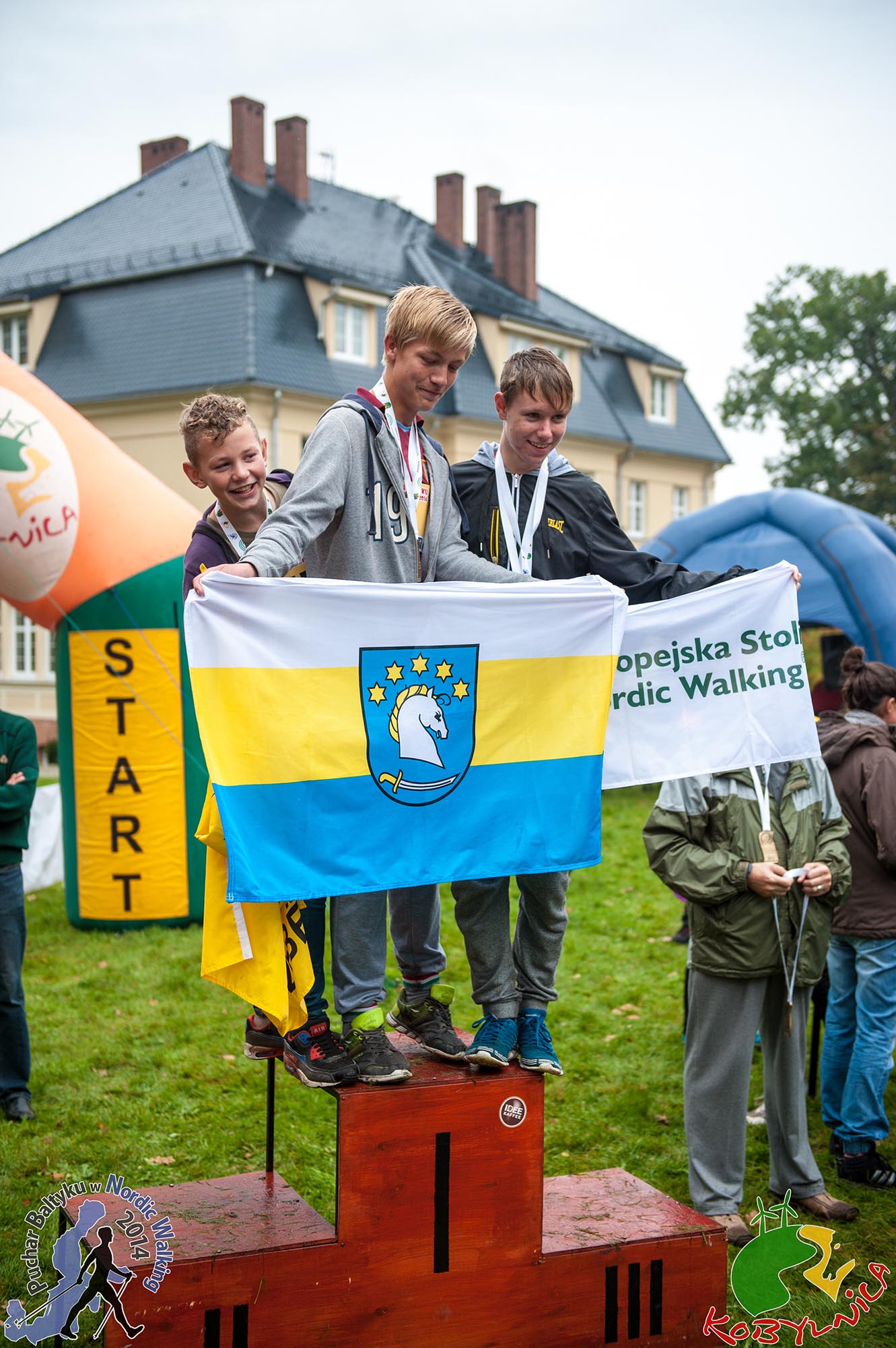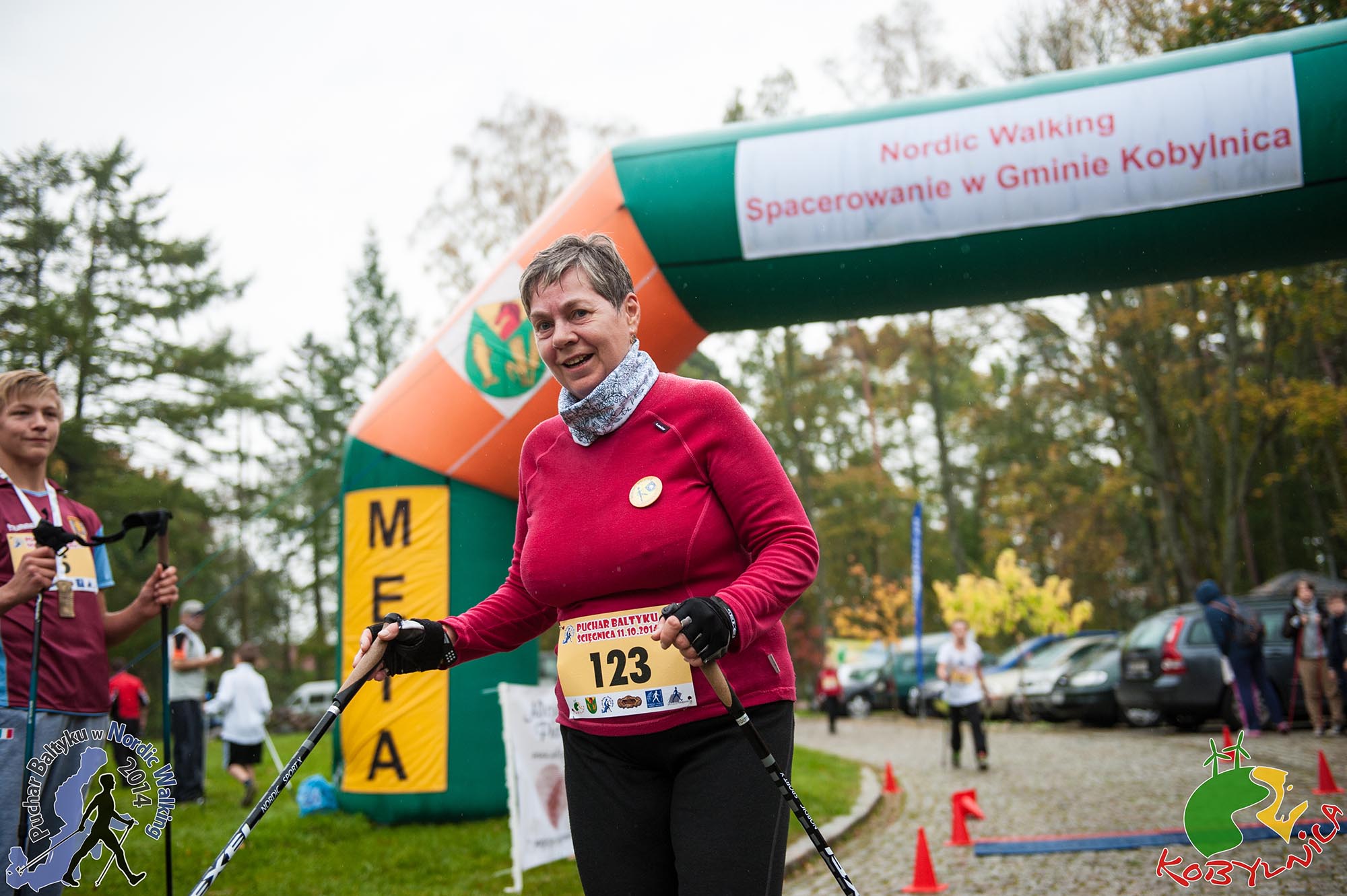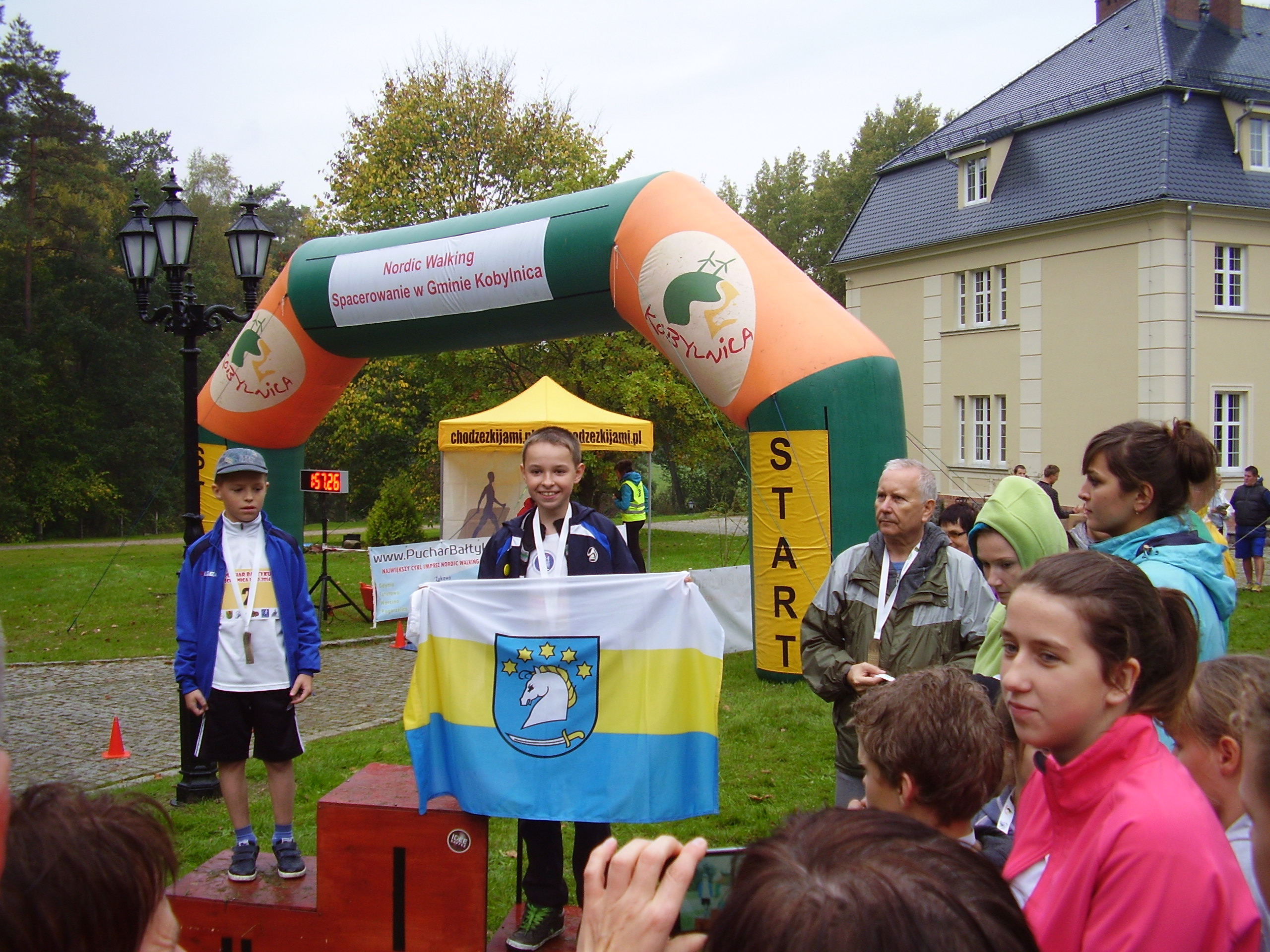 Centrum zawodów przedostatniego z etapów Pucharu Bałtyku znajdowało się przy Pałacu w Ścięgnicy. Właśnie z tego miejsca drużyna Nordic Walking Dziemiany wyruszyła kolejny raz po jak najlepsze wyniki. Trasy zmagań to szlaki Nordic Walking, które zostały na stałe oznakowane w gminie Kobylnica. Były to odcinki 5,5 km oraz 8,5 km. Na starcie stanęło niespełna 200 osób w tym 15 reprezentantów Nordic Walking Dziemiany. Byli to nie tylko stali zapaleńcy chodzenia o kijach, ale również nowi reprezentanci drużyny, którzy dopiero niedawno dołączyli do grupy Nordic Walking Dziemiany. Razem osiągnęli wspaniały wynik, gdyż dziesięcioro z całej drużyny stanęło na podium osiągając świetne wyniki czasowe. Jeszcze niedawno bardzo niewiele brakowało do lepszych miejsc na podium, jednak tym razem nasze gminne barwy powiewały najczęściej na najwyższym jego stopniu. Największe słowa uznania należą się naszej młodzieży, która wprost błyszczała podczas dekoracji. Oprócz naszej wschodzącej gwiazdy Marty Słomińskiej na zawodach w Ścięgnicy obecna była równie zdeterminowana Weronika Radomska. Wyzwanie podjęli również debiutanci w osobach Tomka Knitter i Eryka Lemke oraz najmłodszy w drużynie Piotr Bruski. Cieszymy się z przypływu tej młodej krwi w szeregi Nordic Walking Dziemiany.