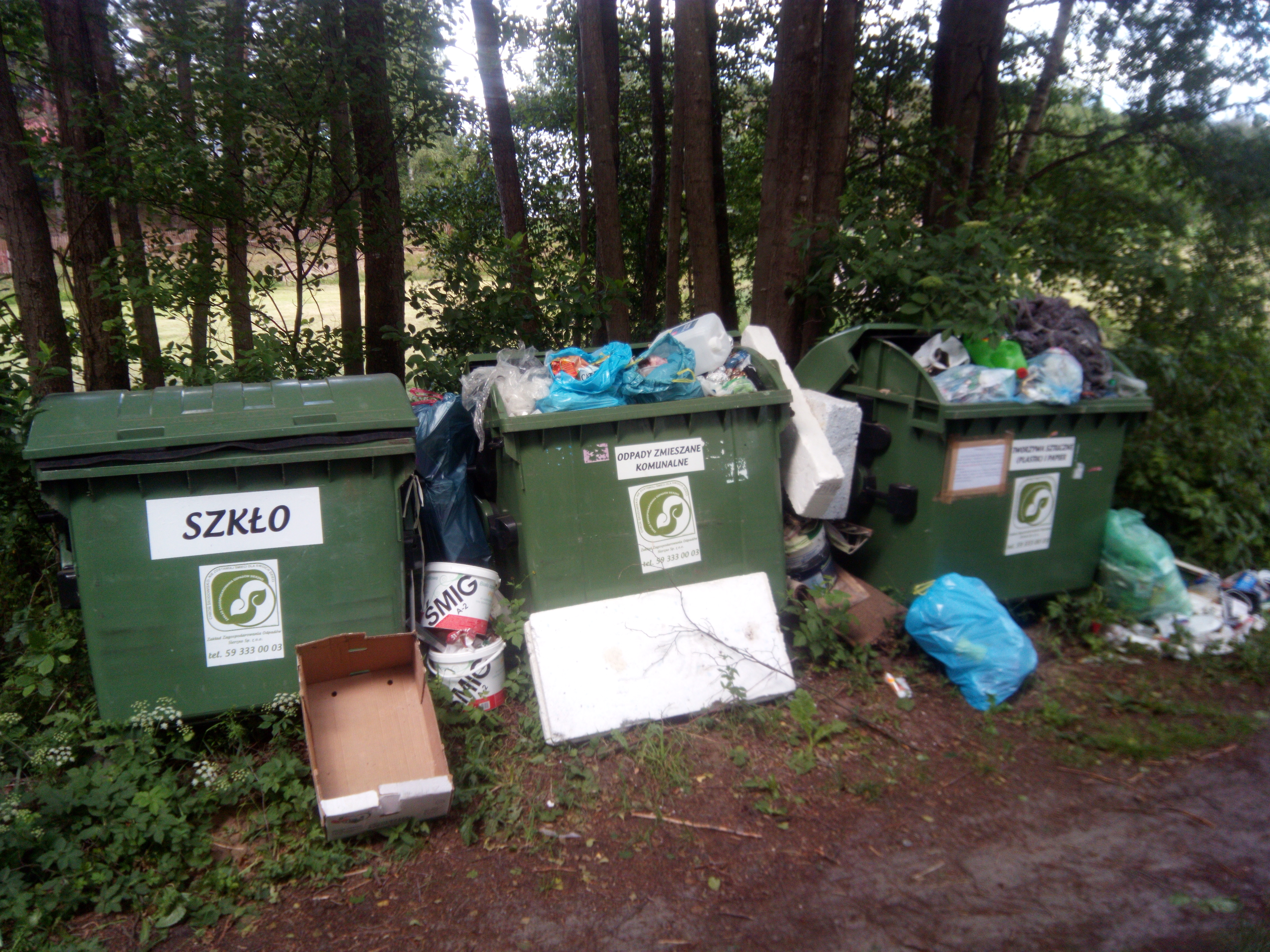 Dzisiaj w tych miejscach znajdujemy odpady, które nie powinny się tam znajdować, np. opony, tapczany, elektrośmieci, gruz budowlany i inne. Powoduje to, że w krótkim czasie kontenery są przepełnione i powstaje bałagan, który przeszkadza innym wypoczywającym.