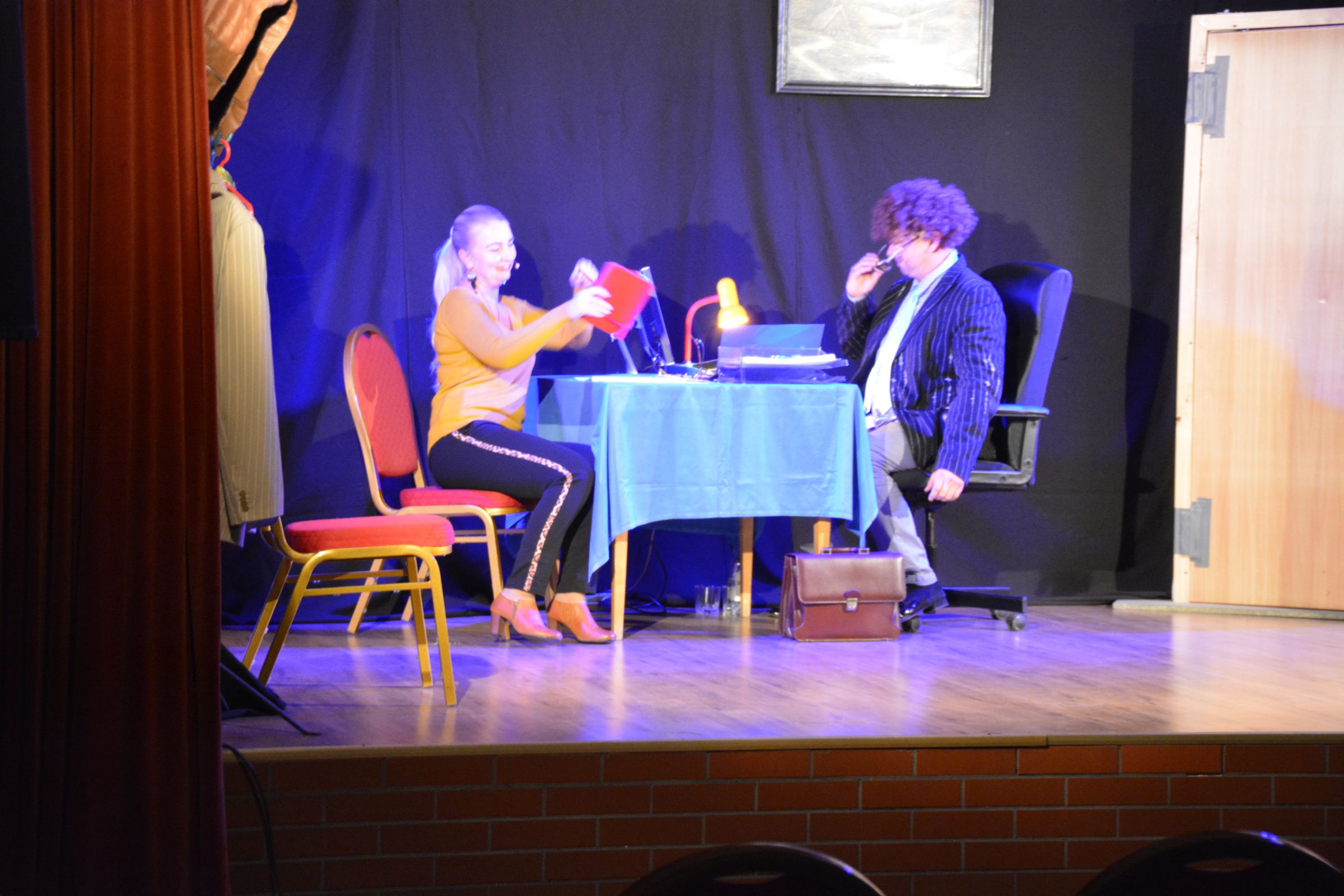 W piątek 18 października 2019 mieszkańcy naszej gminy mieli okazję uczestniczyć w spektaklu teatralnym. Do Ośrodka Kultury przyjechała grupa “Tak Pan Mówi” i zaprezentowała sztukę “Biuro Matrymonialne” w reżyserii Andrzeja Dembończyka. Piątkowy wieczór upłynął na śledzeniu perypetii Jana – pracownikami biura matrymonialnego, który z wyboru jest kawalerem lecz postanawia znaleźć wybrankę swojemu przyjacielowi. Zabawna historia umiliła wieczór mieszkańcom, którzy z różnych przyczyn nie zawsze mogą wybrać się do teatru.