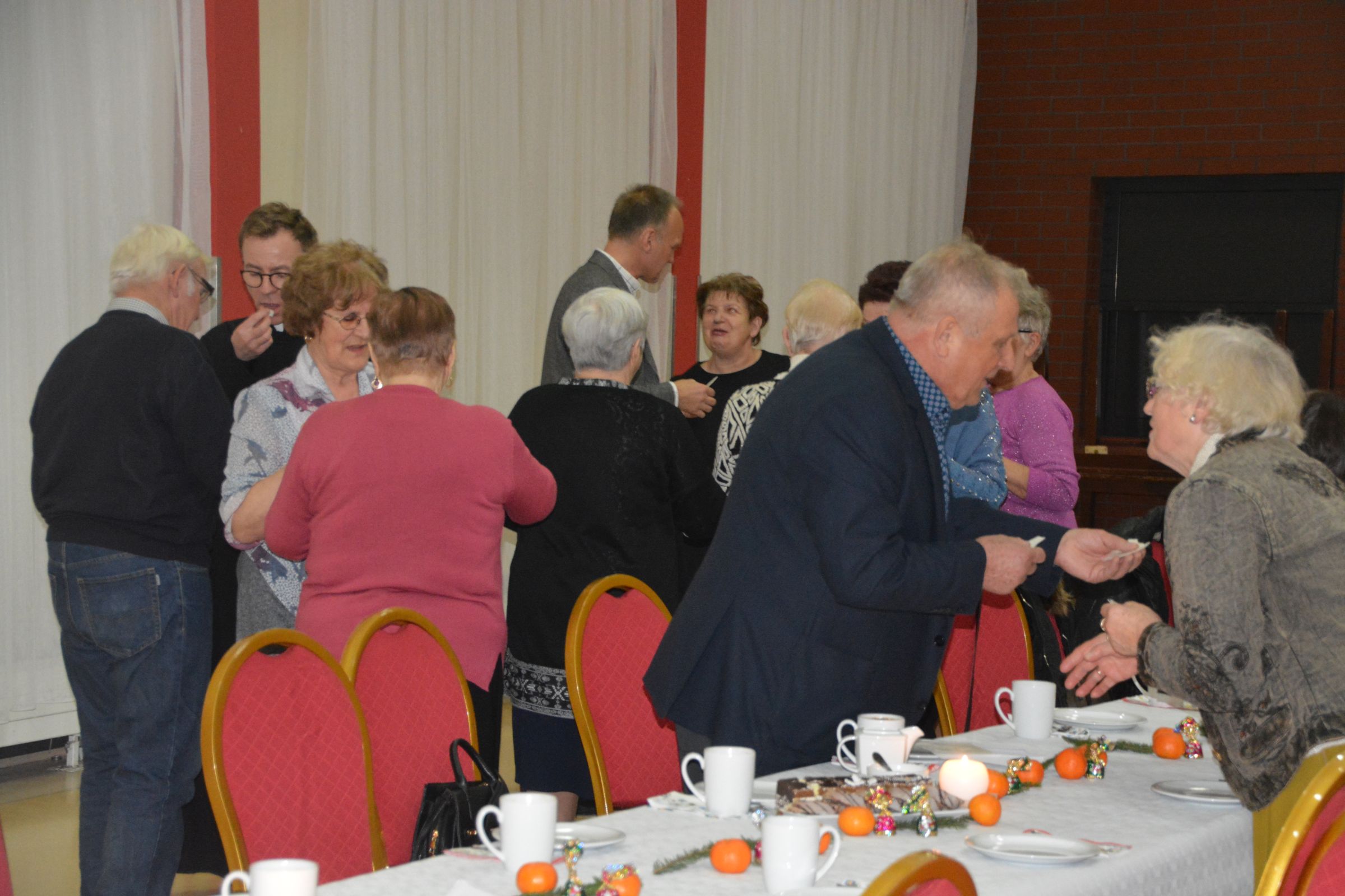 Dnia 17 grudnia 2019 r. w sali Ośrodka Kultury w Dziemianach odbyło się przedświąteczne spotkanie seniorów. Zebranych powitał Dyrektor Ośrodka Kultury Dariusz Turzyński. Następnie Wójt Gminy Leszek Pobłocki oraz radny Andrzej Hoppe przekazali seniorom świąteczne życzenia. Obecny na spotkaniu ks. proboszcz Andrzej Kubisz pobłogosławił opłatek, który następnie został łamany przez seniorów wśród płynących życzeń. O oprawę muzyczną spotkania zadbały dzieci z grupy wokalnej Pani Agnieszki Jenty działającej przy Ośrodku Kultury.