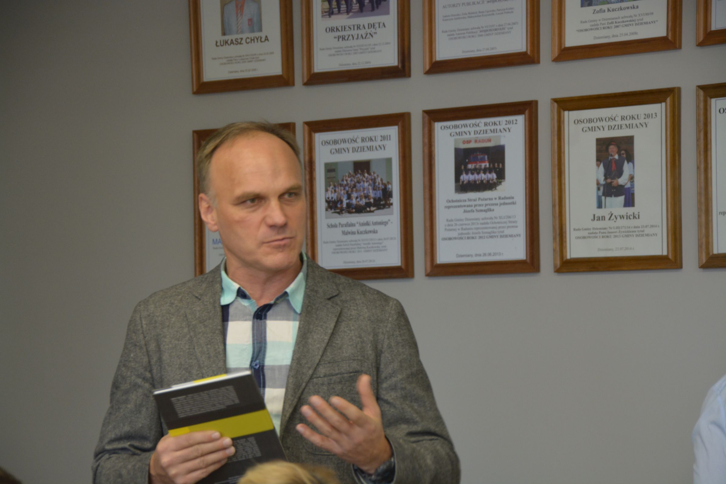 W dniu 28.11.2018 r.br w sali posiedzeń Urzędu Gminy Dziemiany odbyło się spotkanie z dr Moniką Tomkiewicz, prof. Andrzejem Gąsiorowskim i prof. Bogdanem Chrzanowskim – autorami książki “Konspiracja w Gminie Dziemiany w latach 1939 – 1945”. Zebrani na prezentacji mogli zaznajomić się z tematyką publikacji. Autorzy przybliżyli proces pozyskiwania informacji i odpowiadali na pytania dotyczące nie łatwej historii naszego regionu.