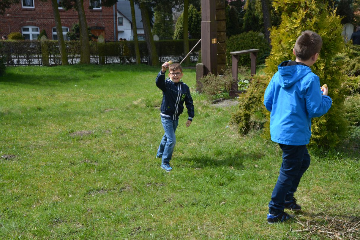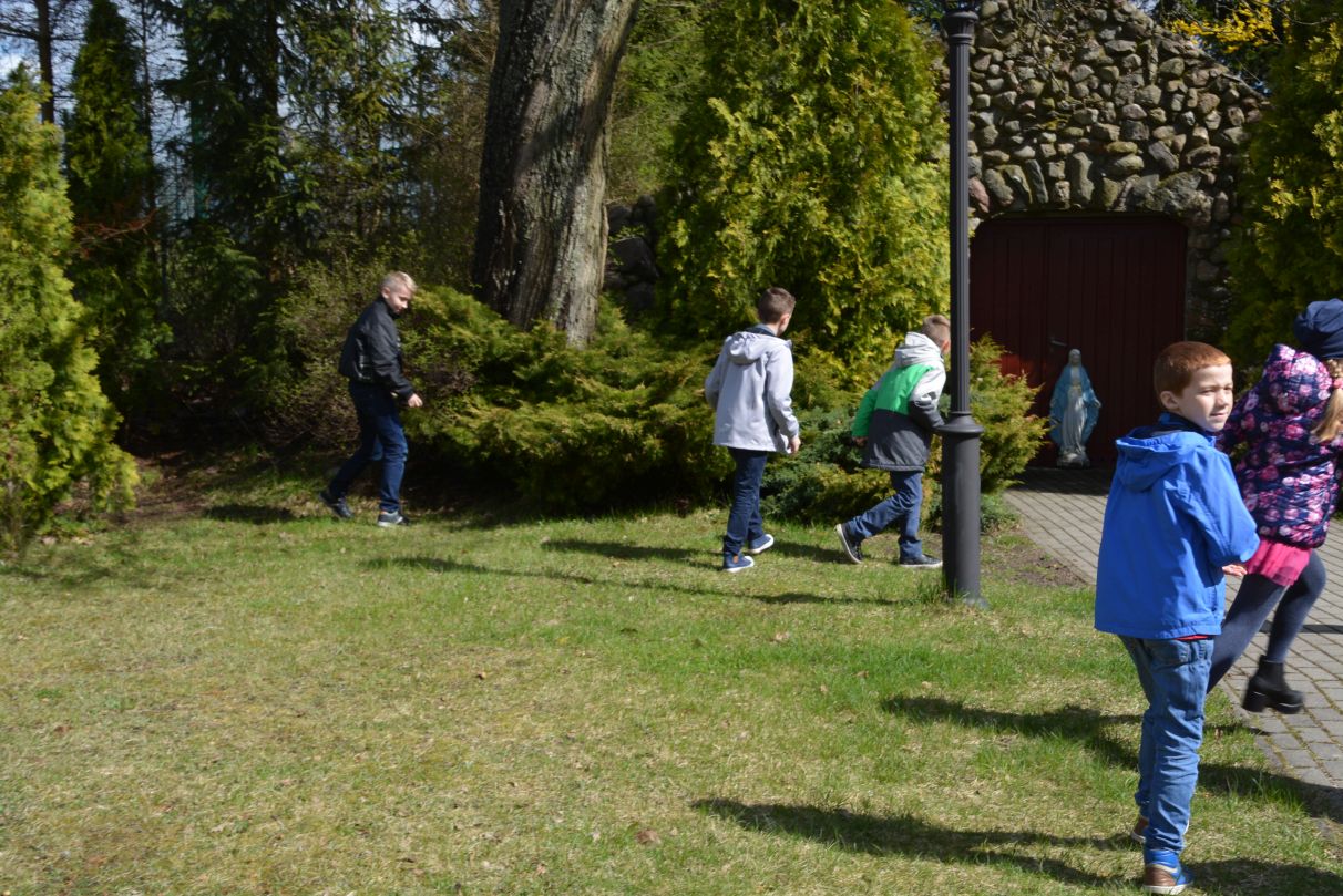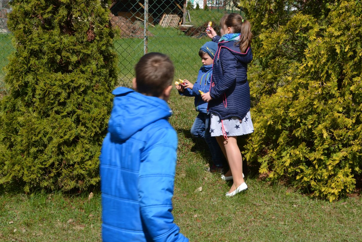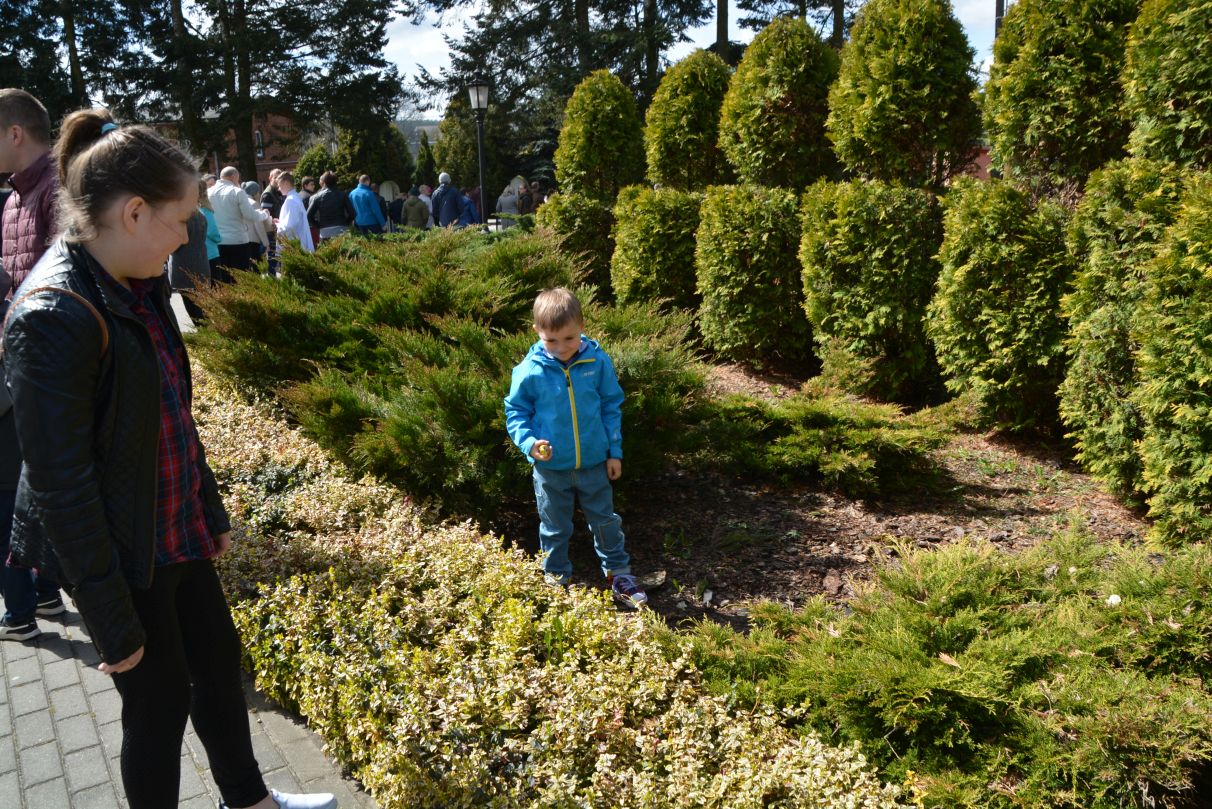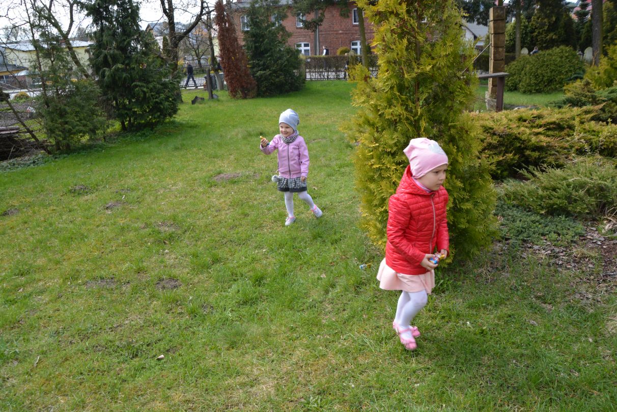 W Wielkanocną Niedzielę na dzieci uczestniczące w mszy świętej o godz. 11.00 czekała wyjątkowa niespodzianka. Dookoła kościoła zaroiło się od czekoladowych zajączków. Po krótkim zaproszeniu dzieci ruszyły do radosnego poszukiwania słodkich upominków.