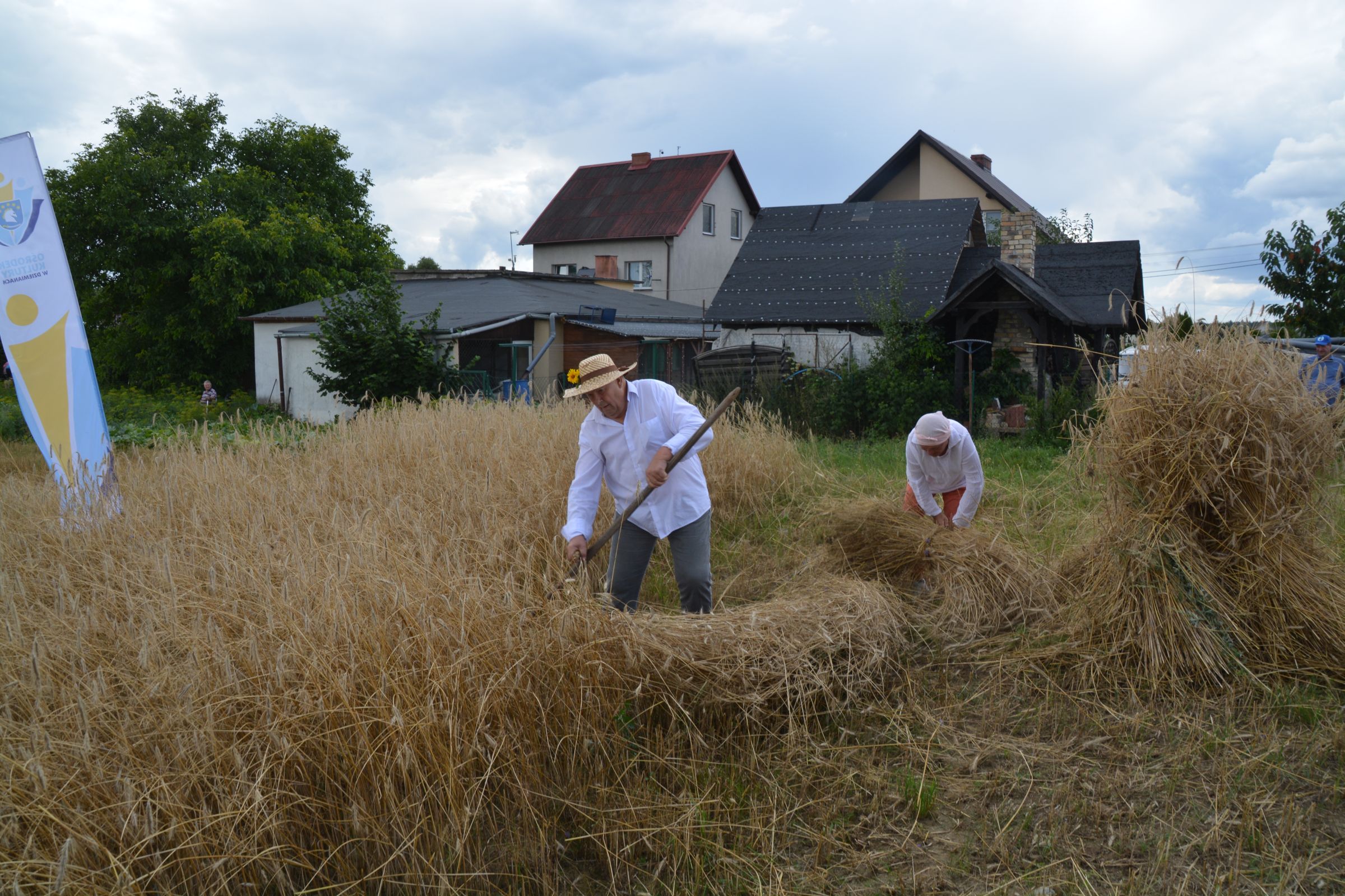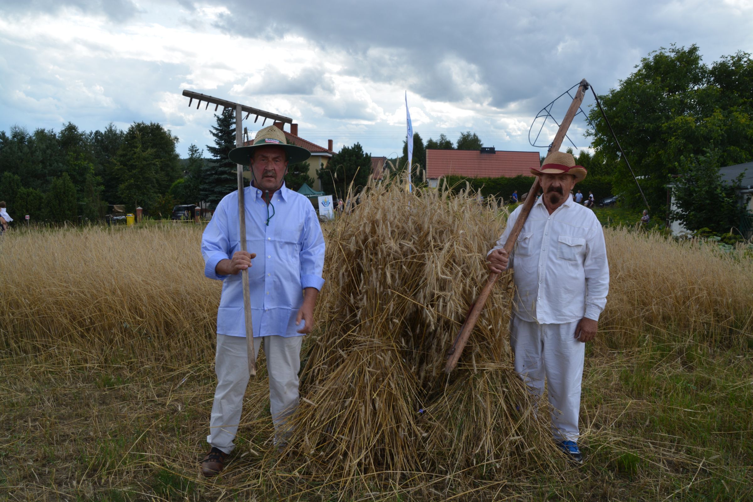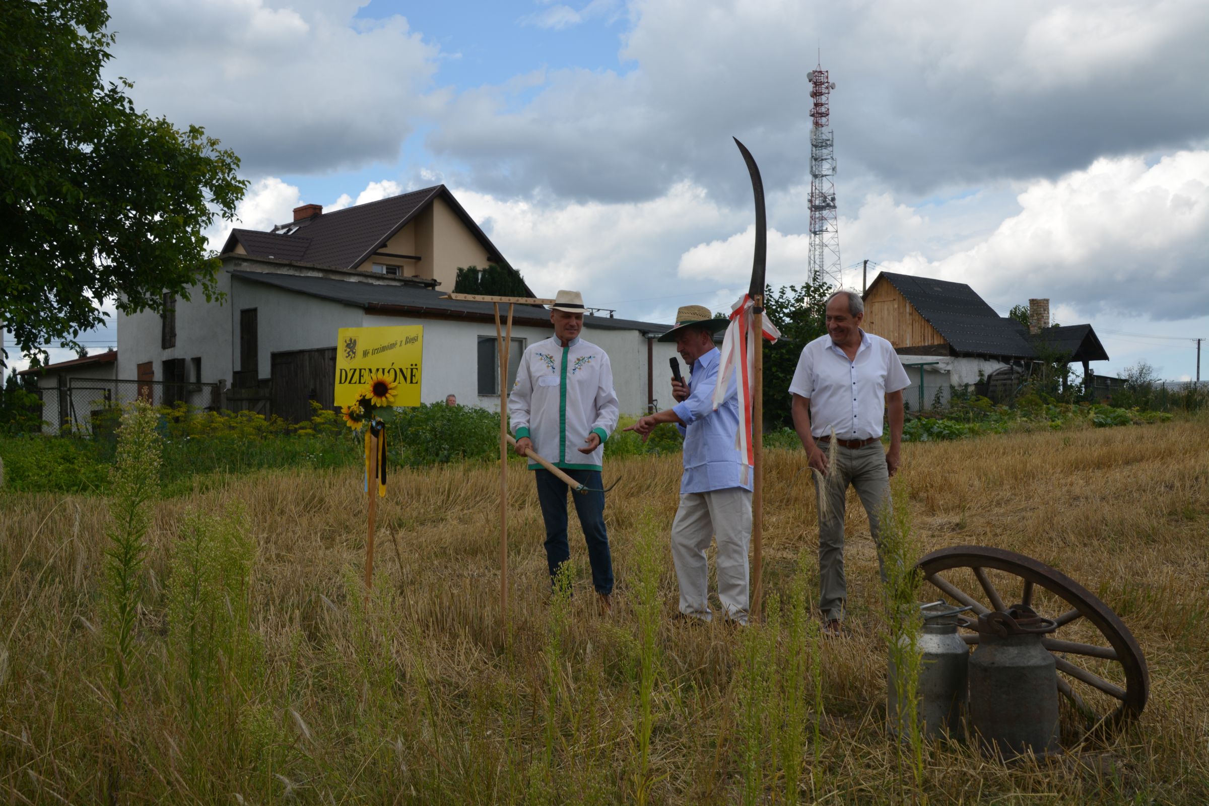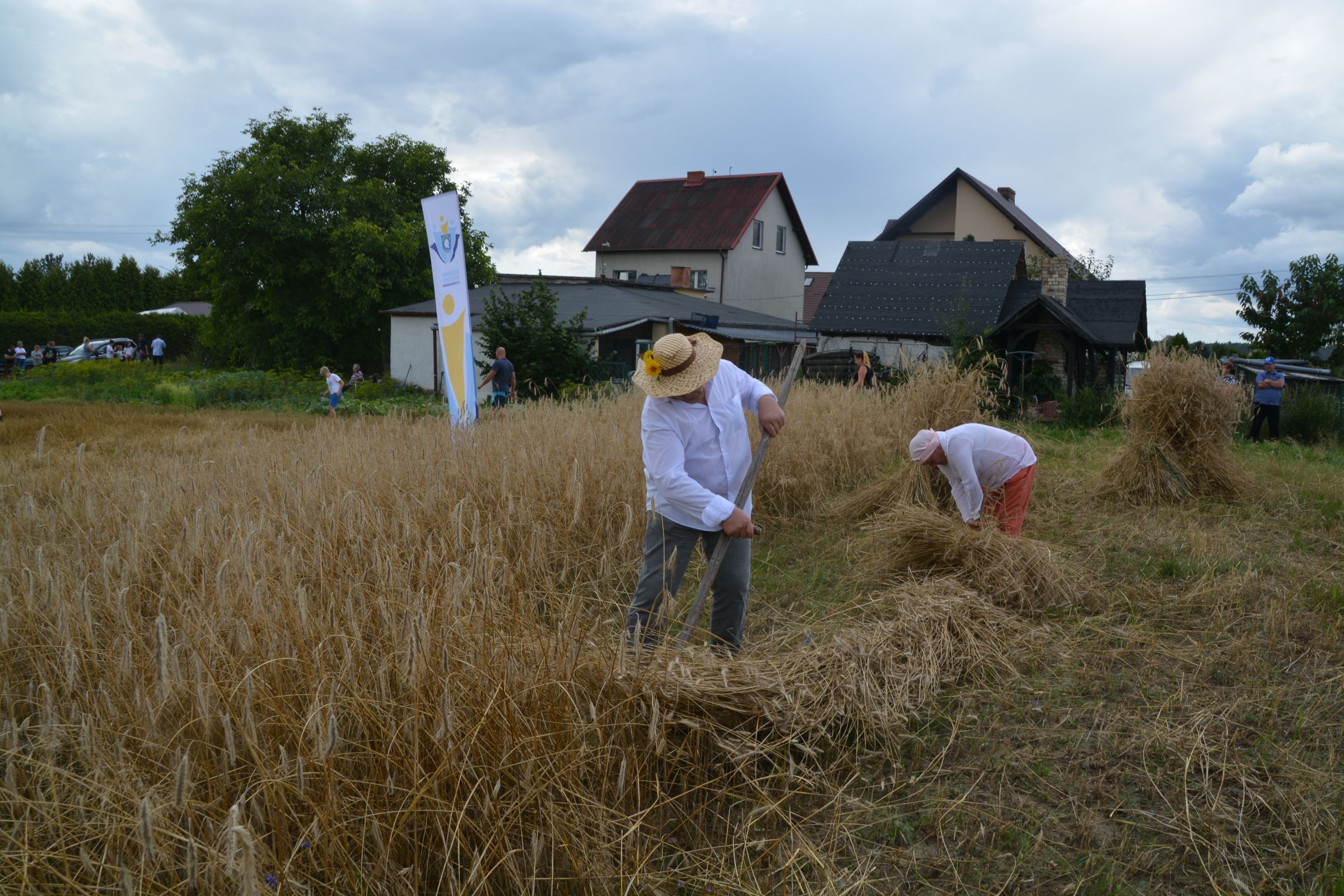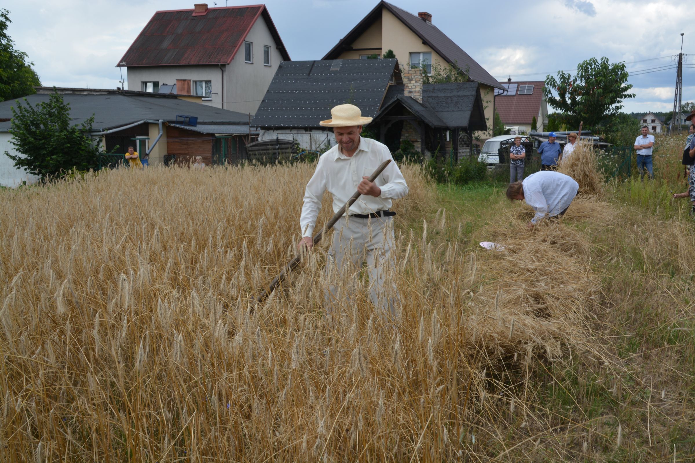 Ocalenie tradycji – to główny cel Mistrzostw Polski w Koszeniu Zboża Metodą Tradycyjną. W niedzielę 04. sierpnia br., te widowiskowe zawody odbyły się w naszej gminie już po raz piąty. Na początku imprezy Pan Dyrektor Ośrodka Kultury Dariusz Turzyński oraz Pan Wójt Leszek Pobłocki zapoznali uczestników z zasadami zawodów oraz krótko przedstawili kaszubską tradycję tych zmagań. Następnie 4 pary żniwiarzy stanęły w szranki. Ich zadaniem było wykoszenie wydzielonego pasa zboża, a następnie powiązanie go w snopki i ustawienie w sztygę. Najszybciej z tym zadaniem uporała się para: Stanisław Kuczkowski oraz Józef Czapiewski i to do nich powędrowała “Złota Kosa Ośrodka Kultury” oraz nagrody rzeczowe ufundowane przez stację paliw „Moya” pana Stanisława Repińskiego. Następni byli: