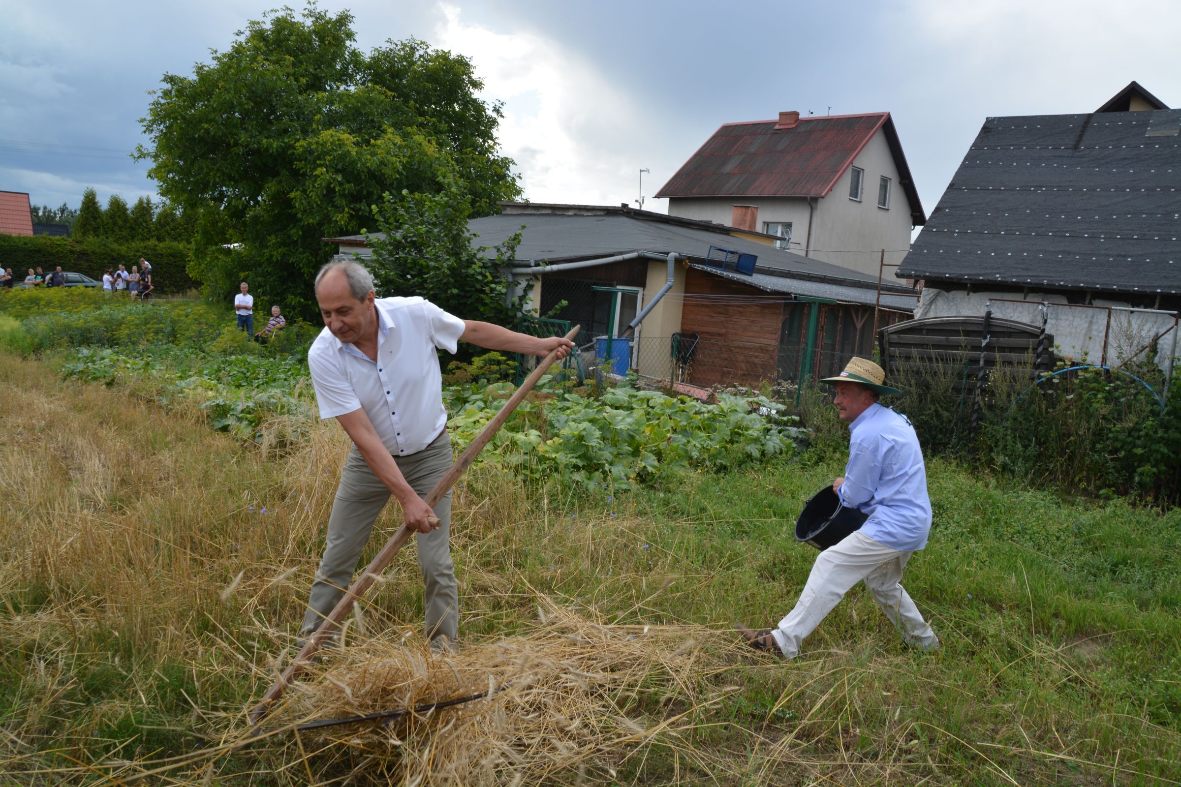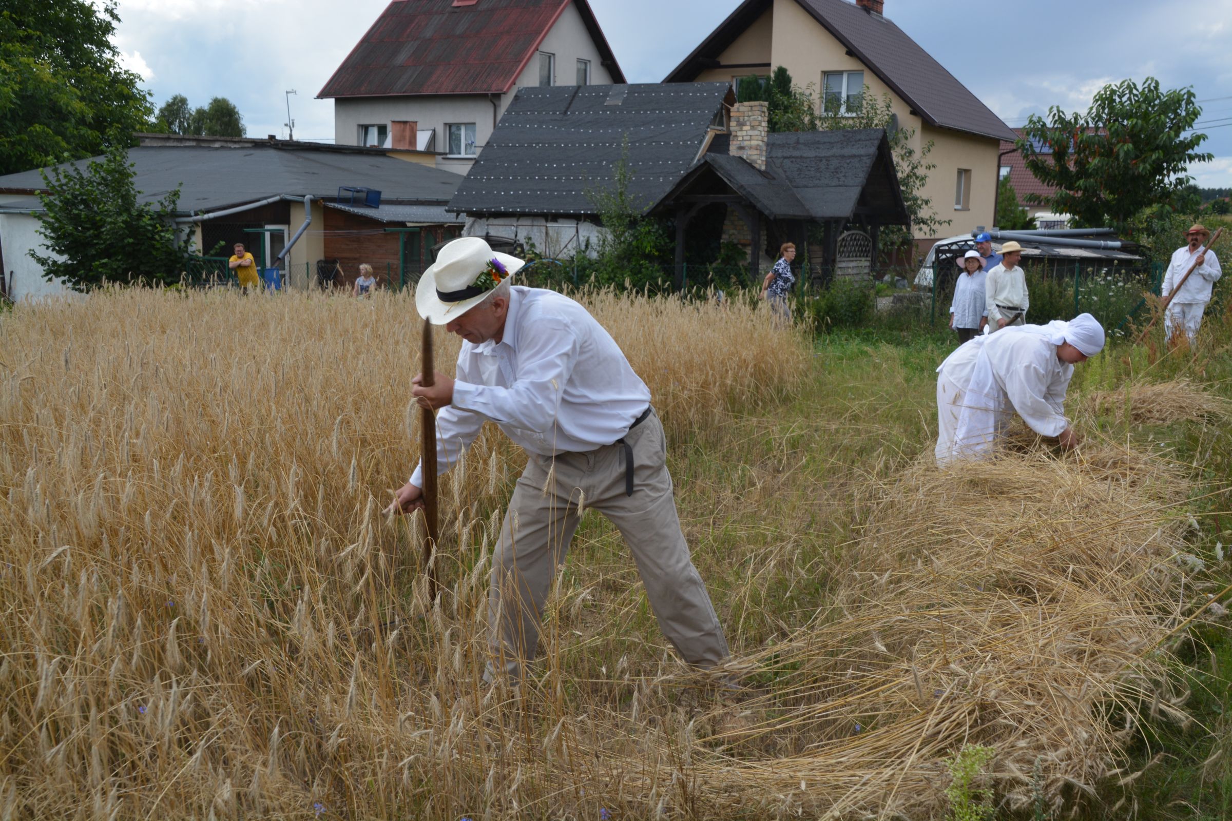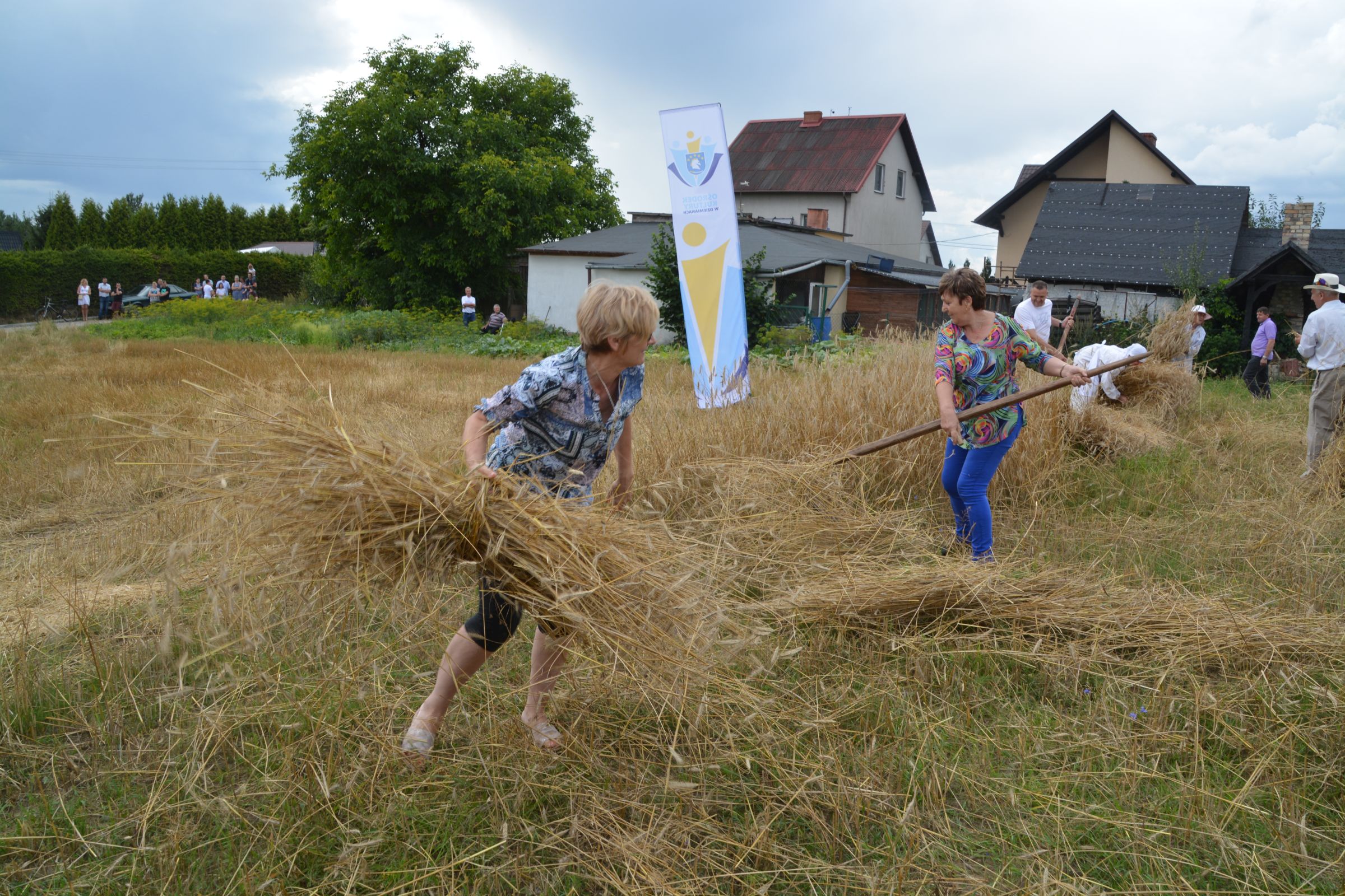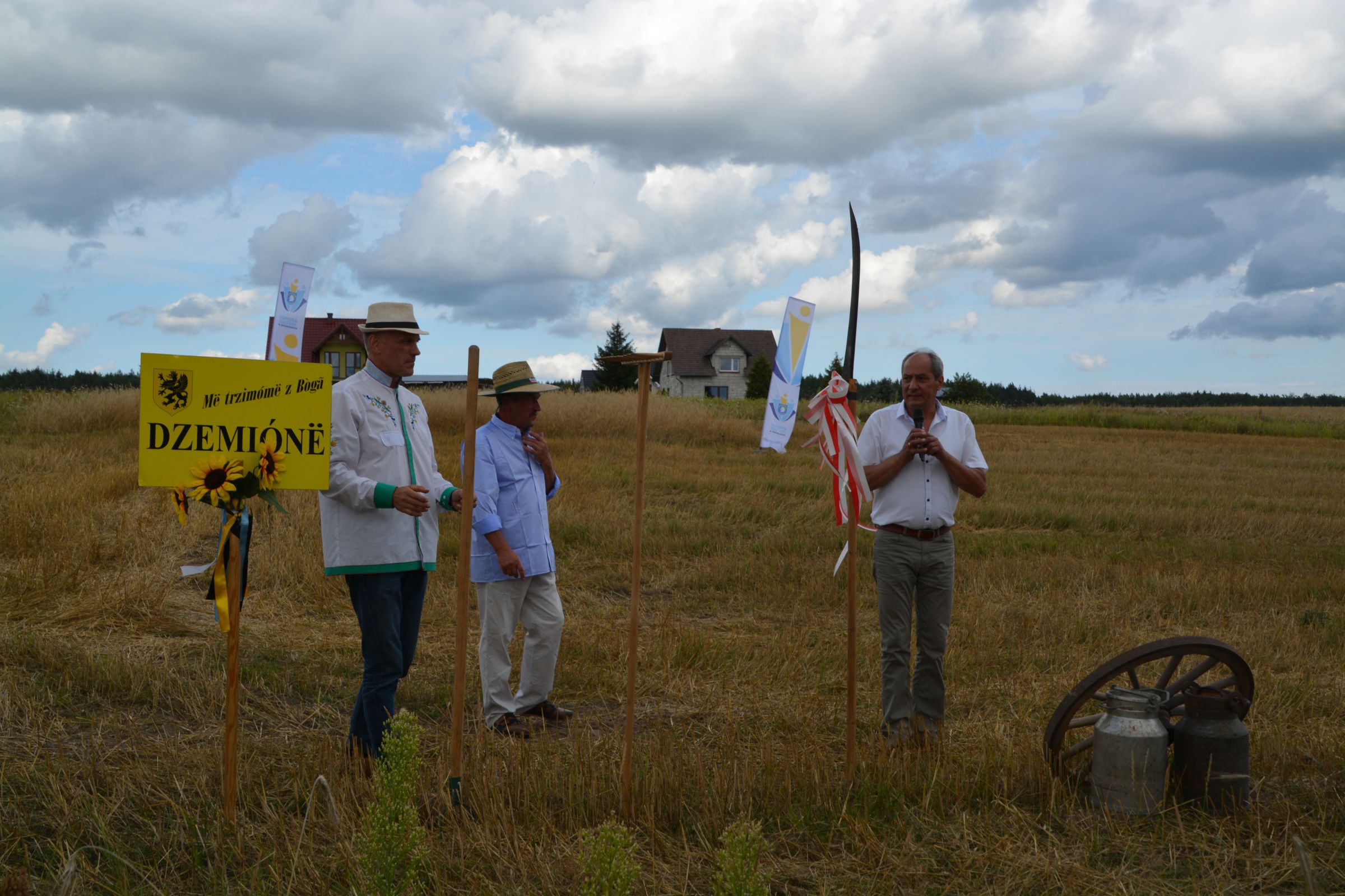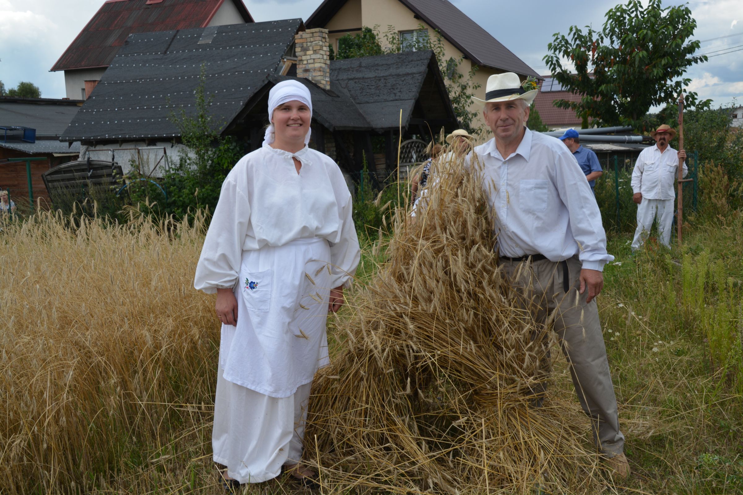 Ocalenie tradycji – to główny cel Mistrzostw Polski w Koszeniu Zboża Metodą Tradycyjną. W niedzielę 04. sierpnia br., te widowiskowe zawody odbyły się w naszej gminie już po raz piąty. Na początku imprezy Pan Dyrektor Ośrodka Kultury Dariusz Turzyński oraz Pan Wójt Leszek Pobłocki zapoznali uczestników z zasadami zawodów oraz krótko przedstawili kaszubską tradycję tych zmagań. Następnie 4 pary żniwiarzy stanęły w szranki. Ich zadaniem było wykoszenie wydzielonego pasa zboża, a następnie powiązanie go w snopki i ustawienie w sztygę. Najszybciej z tym zadaniem uporała się para: Stanisław Kuczkowski oraz Józef Czapiewski i to do nich powędrowała “Złota Kosa Ośrodka Kultury” oraz nagrody rzeczowe ufundowane przez stację paliw „Moya” pana Stanisława Repińskiego. Następni byli: