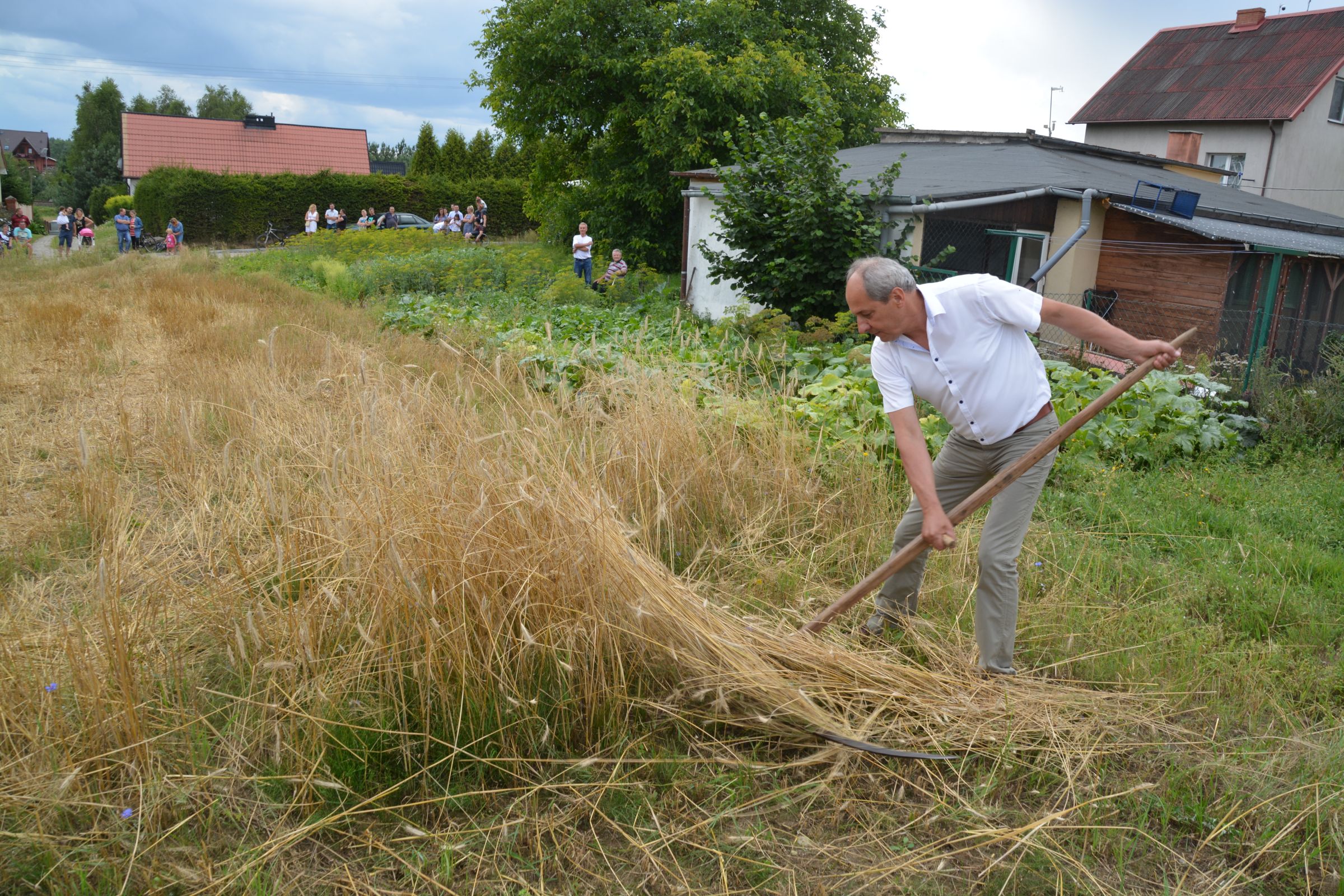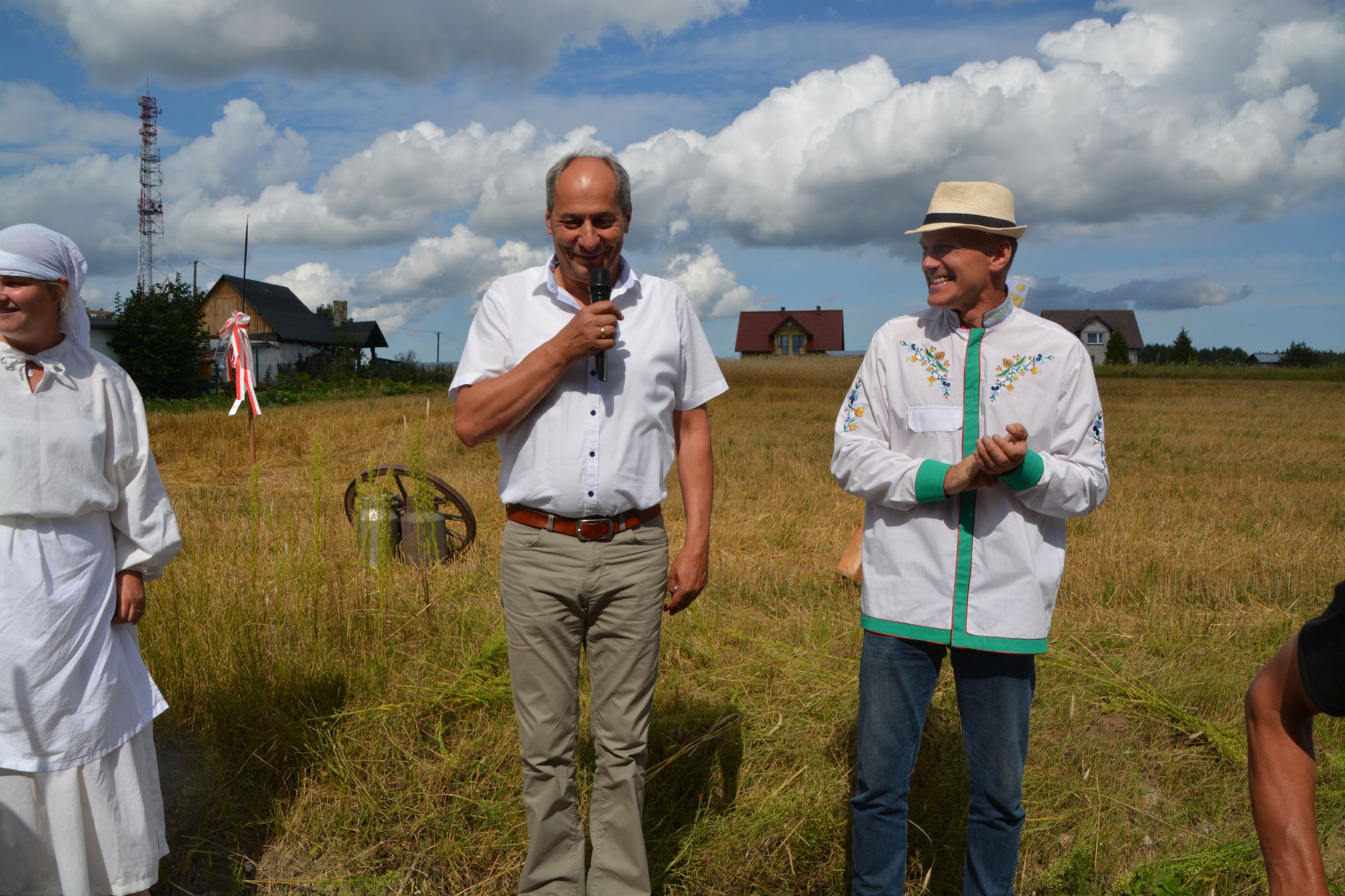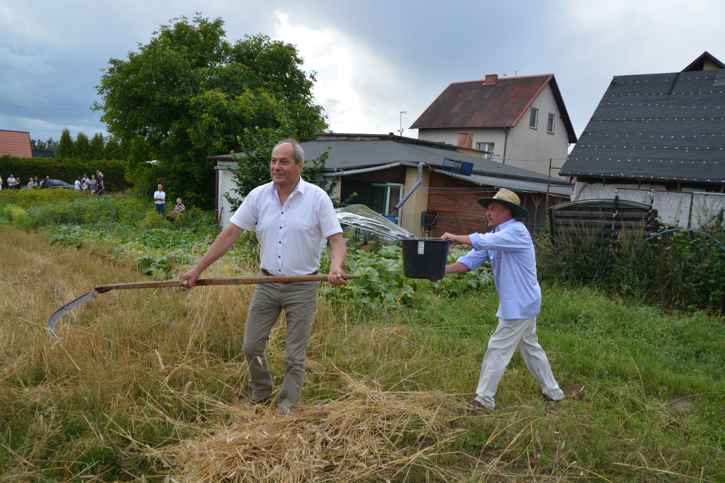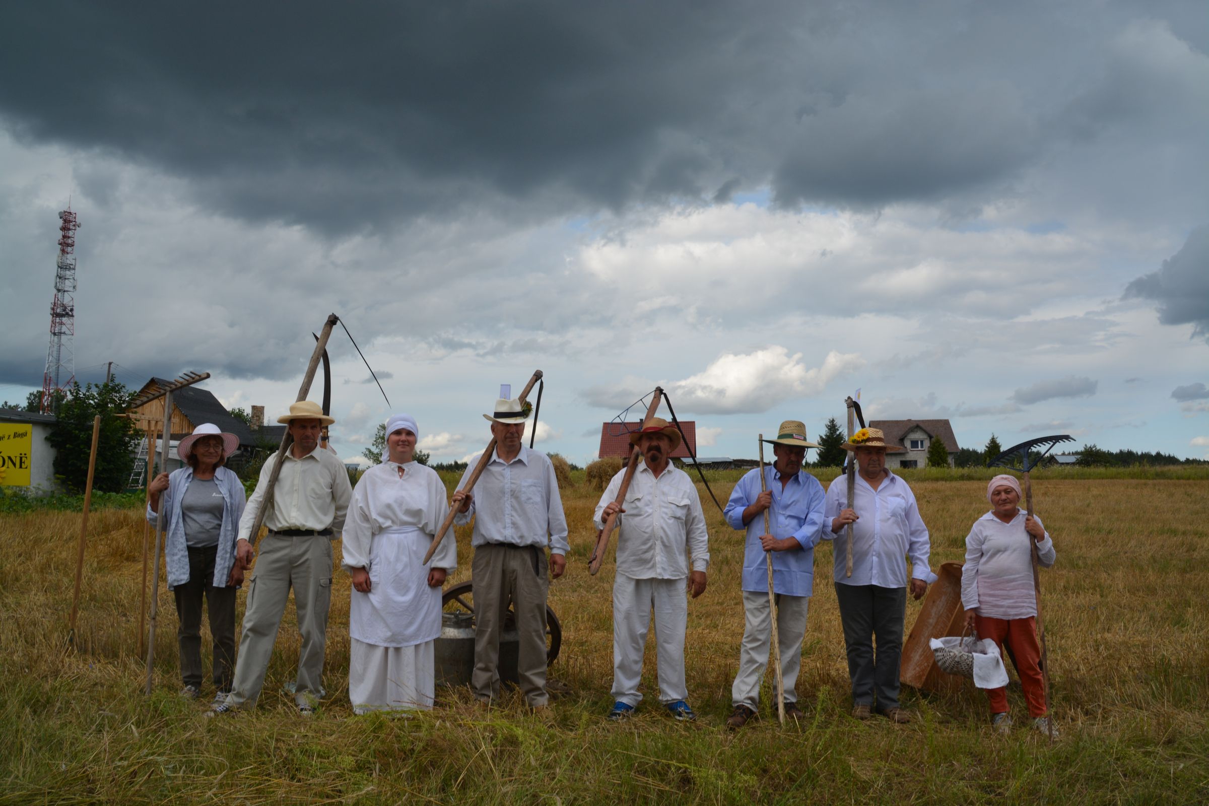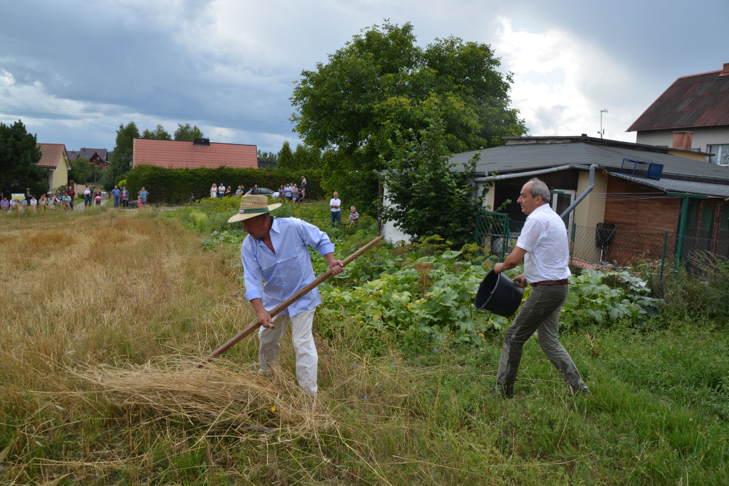 Ocalenie tradycji – to główny cel Mistrzostw Polski w Koszeniu Zboża Metodą Tradycyjną. W niedzielę 04. sierpnia br., te widowiskowe zawody odbyły się w naszej gminie już po raz piąty. Na początku imprezy Pan Dyrektor Ośrodka Kultury Dariusz Turzyński oraz Pan Wójt Leszek Pobłocki zapoznali uczestników z zasadami zawodów oraz krótko przedstawili kaszubską tradycję tych zmagań. Następnie 4 pary żniwiarzy stanęły w szranki. Ich zadaniem było wykoszenie wydzielonego pasa zboża, a następnie powiązanie go w snopki i ustawienie w sztygę. Najszybciej z tym zadaniem uporała się para: Stanisław Kuczkowski oraz Józef Czapiewski i to do nich powędrowała “Złota Kosa Ośrodka Kultury” oraz nagrody rzeczowe ufundowane przez stację paliw „Moya” pana Stanisława Repińskiego. Następni byli: