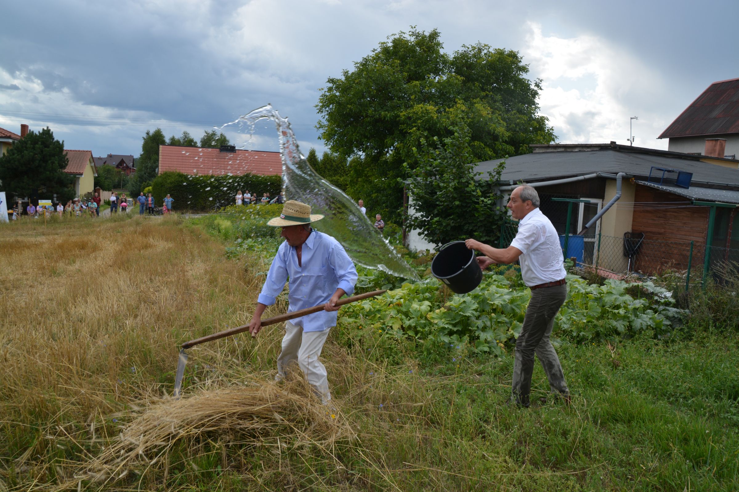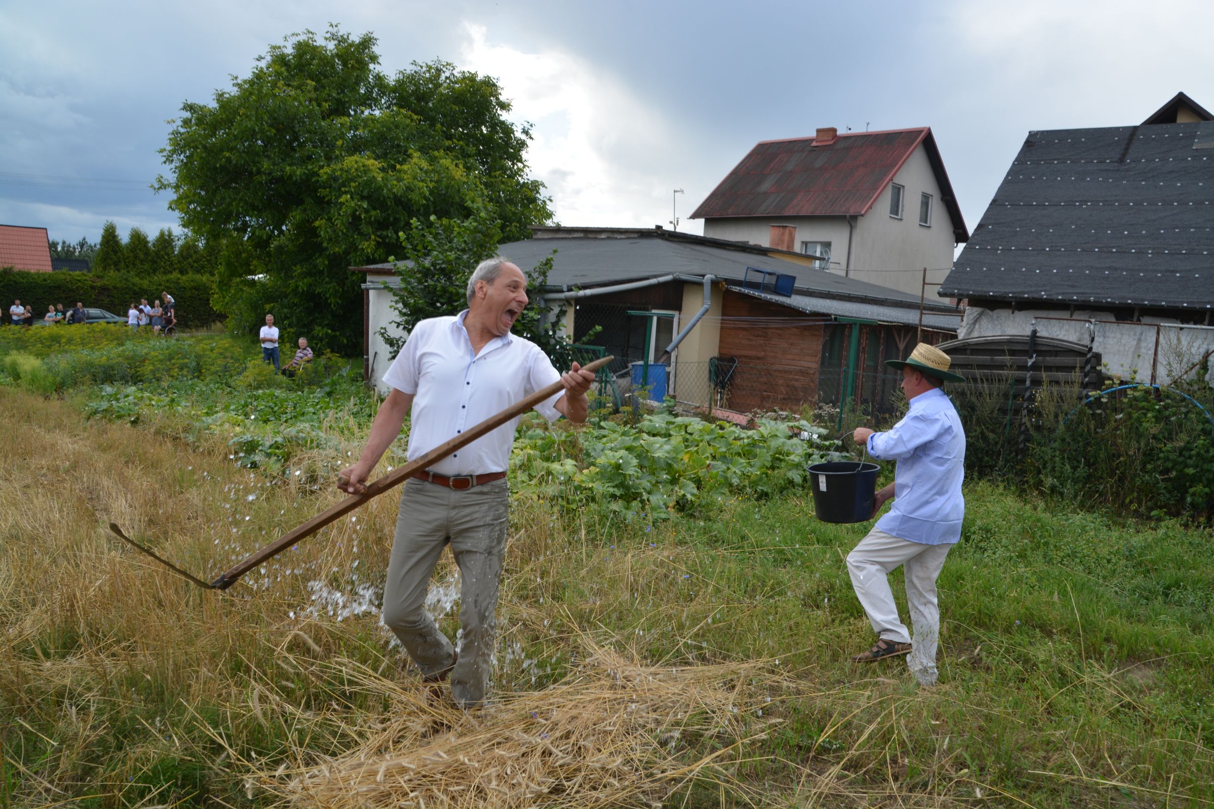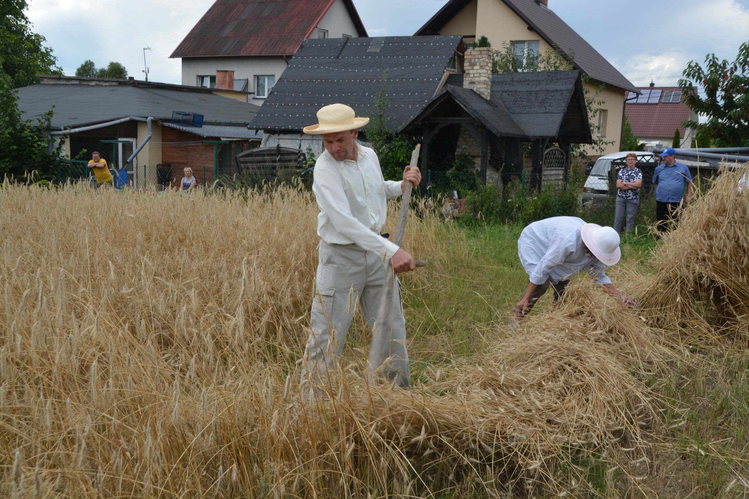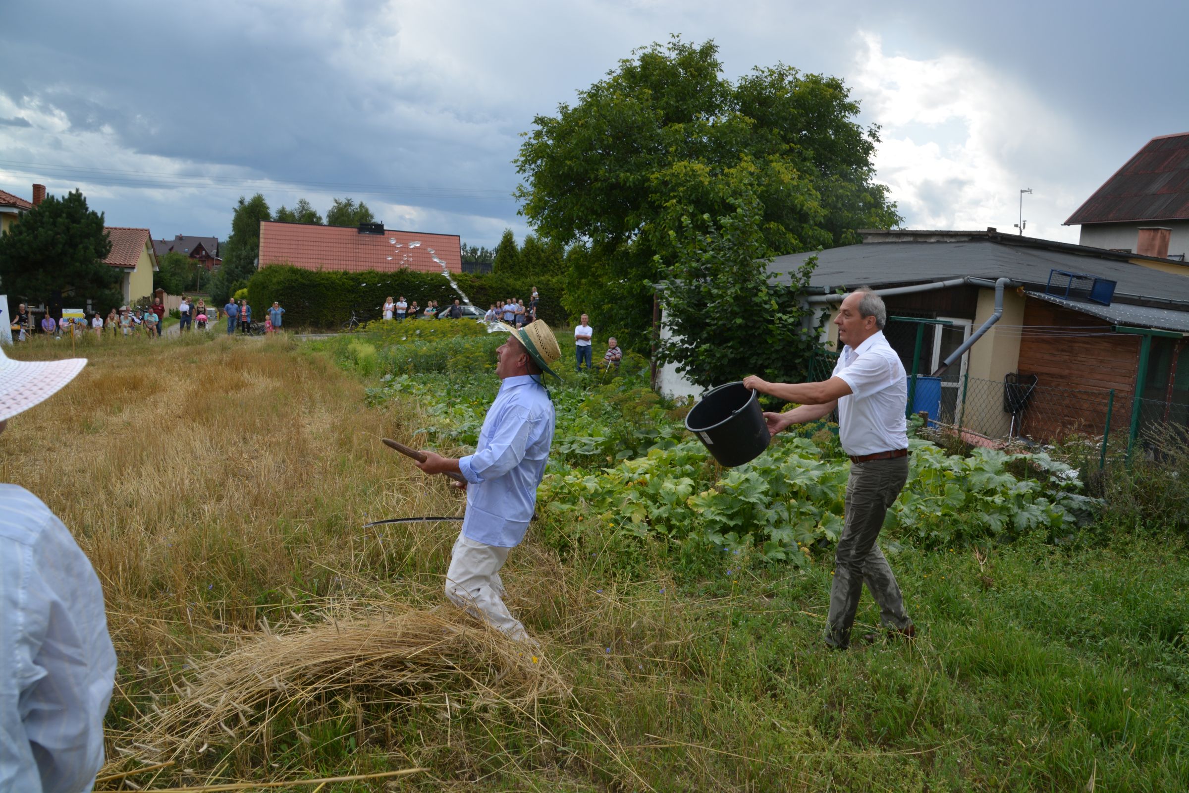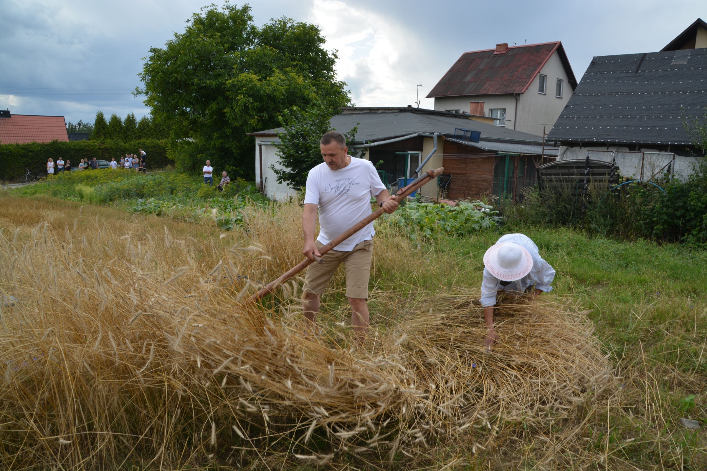 Ocalenie tradycji – to główny cel Mistrzostw Polski w Koszeniu Zboża Metodą Tradycyjną. W niedzielę 04. sierpnia br., te widowiskowe zawody odbyły się w naszej gminie już po raz piąty. Na początku imprezy Pan Dyrektor Ośrodka Kultury Dariusz Turzyński oraz Pan Wójt Leszek Pobłocki zapoznali uczestników z zasadami zawodów oraz krótko przedstawili kaszubską tradycję tych zmagań. Następnie 4 pary żniwiarzy stanęły w szranki. Ich zadaniem było wykoszenie wydzielonego pasa zboża, a następnie powiązanie go w snopki i ustawienie w sztygę. Najszybciej z tym zadaniem uporała się para: Stanisław Kuczkowski oraz Józef Czapiewski i to do nich powędrowała “Złota Kosa Ośrodka Kultury” oraz nagrody rzeczowe ufundowane przez stację paliw „Moya” pana Stanisława Repińskiego. Następni byli:
