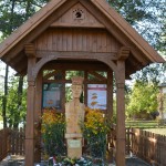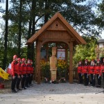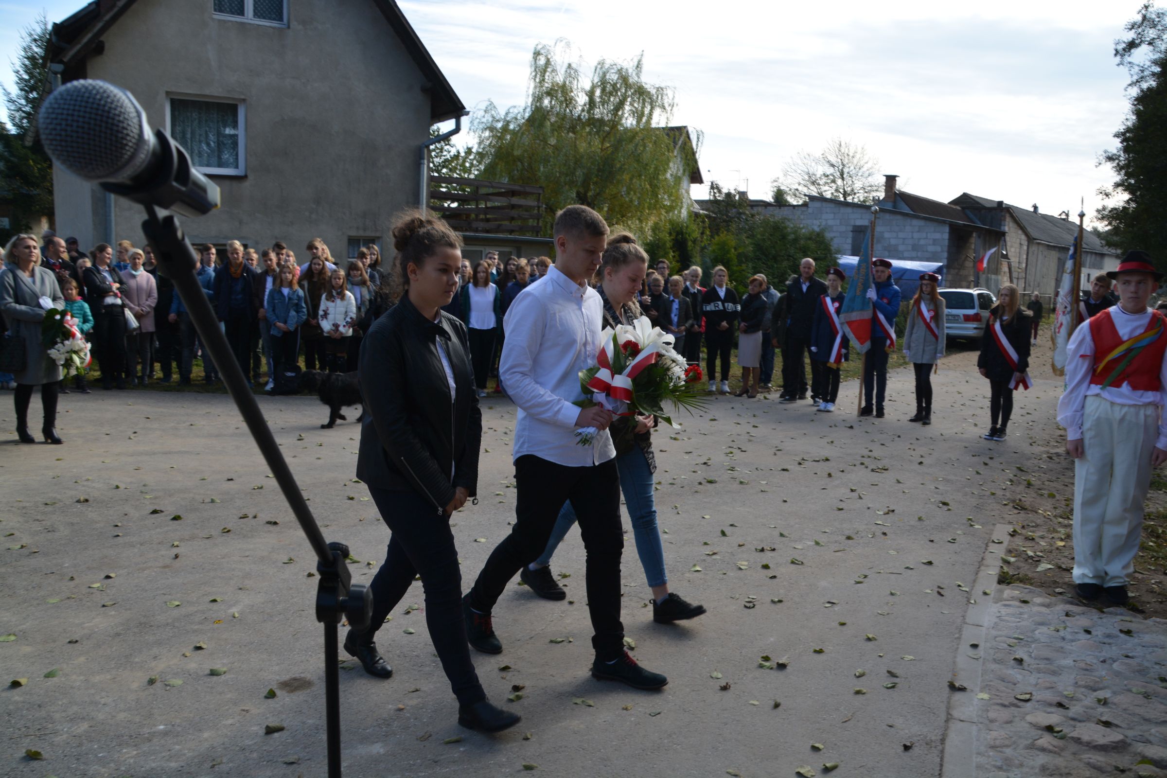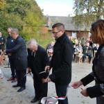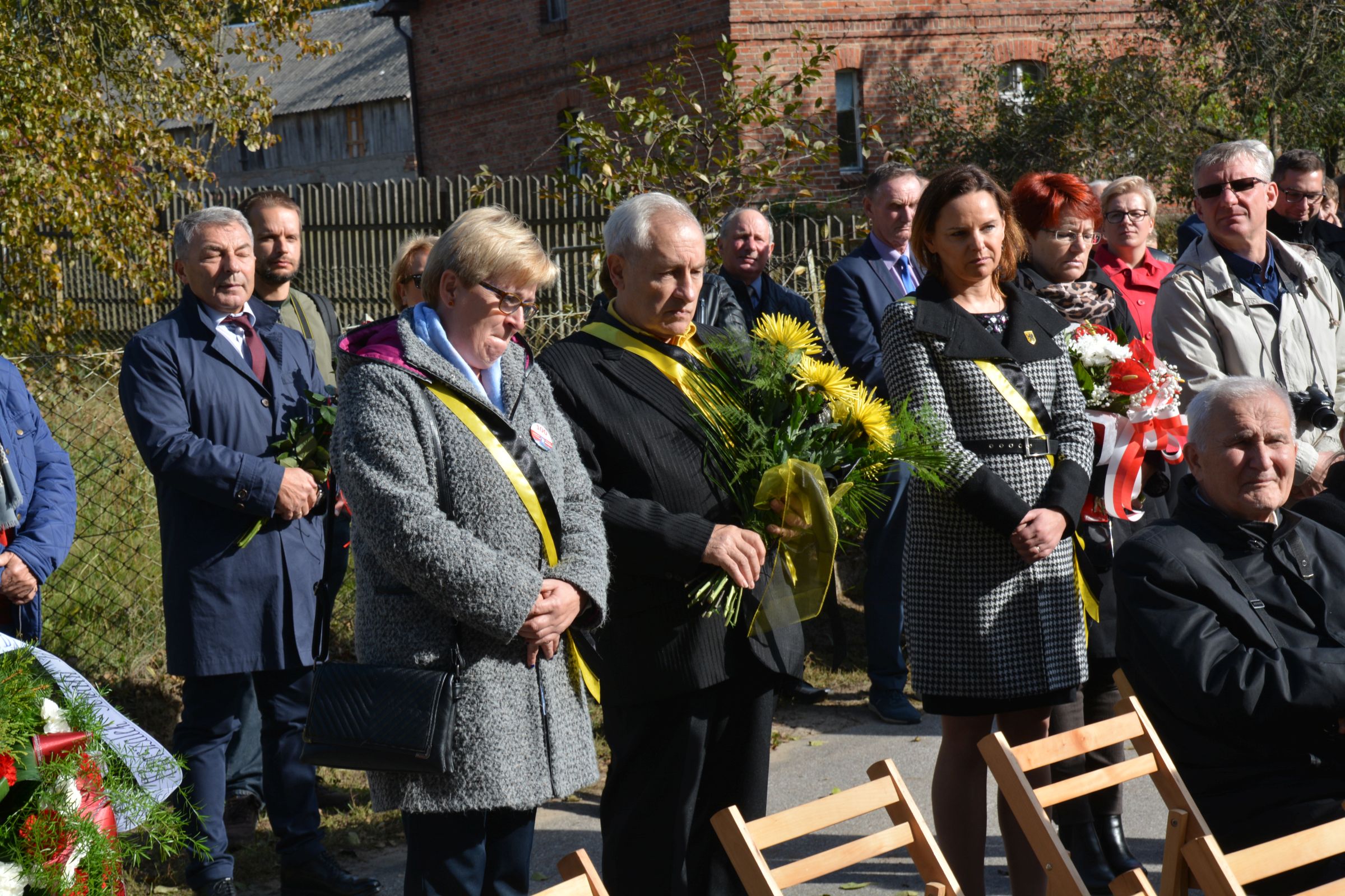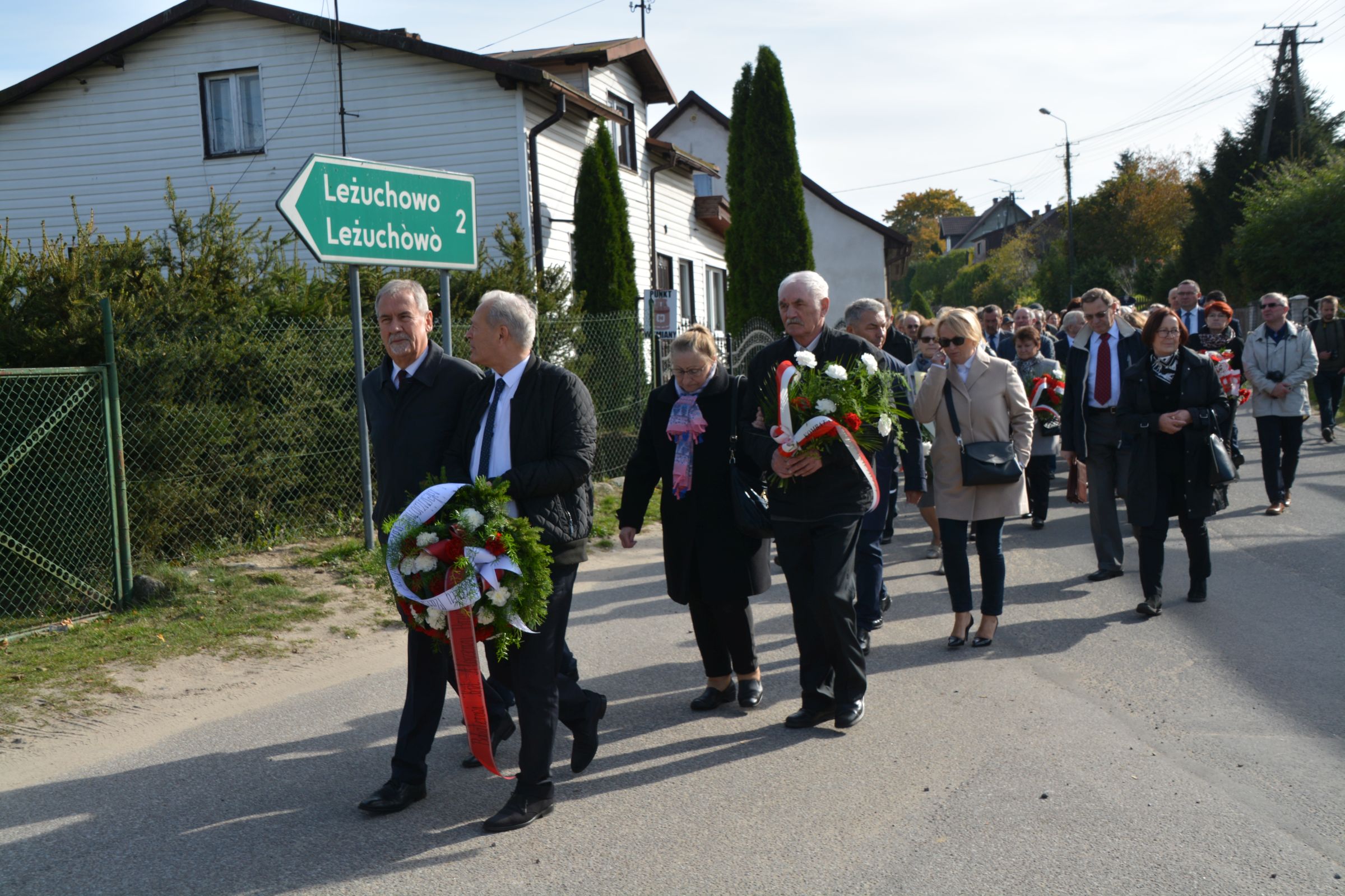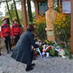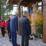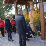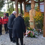 Pod pomnikiem stylistyką przypominającym kaszubską przydrożną kapliczkę złożone zostały przez nich wiązanki kwiatów i znicze.