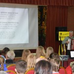 Niesamowite wrażenie wywarło wystąpienie pracowników nadleśnictwa p. Wojciecha Czajka i p. Szymona Wiśniewskiego, którzy wprowadzili obecnych w tajniki sygnałów łowieckich. Przybliżyli oni specyficzny kod porozumiewania się myśliwych podczas polowań za pomocą dźwięków prezentując wiele z tych pięknych melodii i wyjaśniając znaczenie każdej z nich dla kolejnych etapów organizacji polowania. Opowiedzieli również o tradycjach myśliwskich wciąż pielęgnowanych podczas spotkań na łowach, pełnych szacunku do przyrody i wielowiekowej kultury łowieckiej.