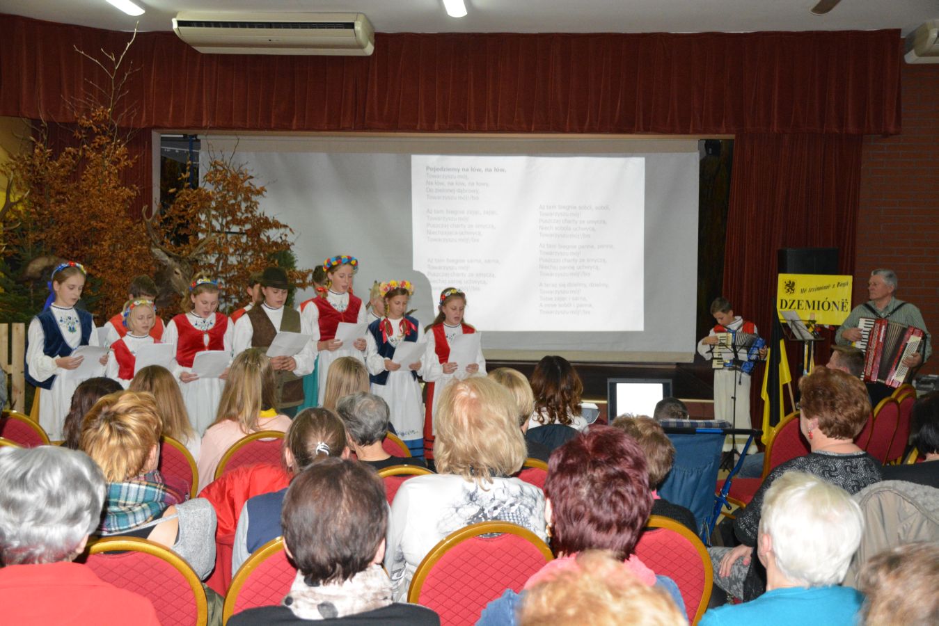 Podczas spotkania nie zabrakło -jak to u Kaszubów – muzyki. Obecni na spotkaniu razem śpiewali znane kaszubskie i polskie frantówki wpisujące się w klimat spotkania, takie jak „Hej tu u nas na Kaszëbach”, „Kaszëbsczé jezora, kaszëbsczi las”, „Pojedziemy na łów”, „Hej, hej do kniei” „Jedziemy na polowanie” czy „Szła dzieweczka do laseczka” poprowadzeni przez uczniów p. Zofii Wałdoch” z dziemiańskiej szkoły podstawowej przy akompaniamencie akordeonów p. Jana Żywickiego i Huberta Krych.