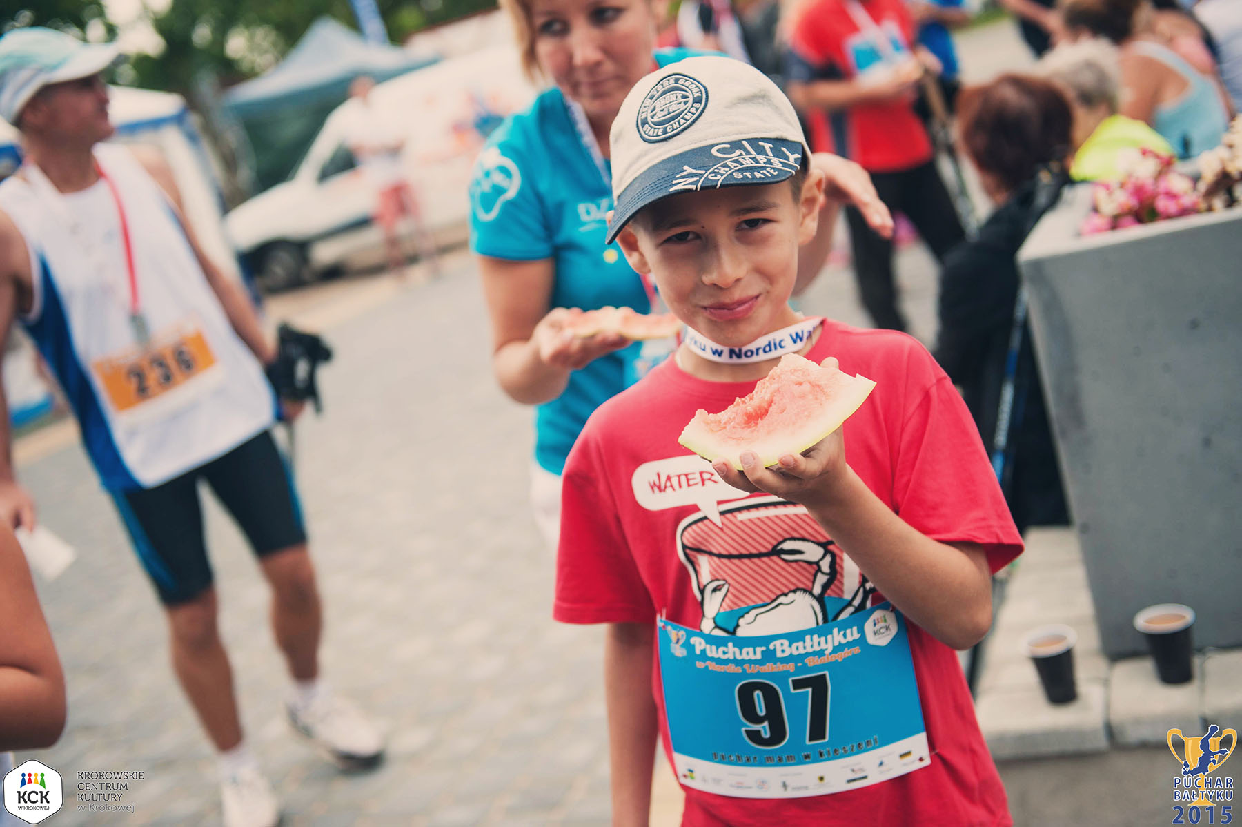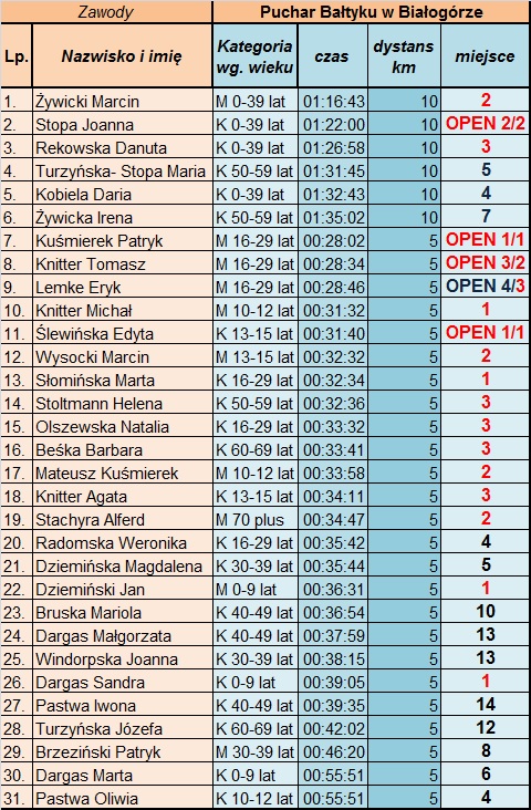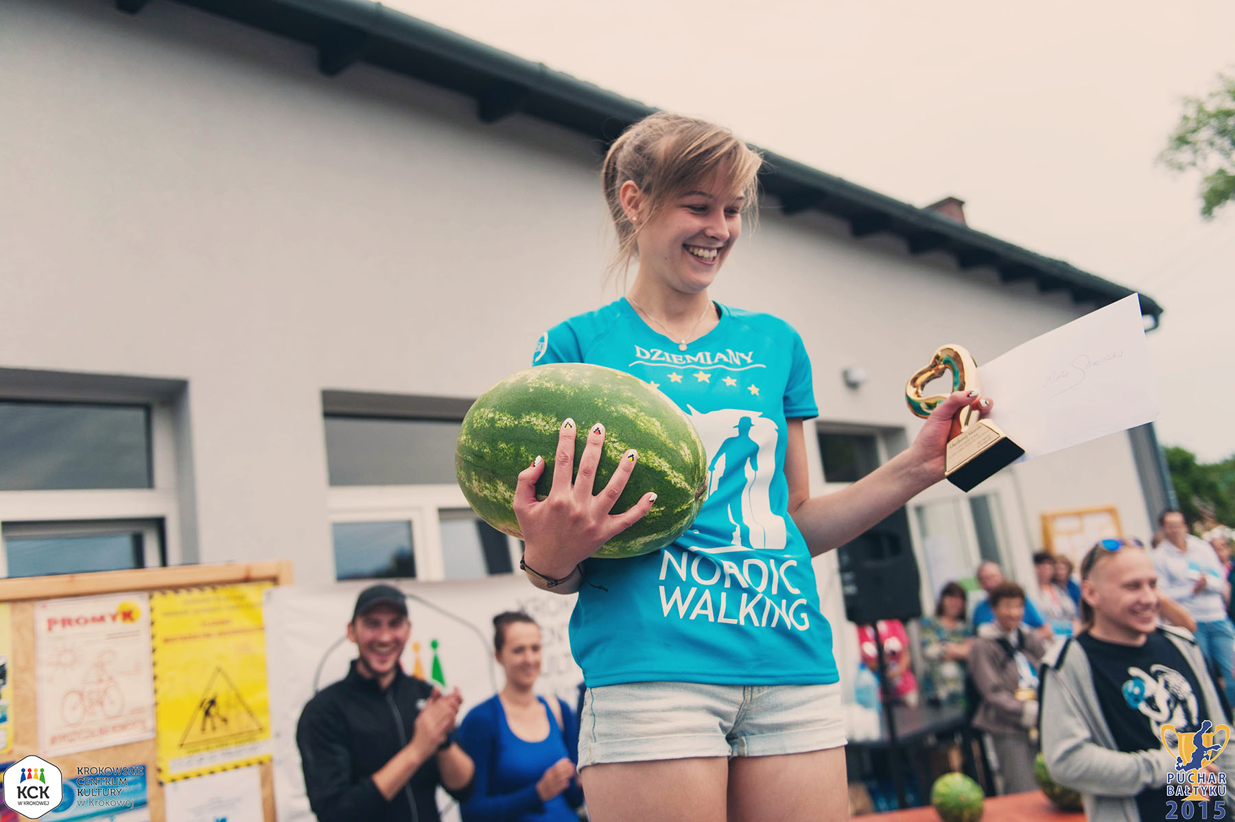 Biuro zawodów znajdowało się przy Domie Ludowym, gdzie również odbyła się dekoracja. Dzięki organizatorom i partnerowi PGE zawodnicy otrzymali bogate pakiety startowe. Soczyste arbuzy były podstawą posiłku regeneracyjnego. Na trasie krótszej oraz dłuższej zawodnicy z Dziemian zwyciężyli również w kategoriach OPEN. Tak też najszybszy był Patryk Kuśmierek, zaraz za nim Tomasz Knitter i Eryk Lemke, wśród kobiet była to Edyta Ślewińska. Na dystansie profesjonalnym Instruktorka grupy Joanna Stopa stanęła na drugim miejscu wraz z zaprzyjaźnioną zawodniczką z Gdyni – Martą Szpilman. Jest to dowód na to, iż w kręgach współzawodnictwa Nordic Walking uczestnicy nie tylko rywalizują o najwyższe podia, ale również wspierają się wzajemnie i trzymając się za ręce pokonują swoje słabości.